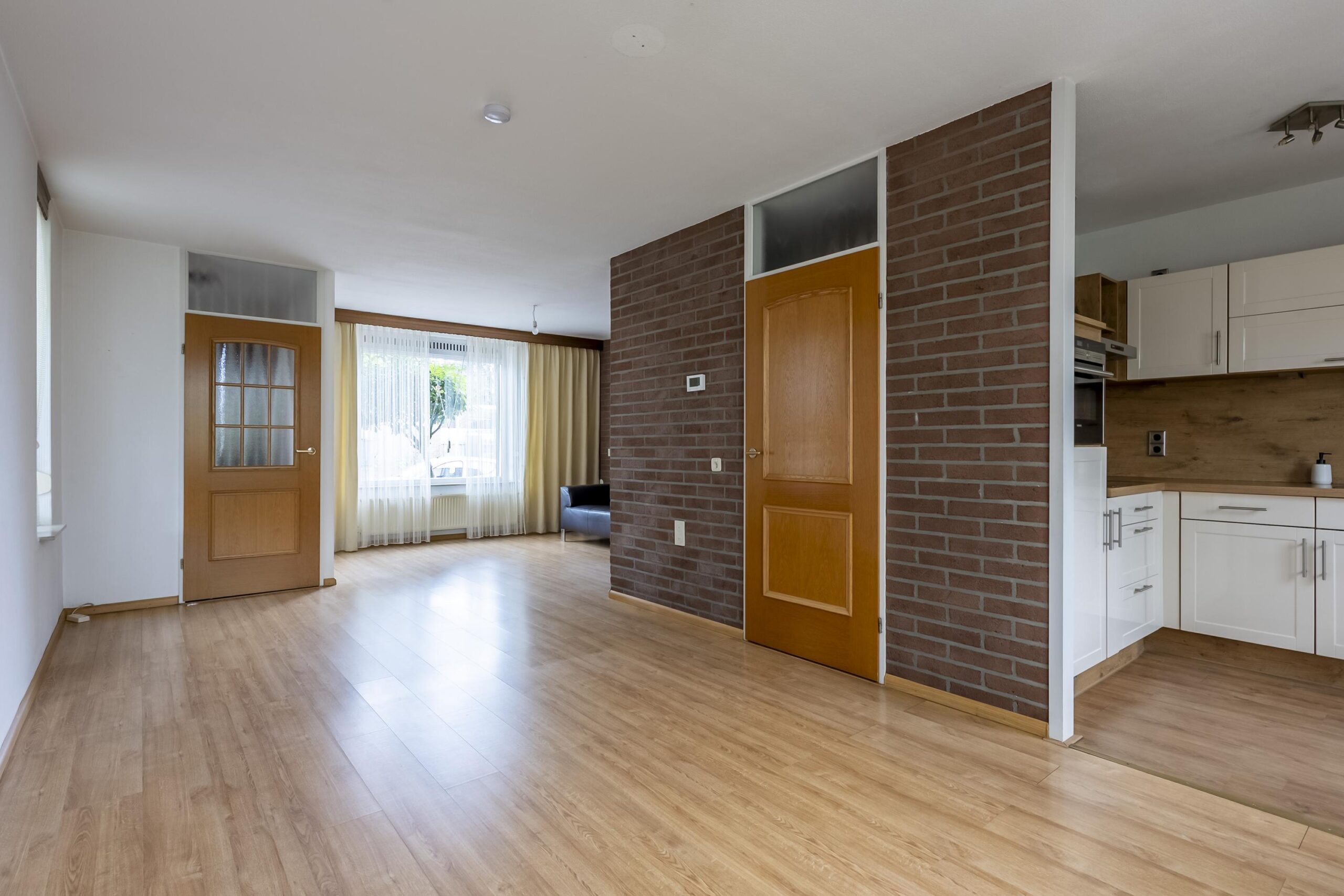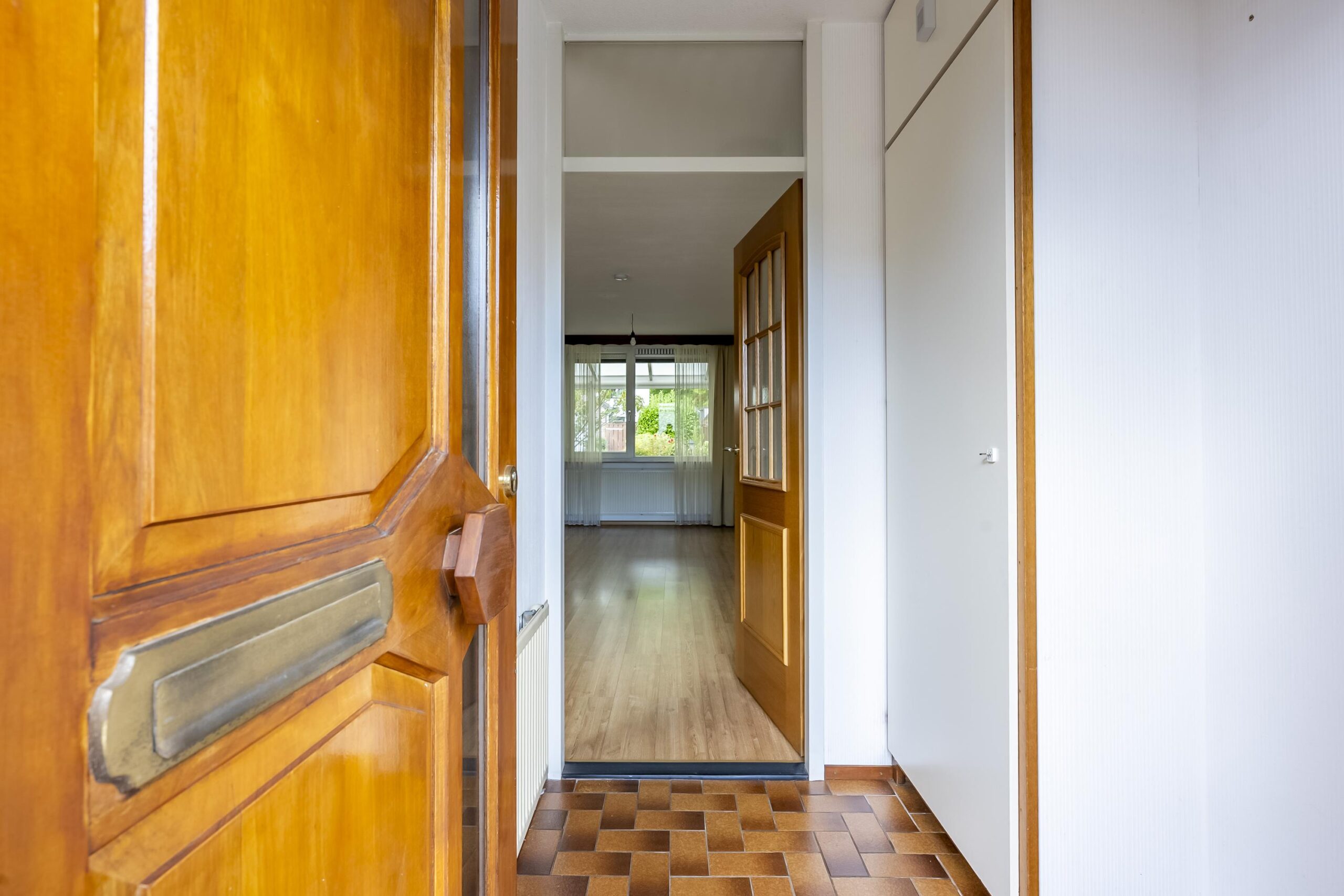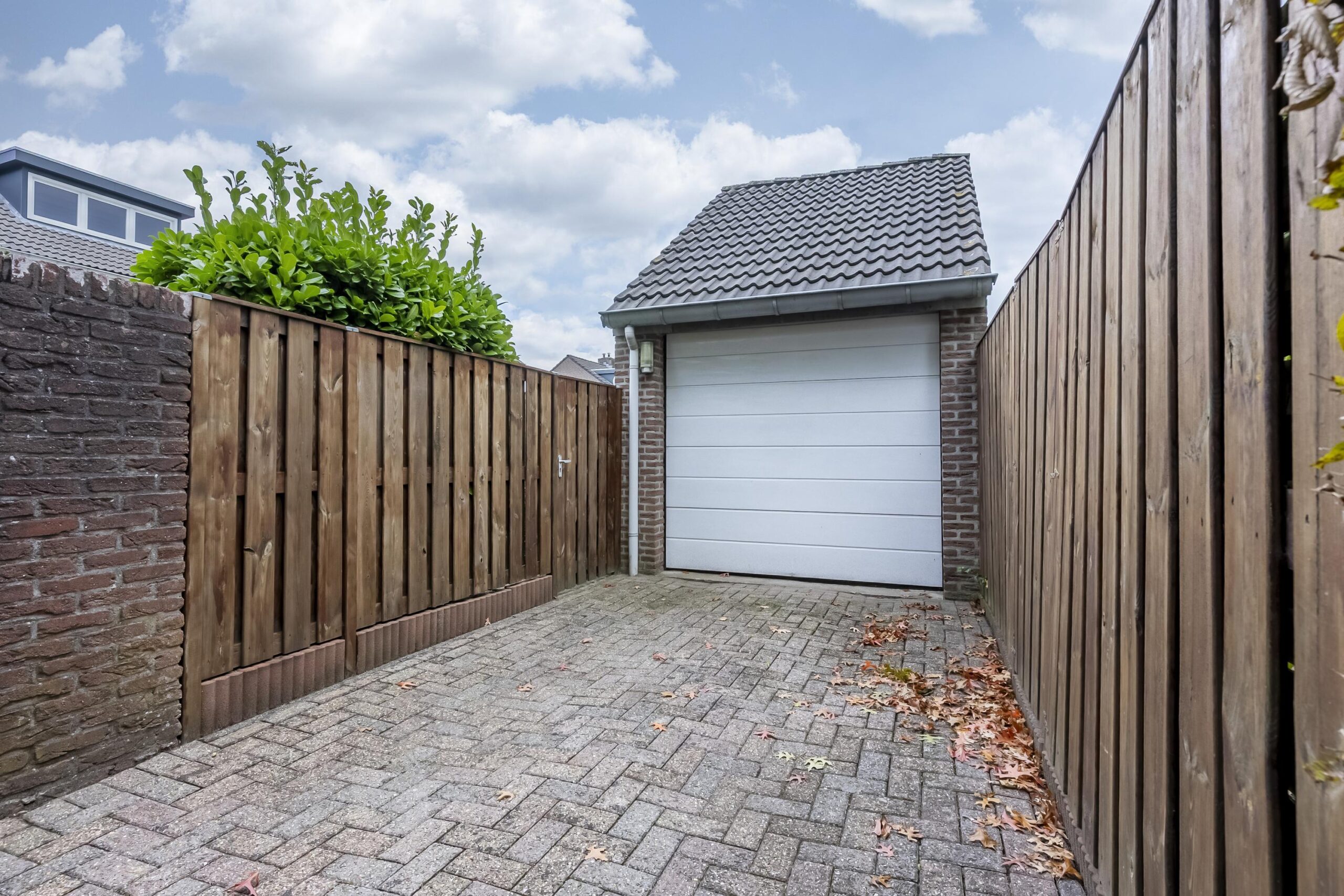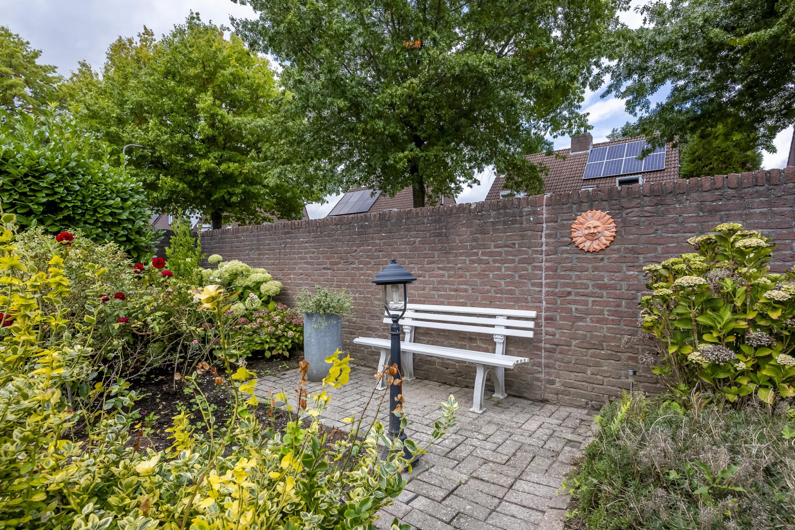 Begane grond: voortuin, entree met plavuizenvloer en een moderne meterkast. De woonkamer is voorzien van een laminaatvloer en verdeeld in een zit- en eetgedeelte, gescheiden door een gesloten halletje met trappenhuis en gastentoilet. De keuken is één open geheel met de woonkamer en heeft een installatie met hoekopstelling en voorzien van een koelkast, combi-oven, afzuigkap en inductie-kookplaat. Vanuit hier is de geheel omsloten tuin bereikbaar, op het zonnige Zuid-Westen gelegen. De tuin is ingericht met terras plus aluminium terrasoverkapping, gazon en borders en bereikbaar via een zij-ingang. Ook is de vrijstaande garage vanuit de tuin bereikbaar alsook de oprit. De garage heeft een electrisch bedienbare sectionaal poort.