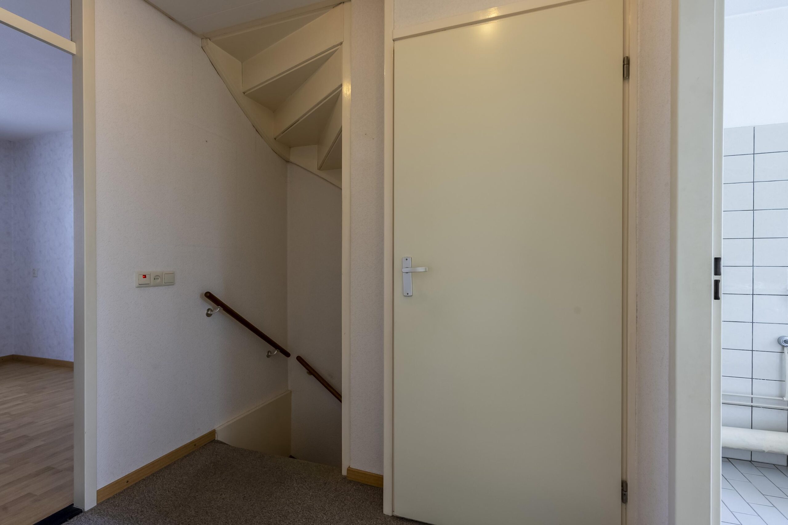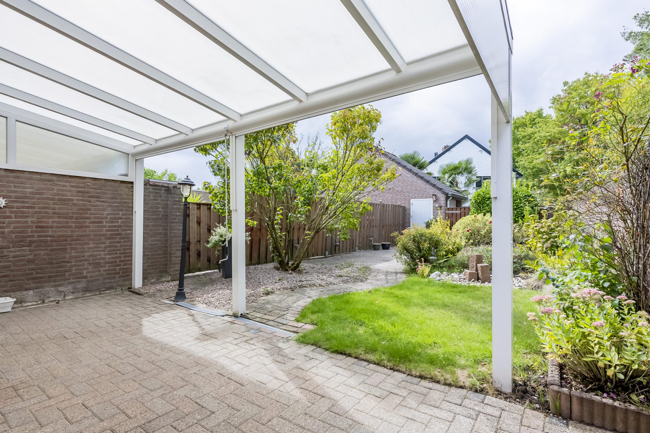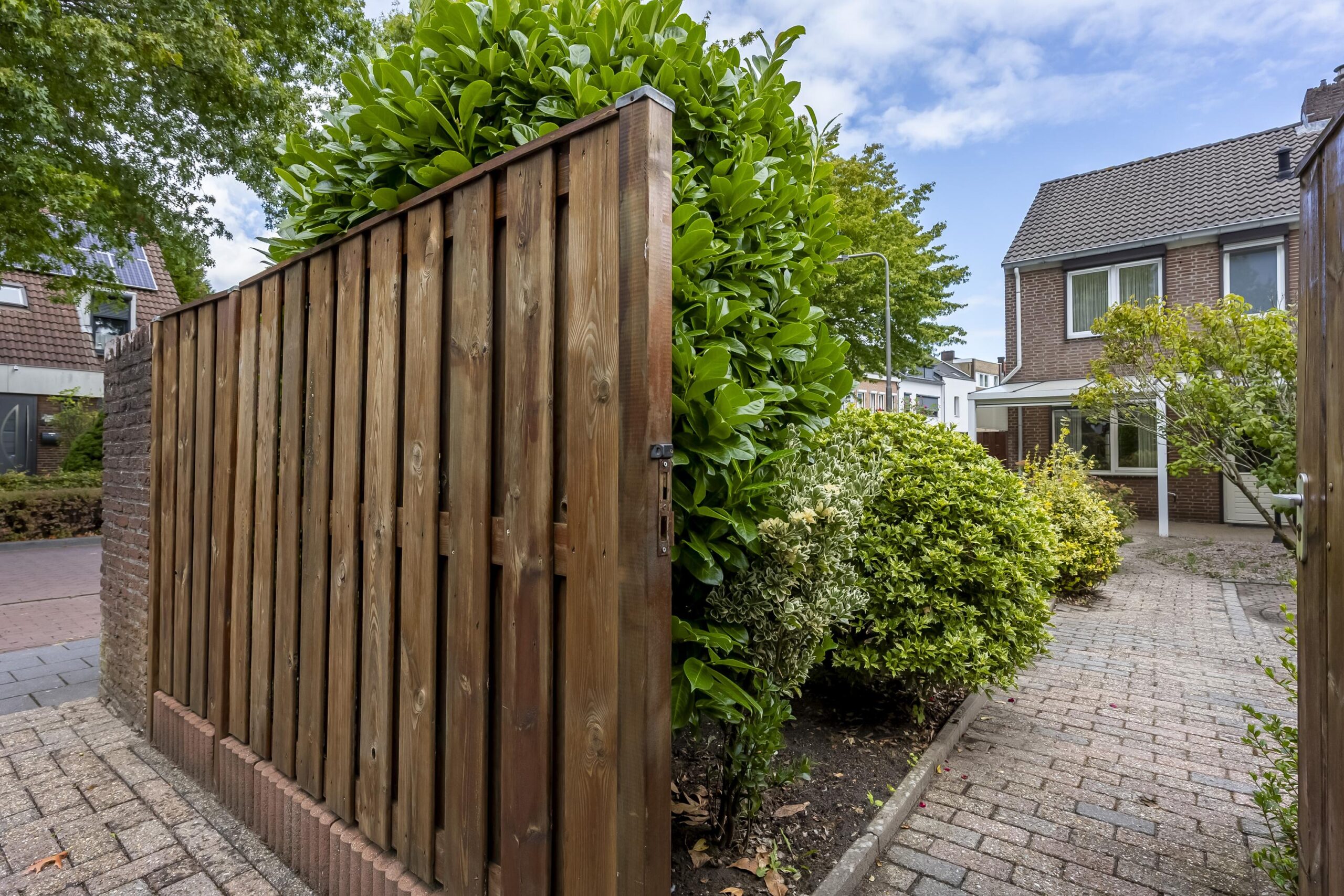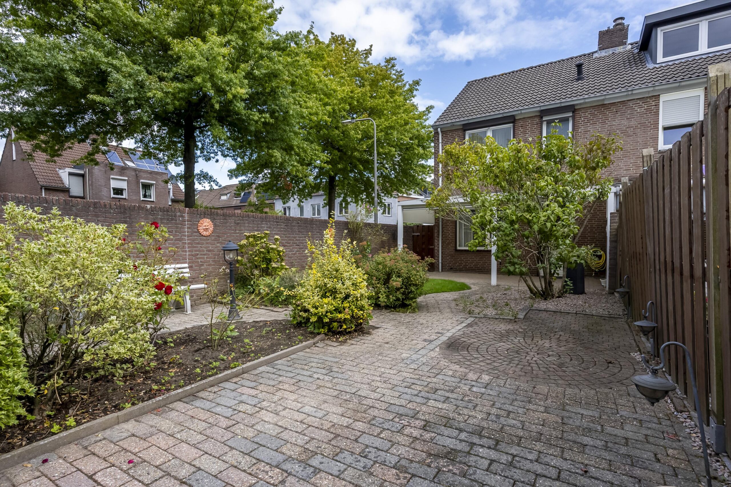Begane grond: voortuin, entree met plavuizenvloer en een moderne meterkast. De woonkamer is voorzien van een laminaatvloer en verdeeld in een zit- en eetgedeelte, gescheiden door een gesloten halletje met trappenhuis en gastentoilet. De keuken is één open geheel met de woonkamer en heeft een installatie met hoekopstelling en voorzien van een koelkast, combi-oven, afzuigkap en inductie-kookplaat. Vanuit hier is de geheel omsloten tuin bereikbaar, op het zonnige Zuid-Westen gelegen. De tuin is ingericht met terras plus aluminium terrasoverkapping, gazon en borders en bereikbaar via een zij-ingang. Ook is de vrijstaande garage vanuit de tuin bereikbaar alsook de oprit. De garage heeft een electrisch bedienbare sectionaal poort.