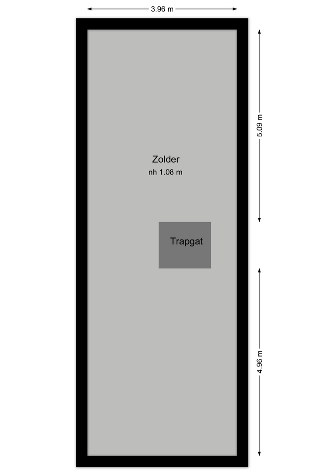 De zolder strekt zich uit over de volledige lengte van de woning en heeft een nokhoogte van circa 1,08 meter. Hierdoor is deze verdieping uitermate geschikt als bergzolder.