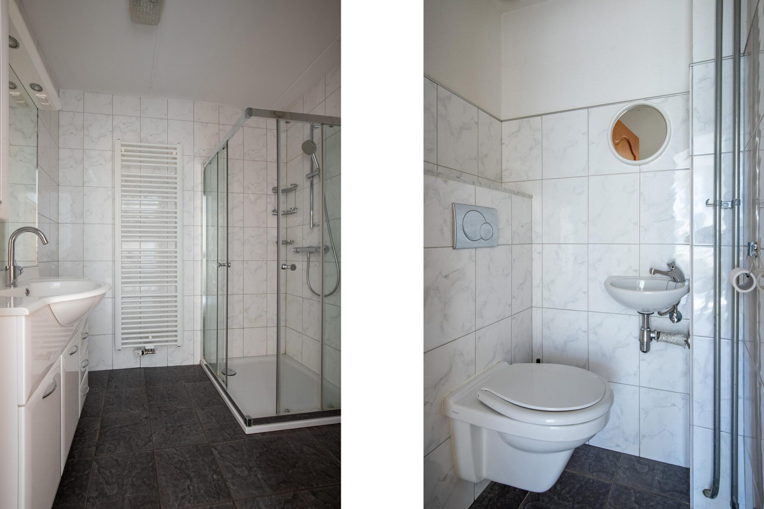 - Badkamervoorzieningen Douche, wastafel, wastafelmeubel