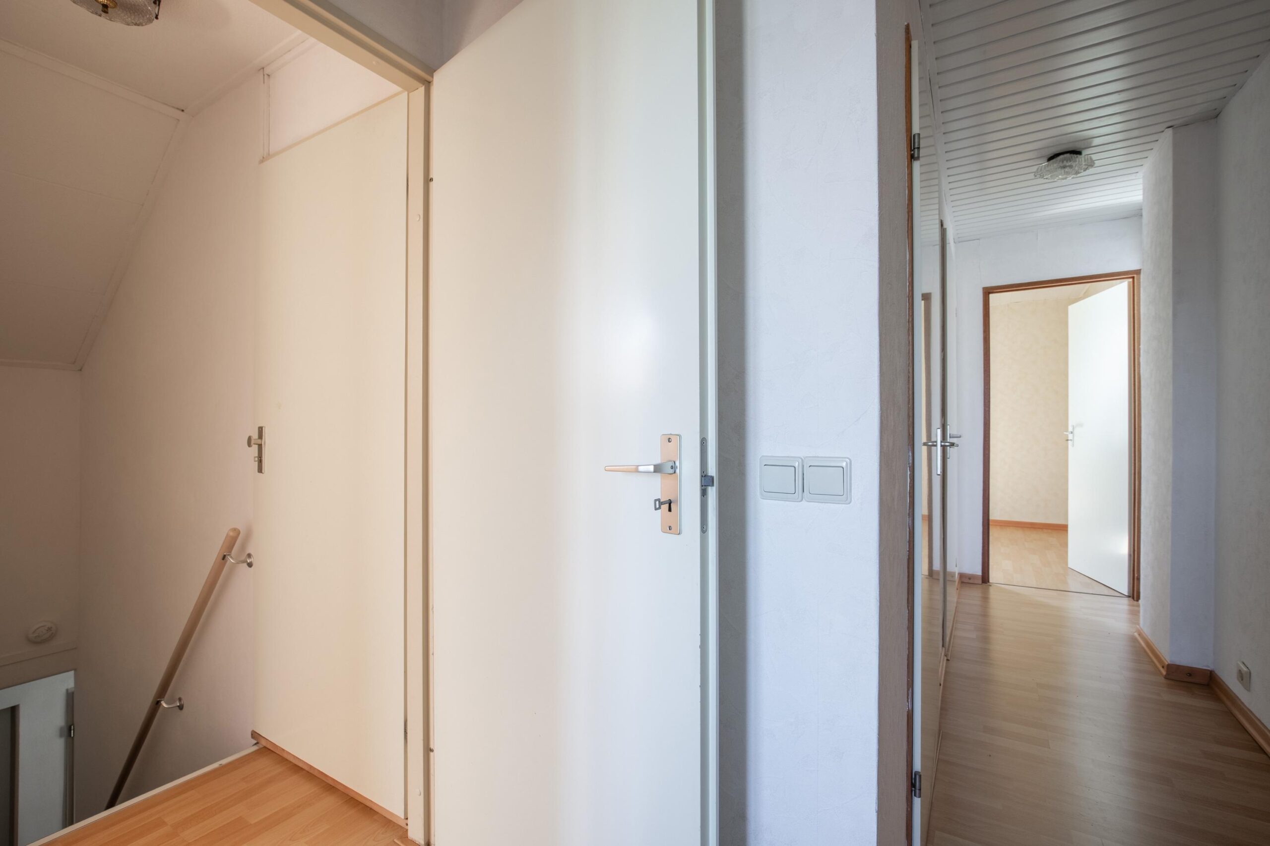 De overloop (ca. 9 m²) biedt toegang tot maar liefst vier slaapkamers, een separaat toilet en een bergkast met toegang tot de zolder.
