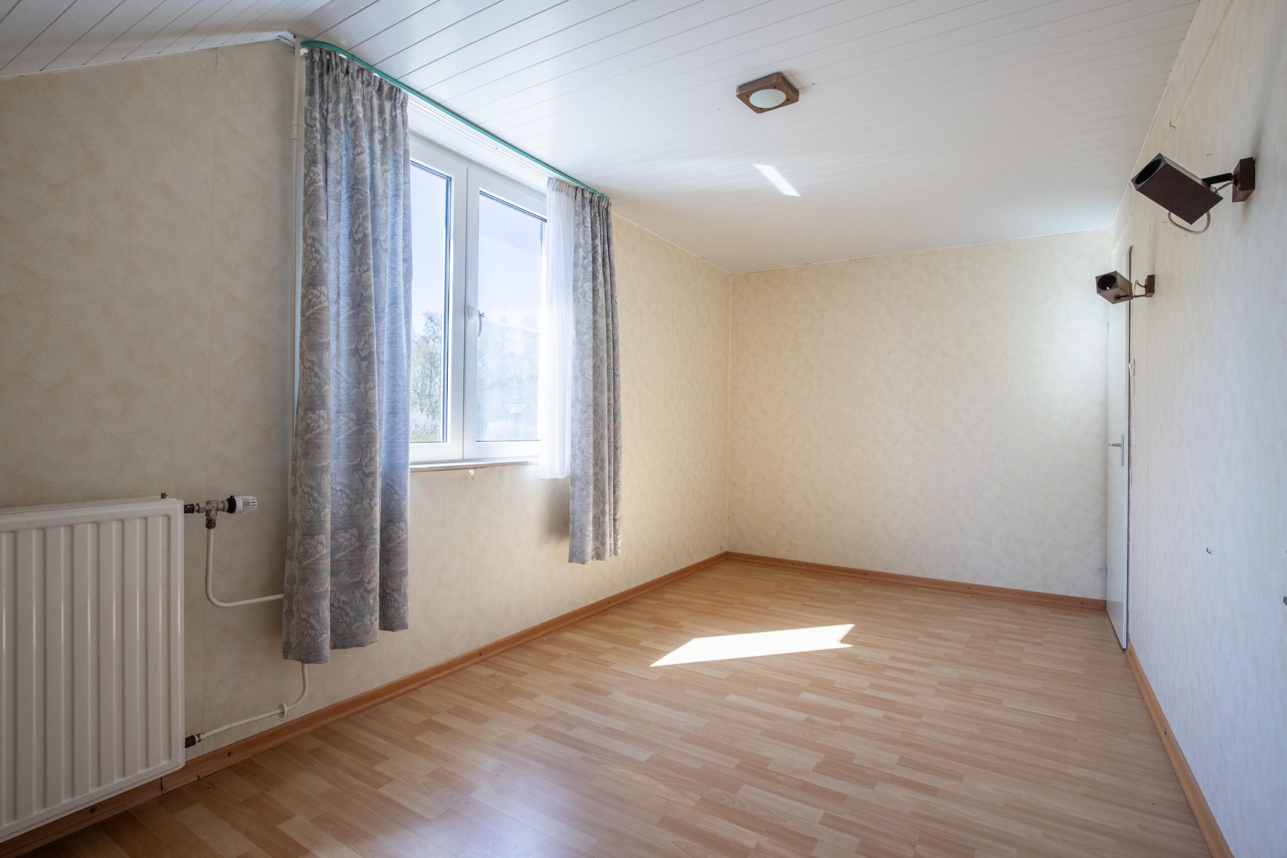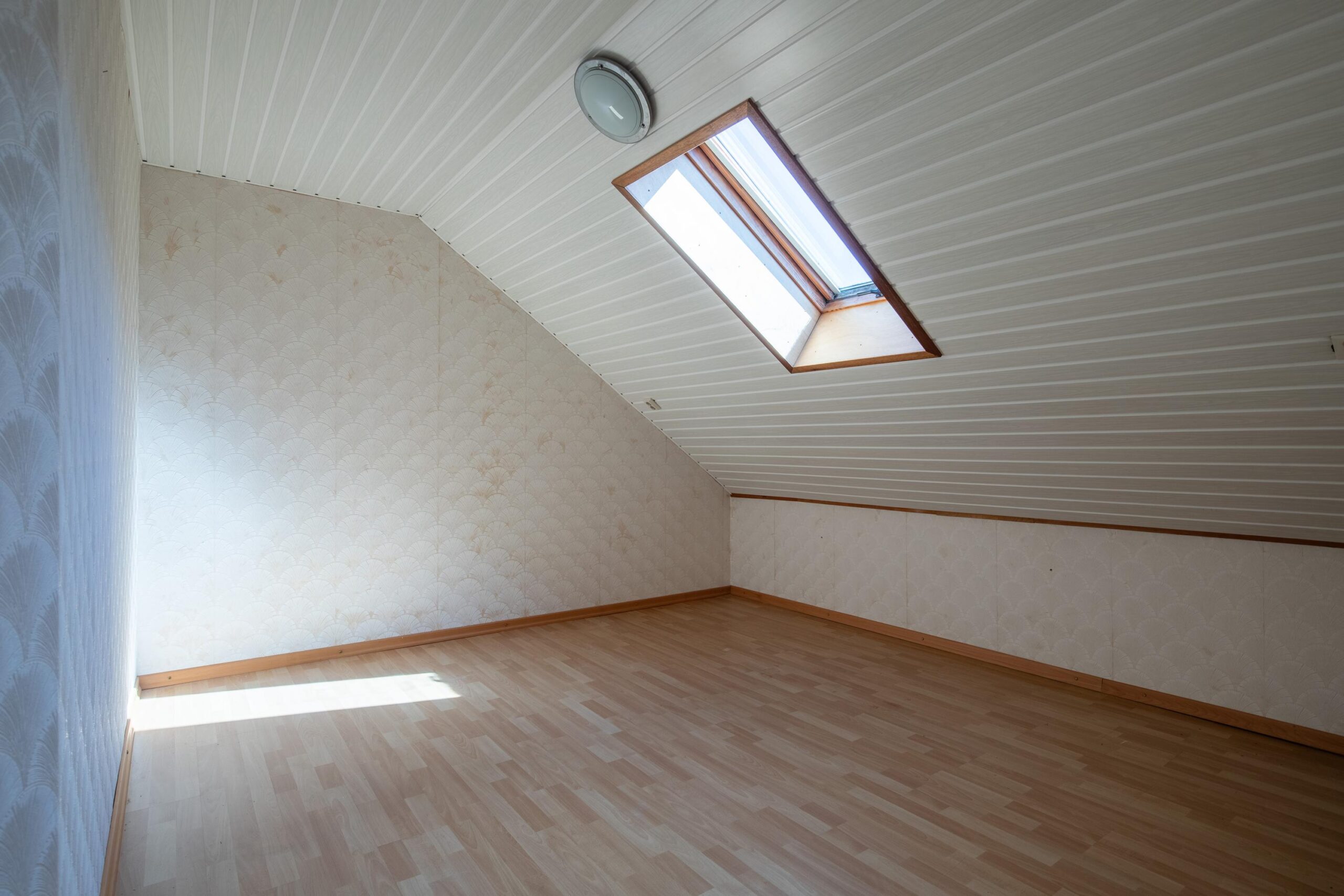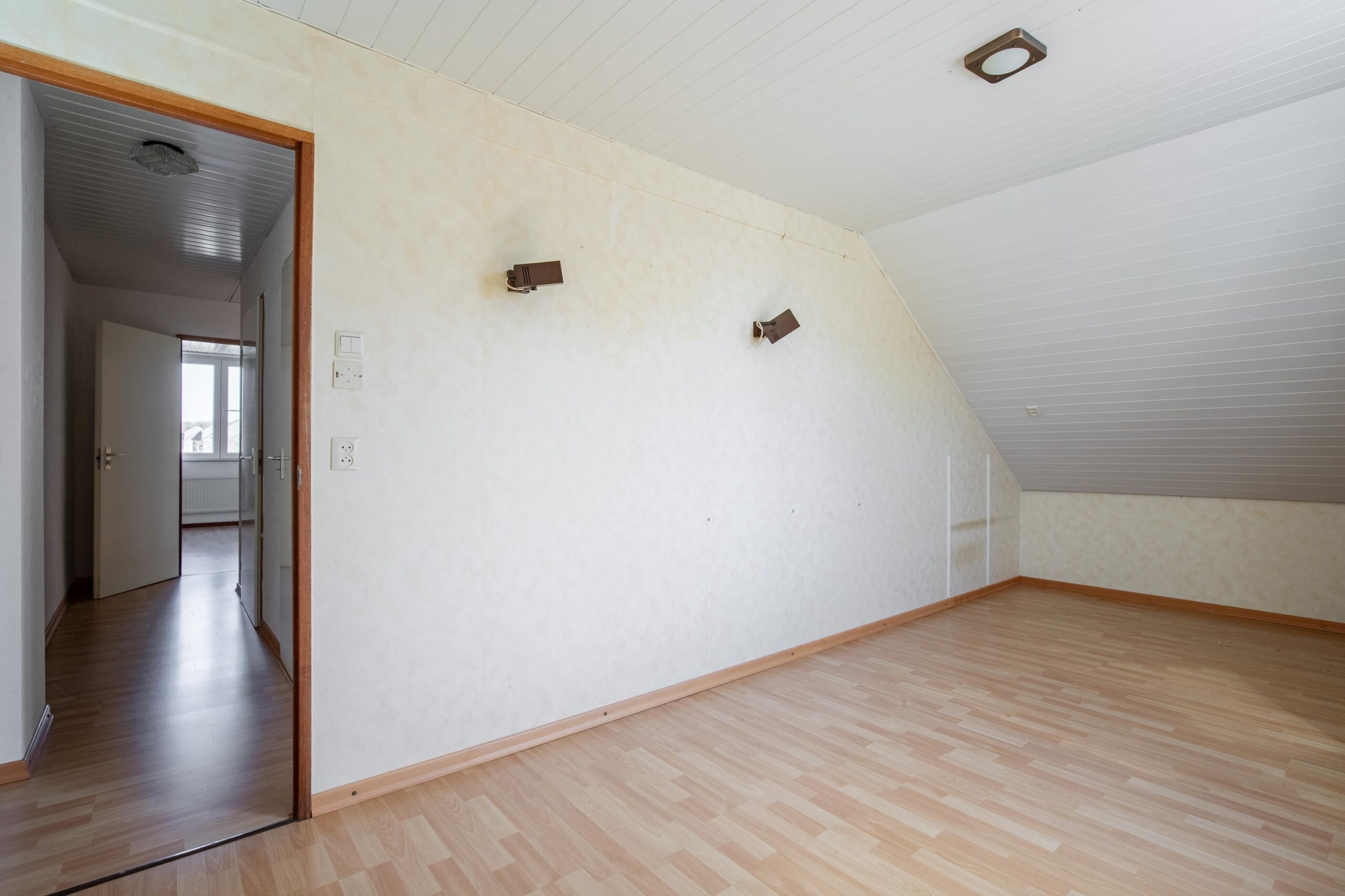 De vierde slaapkamer (ca. 13 m²) heeft een L-vorm en is eveneens voorzien van een dakraam met dubbele beglazing.