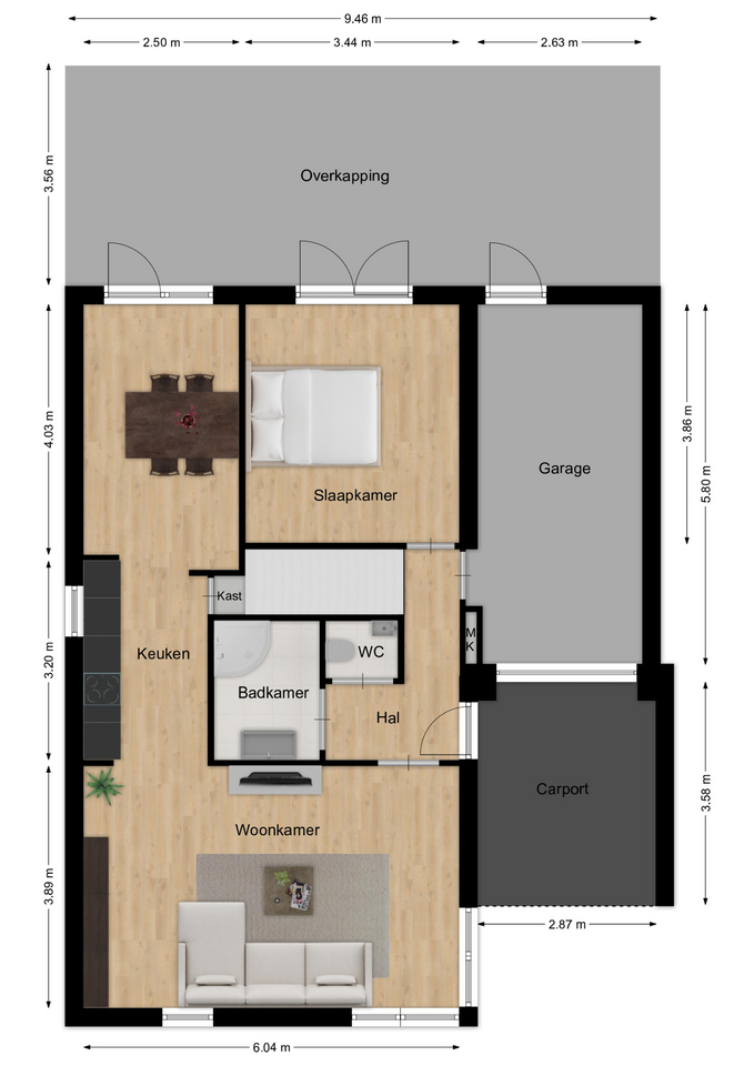 - Garage Inpandig, carport