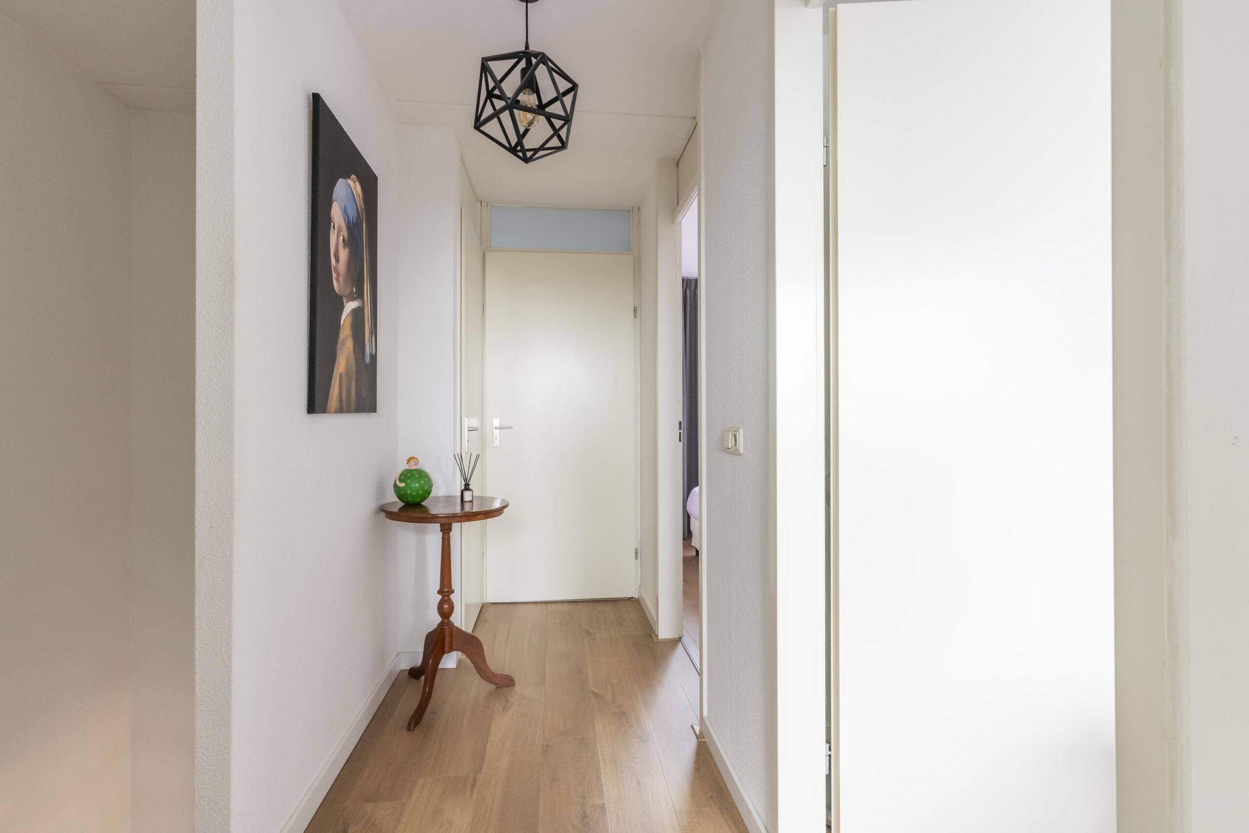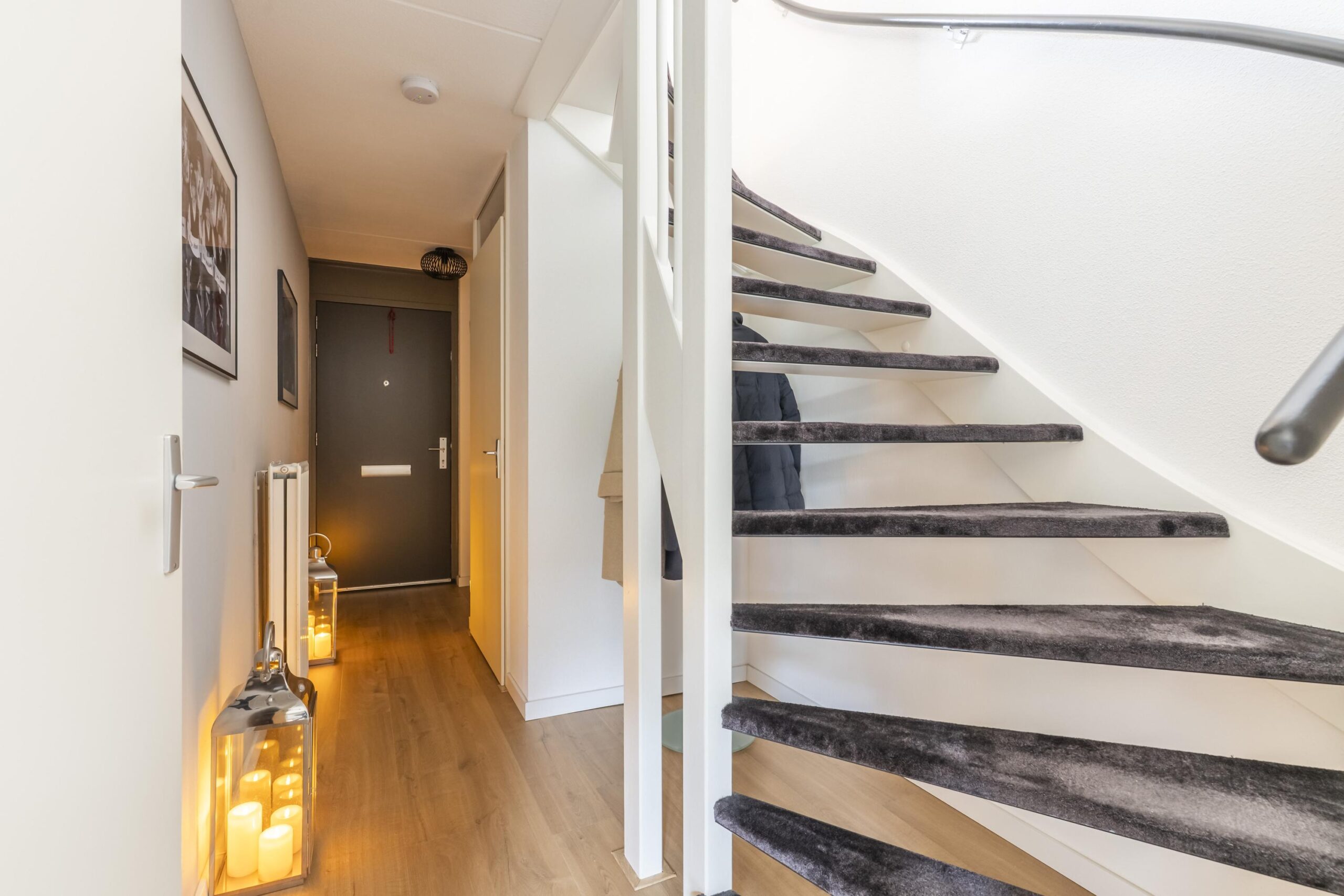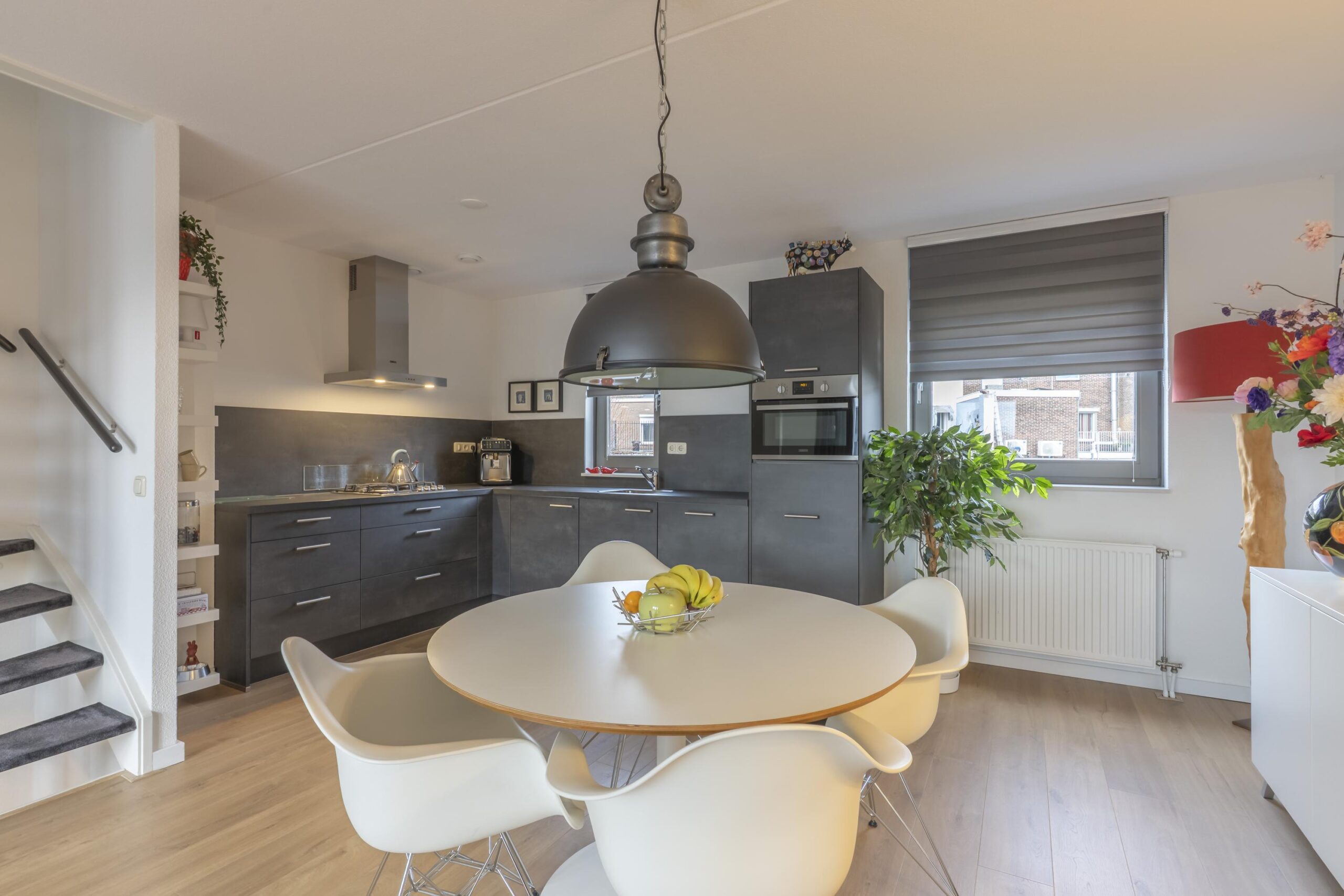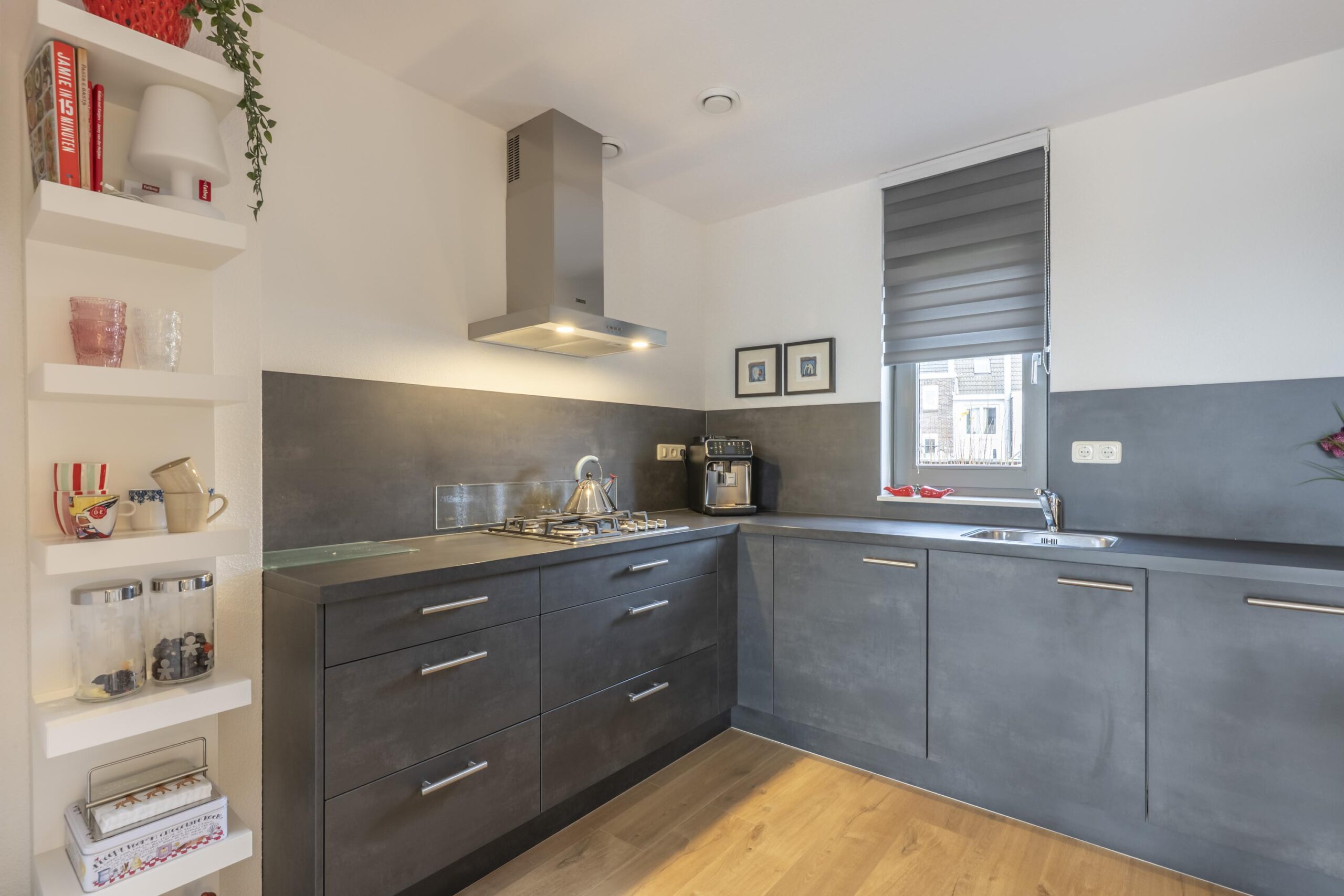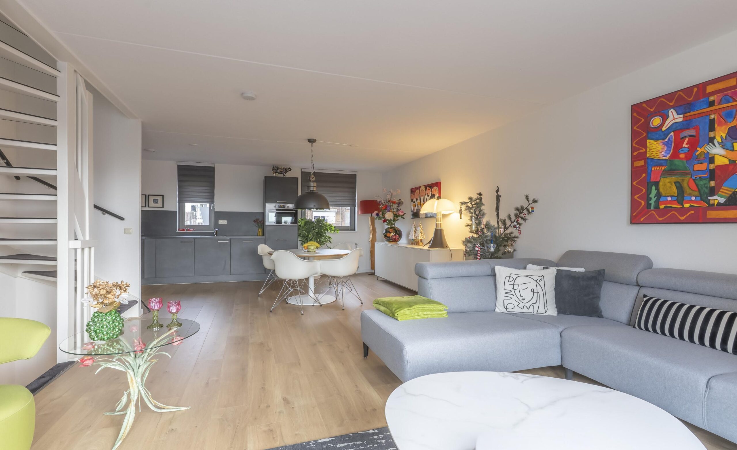 De sfeervolle woonkamer met open leefkeuken vormt een heerlijke, lichte leefruimte dankzij het directe contact met het dakterras. De moderne keuken is uitgevoerd in een “betonlook” hoekopstelling en uitgerust met navolgende inbouwapparatuur: koelkast, combimagnetron, vaatwasser, 4-pits gaskookplaat en afzuigkap. De gehele verdieping is afgewerkt met een moderne laminaatvloer en fijn spuitwerk.