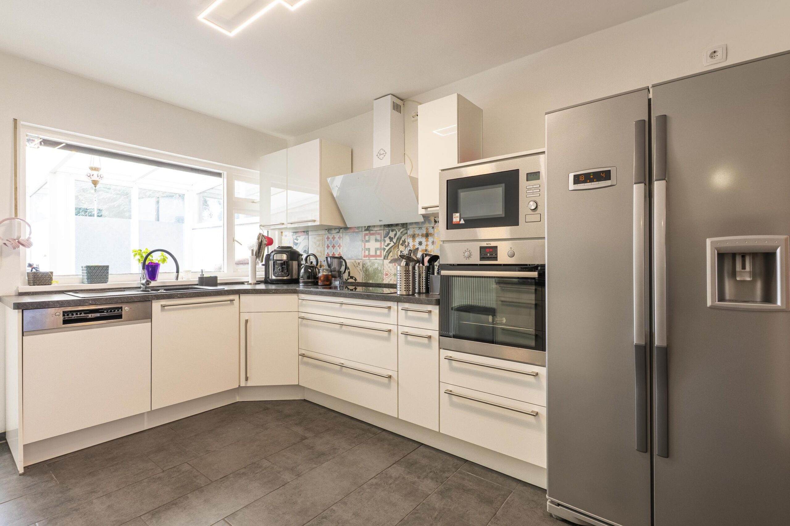 Keramische kookplaat, afzuigkap, oven, magnetron en een vaatwasser.
