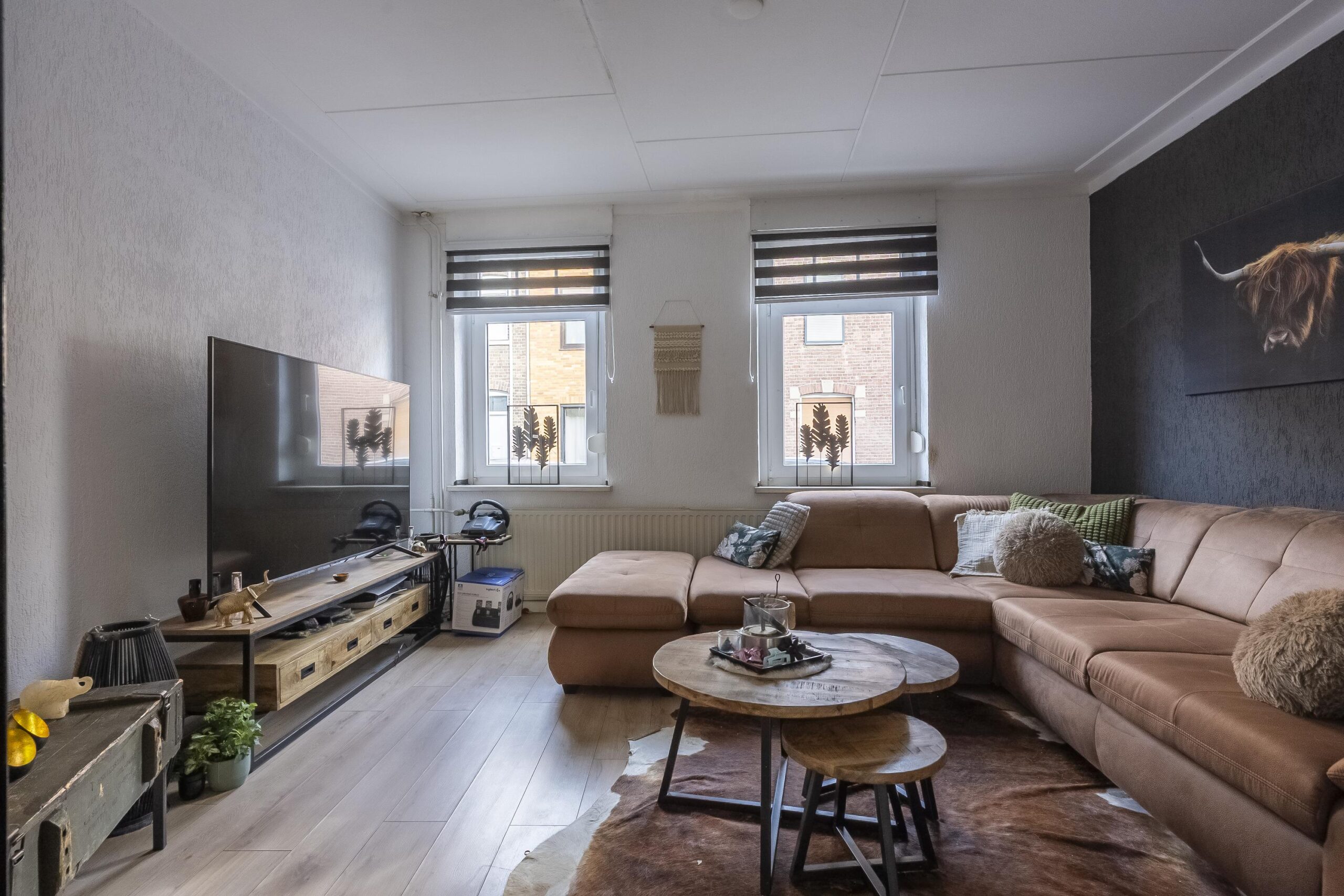 De woonkamer is voorzien van een laminaatvloer en de keuken is voorzien van een plavuizenvloer.