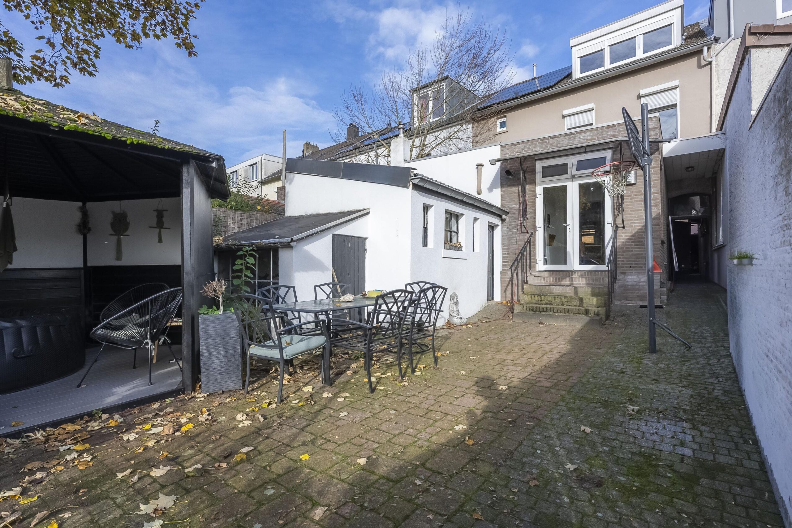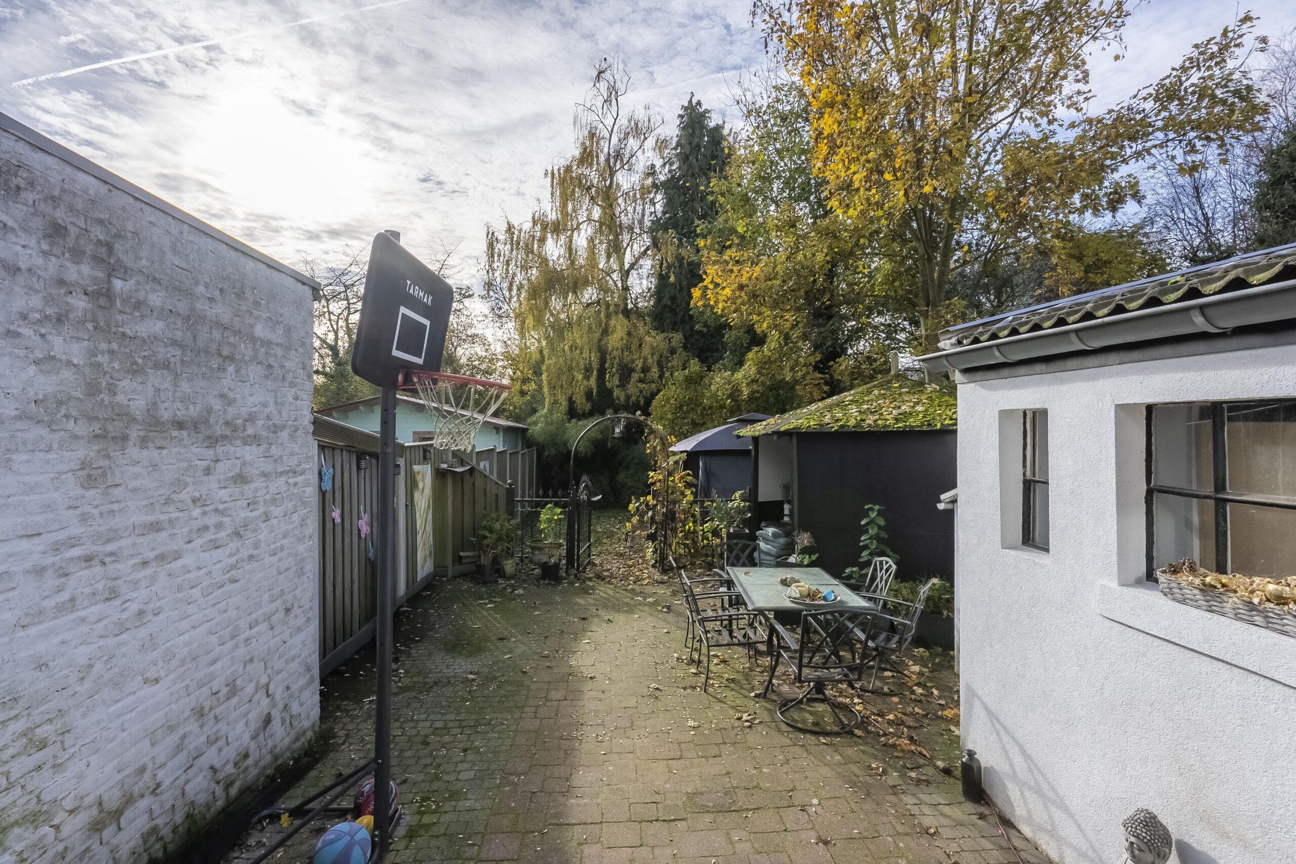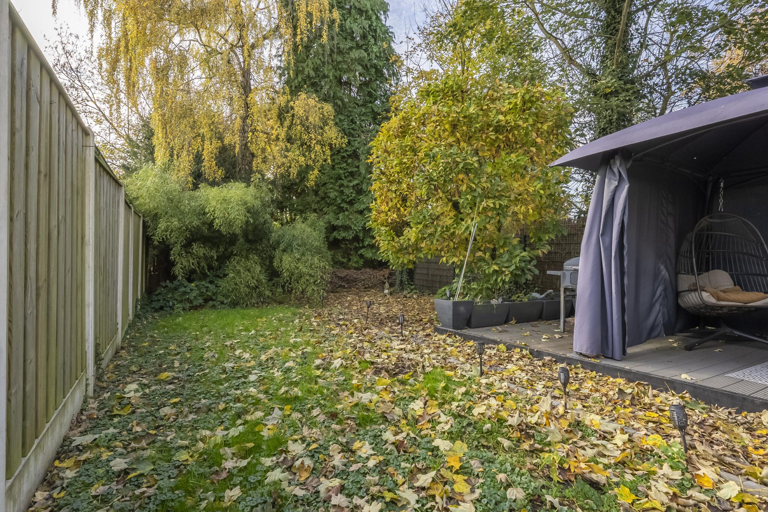 De achtertuin is op het zuiden gelegen en biedt veel privacy.