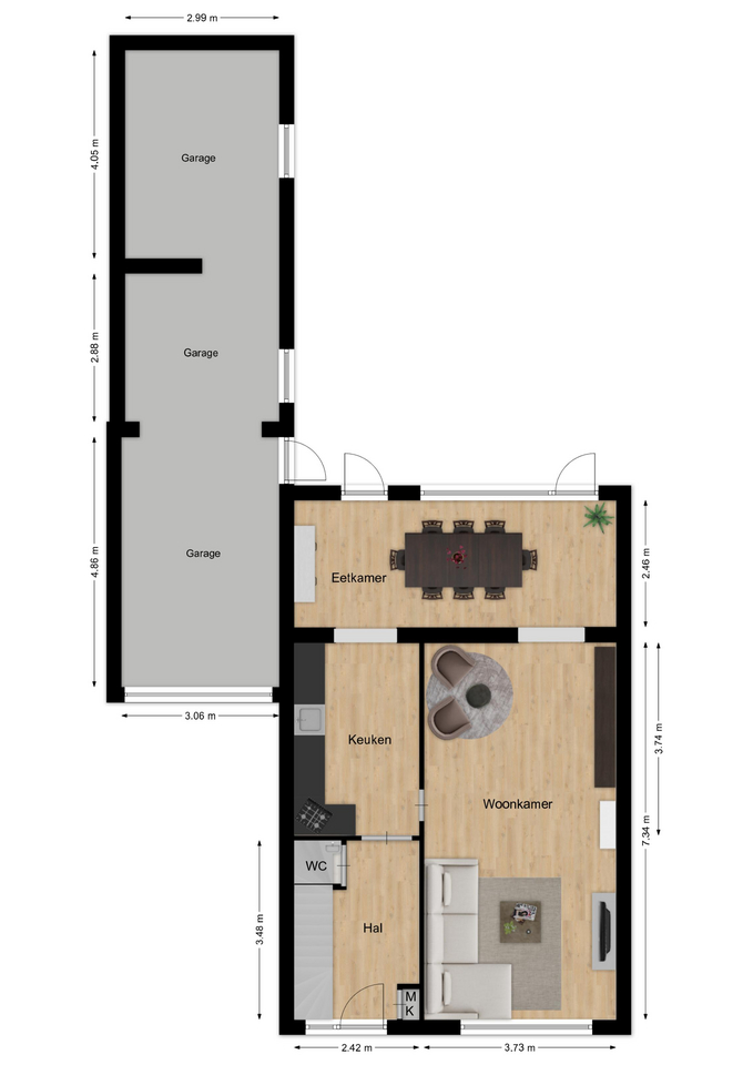 – Alle afmetingen zijn indicatief en kunnen afwijken van de werkelijkheid;