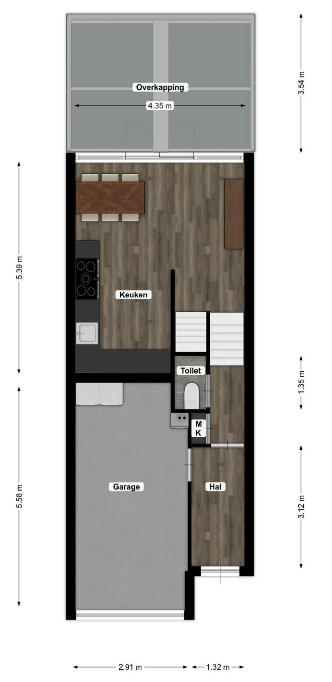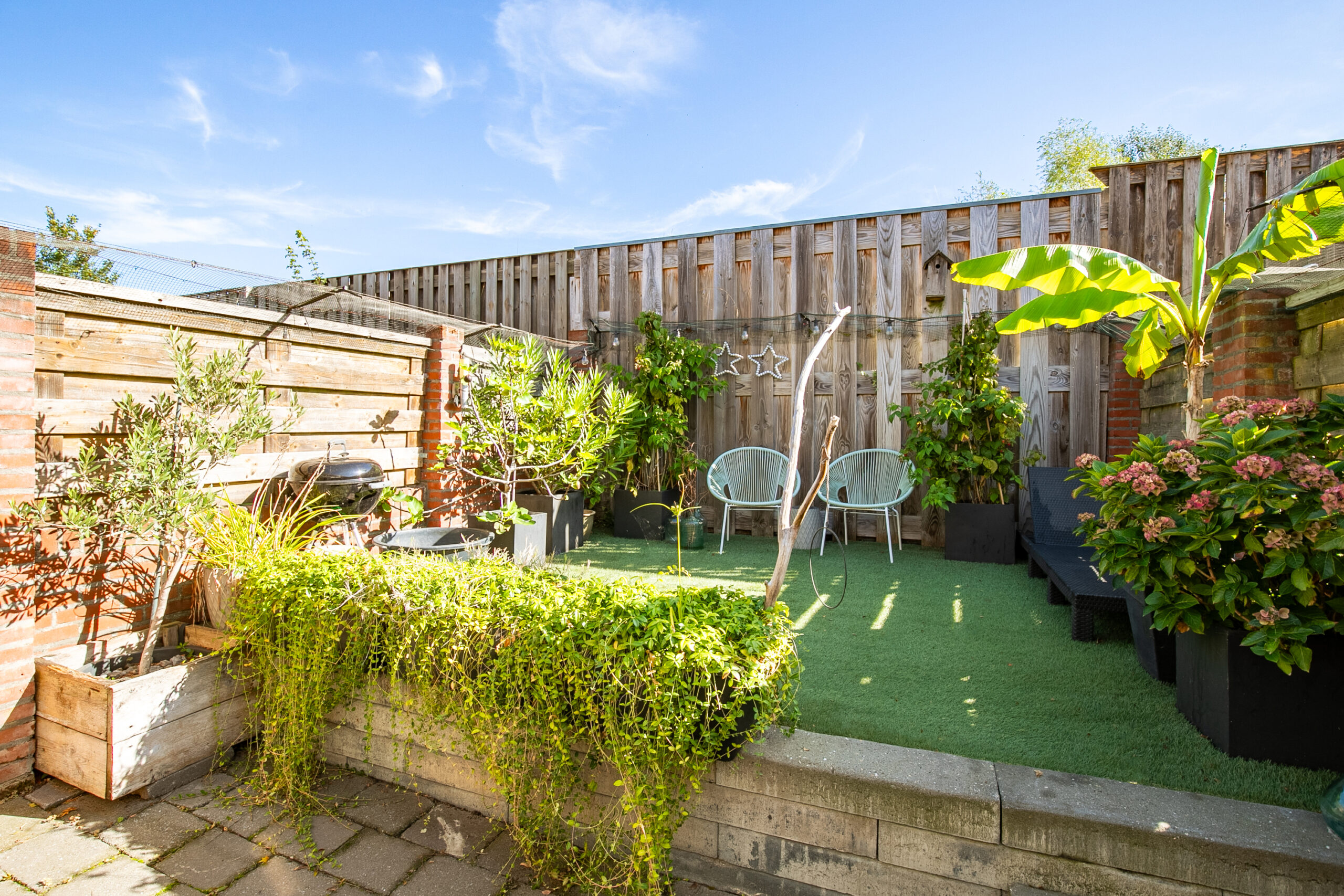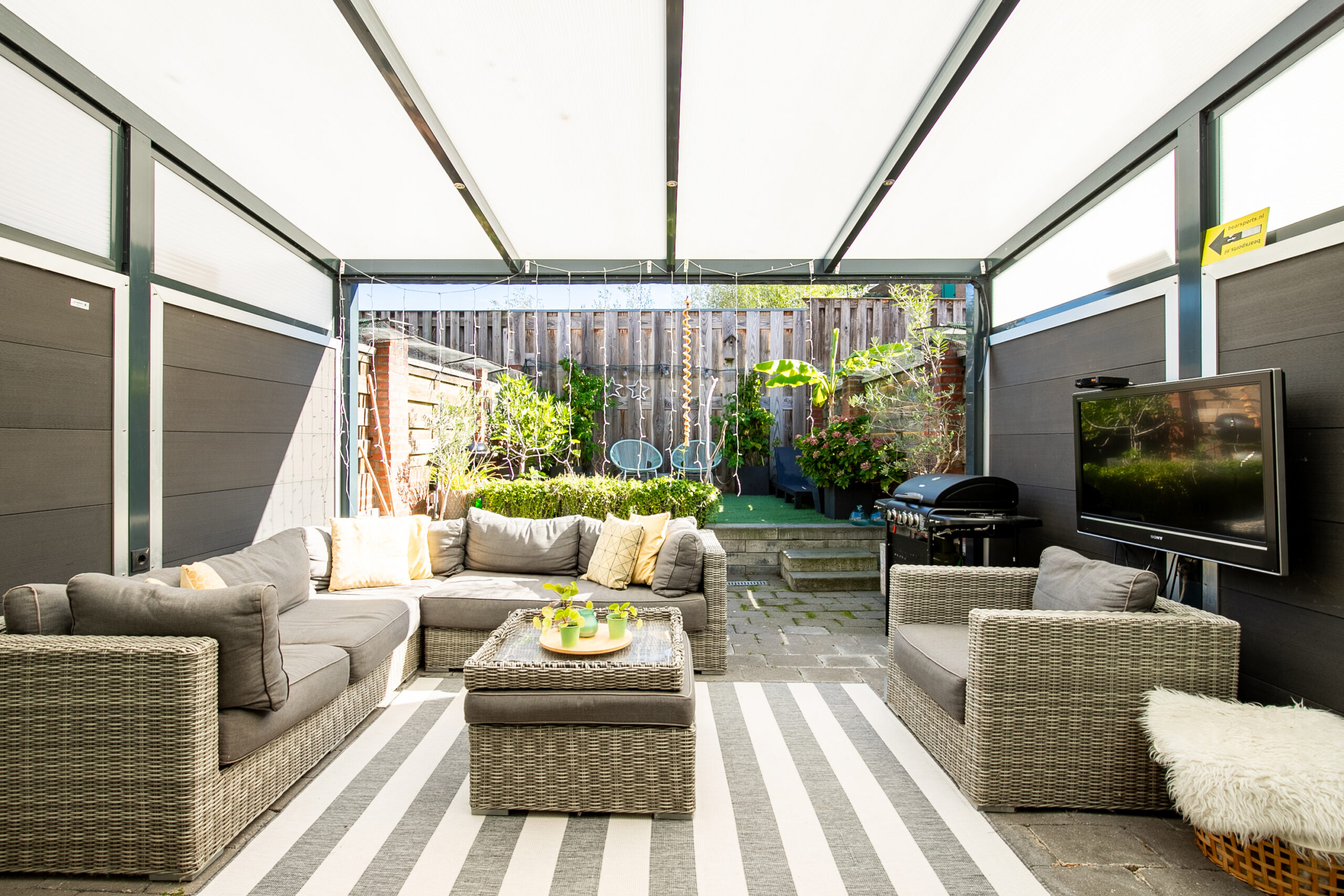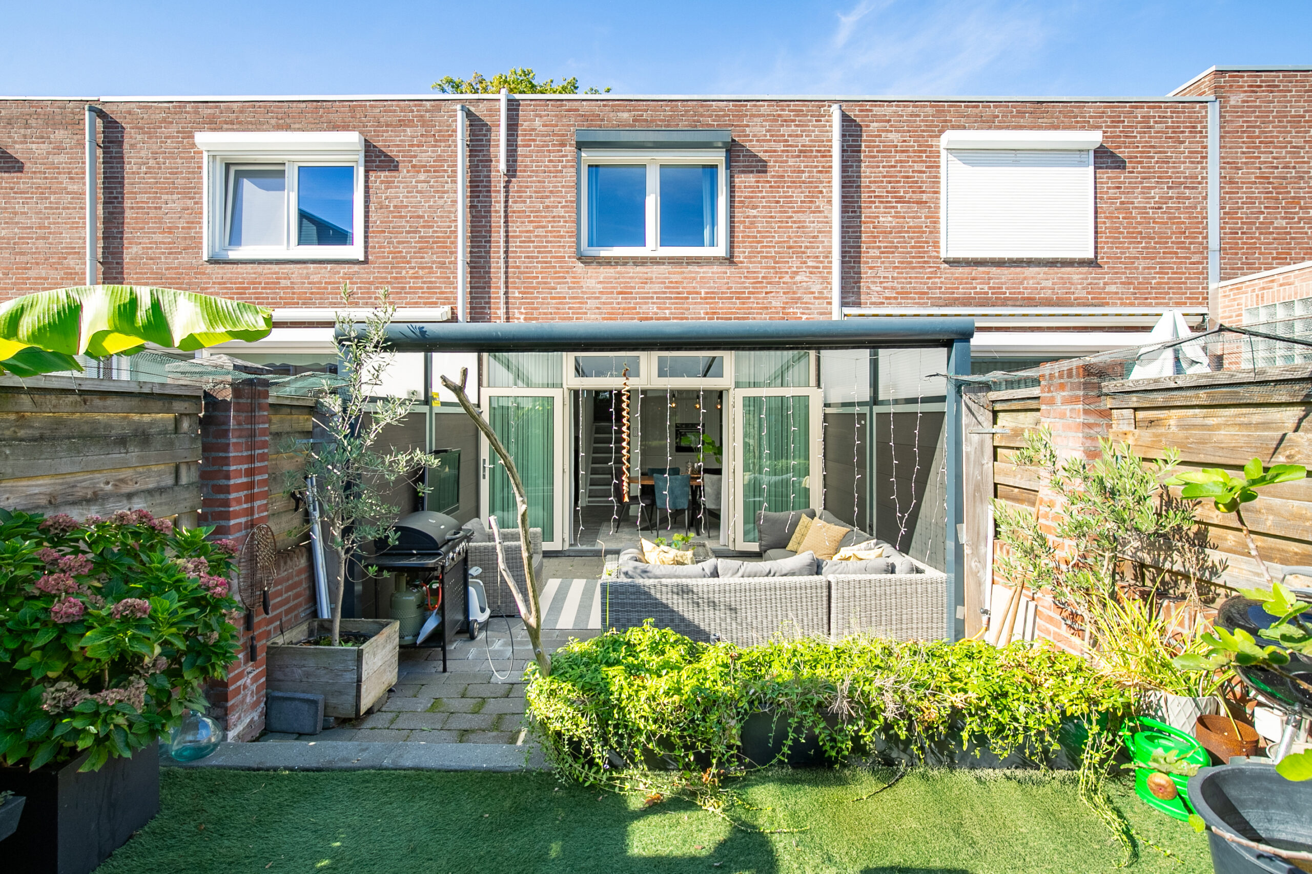 Door middel van een kleine trapopgang bereikt u de open keuken met eetkamer aan de tuinzijde van de woning. De keuken in L-opstelling is in 2023 geplaatst en voorzien van een 5-pitsinductie kookplaat, afzuigkap, vaatwasser, heteluchtoven en een koelkast. Deze ruimte geniet een goede mate van daglichttoetreding vanwege de raampartijen en openslaande deuren richting de achtertuin. De achtertuin is onderhoudsvriendelijk aangelegd, geniet een goede mate van privacy en is in 2017 voorzien van een overkapping met verlichting om een comfortabel buitenverblijf te realiseren.