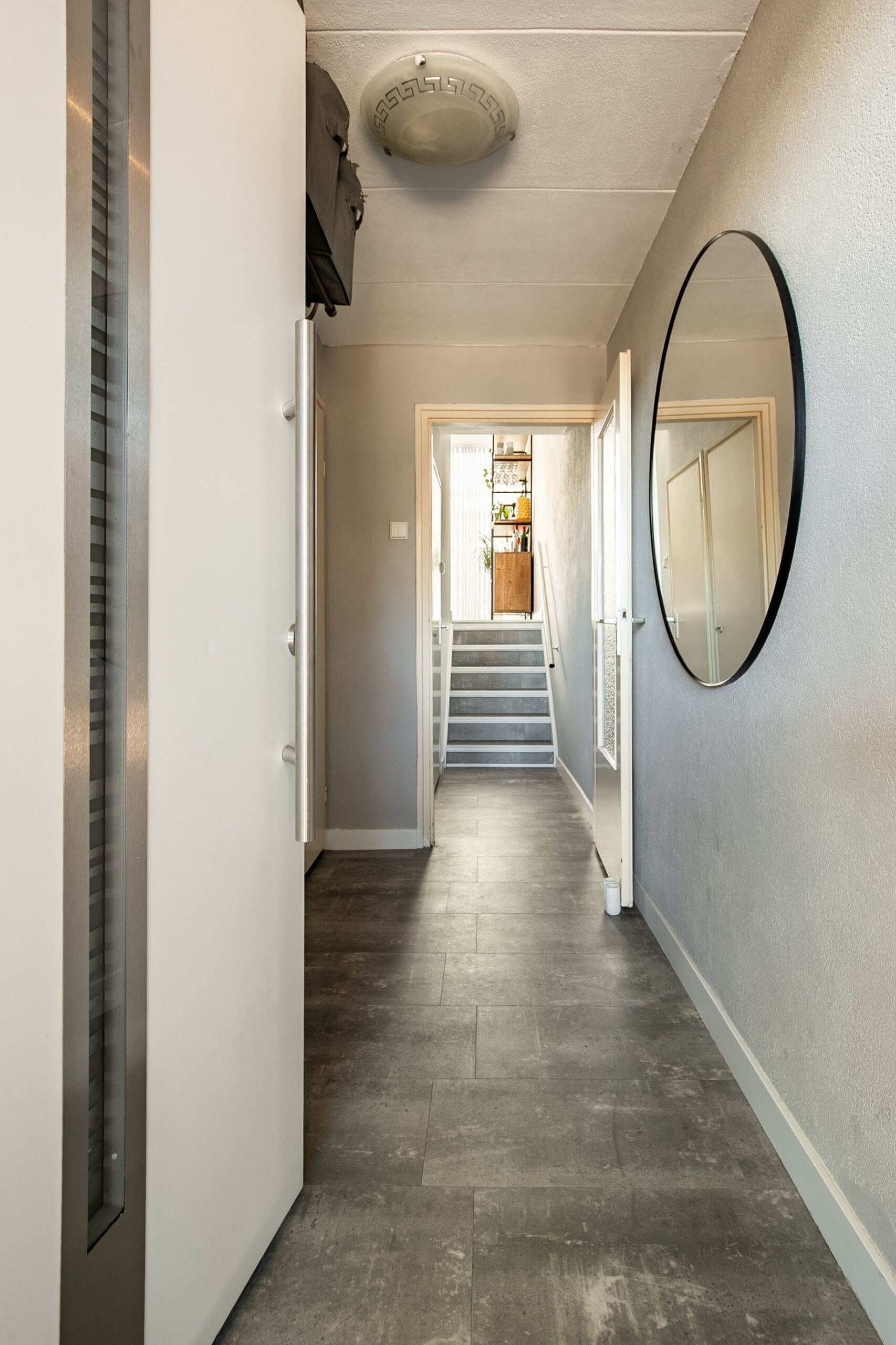 Via de oprit bereikt u de entree van de woning. De hal biedt toegang tot de toiletruimte en de garage met handmatig te openen sectionaalpoort. In de garage bevindt zich de Vaillant cv-installatie (eigendom, 2008) en is tevens het wasmachineaansluitpunt gerealiseerd.
