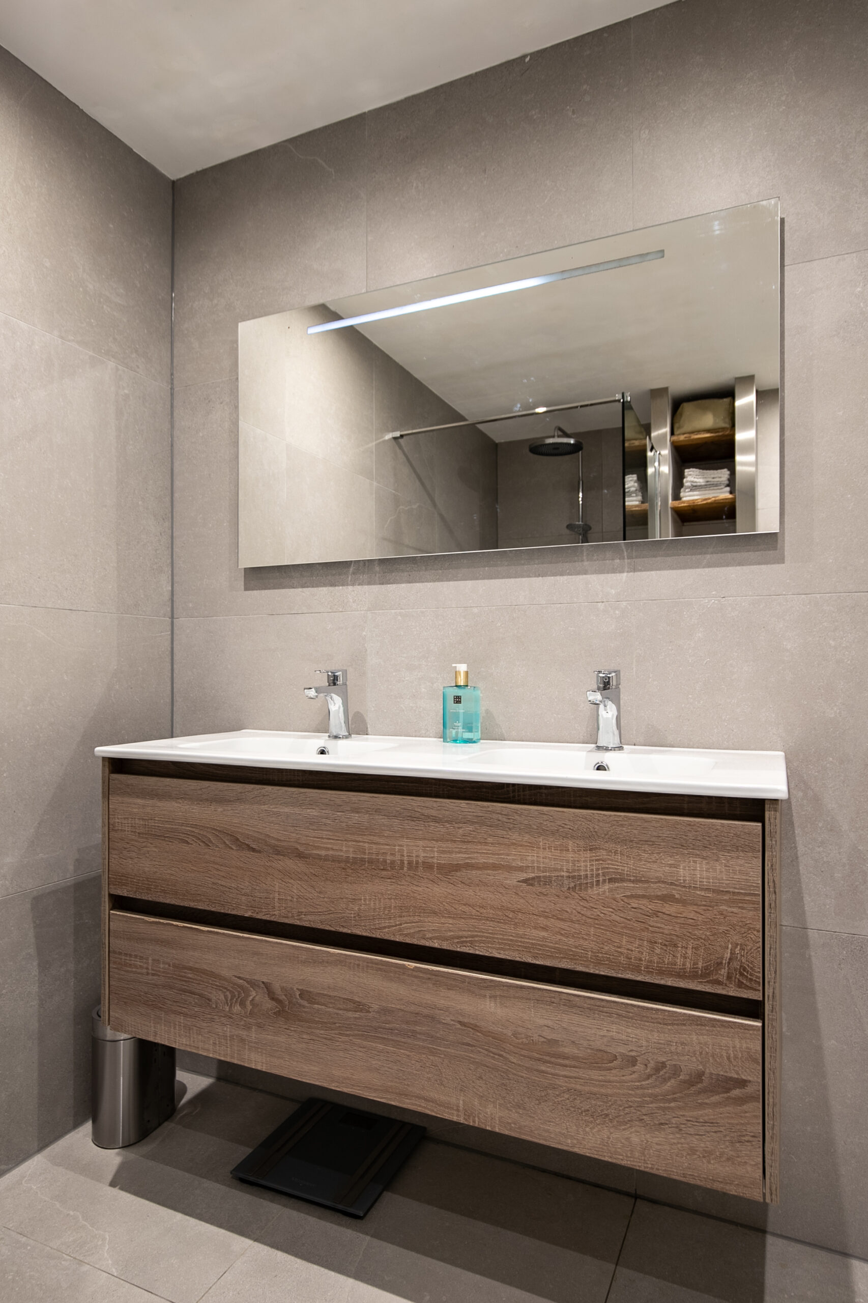 Vanuit de overloop heeft u toegang tot de slaapkamer met airconditioning welke ca. 10m2 groot is en de in 2019 vernieuwde badkamer. De badkamer is voorzien van een vrijhangend toilet, dubbel wastafelmeubel en inloopdouche.