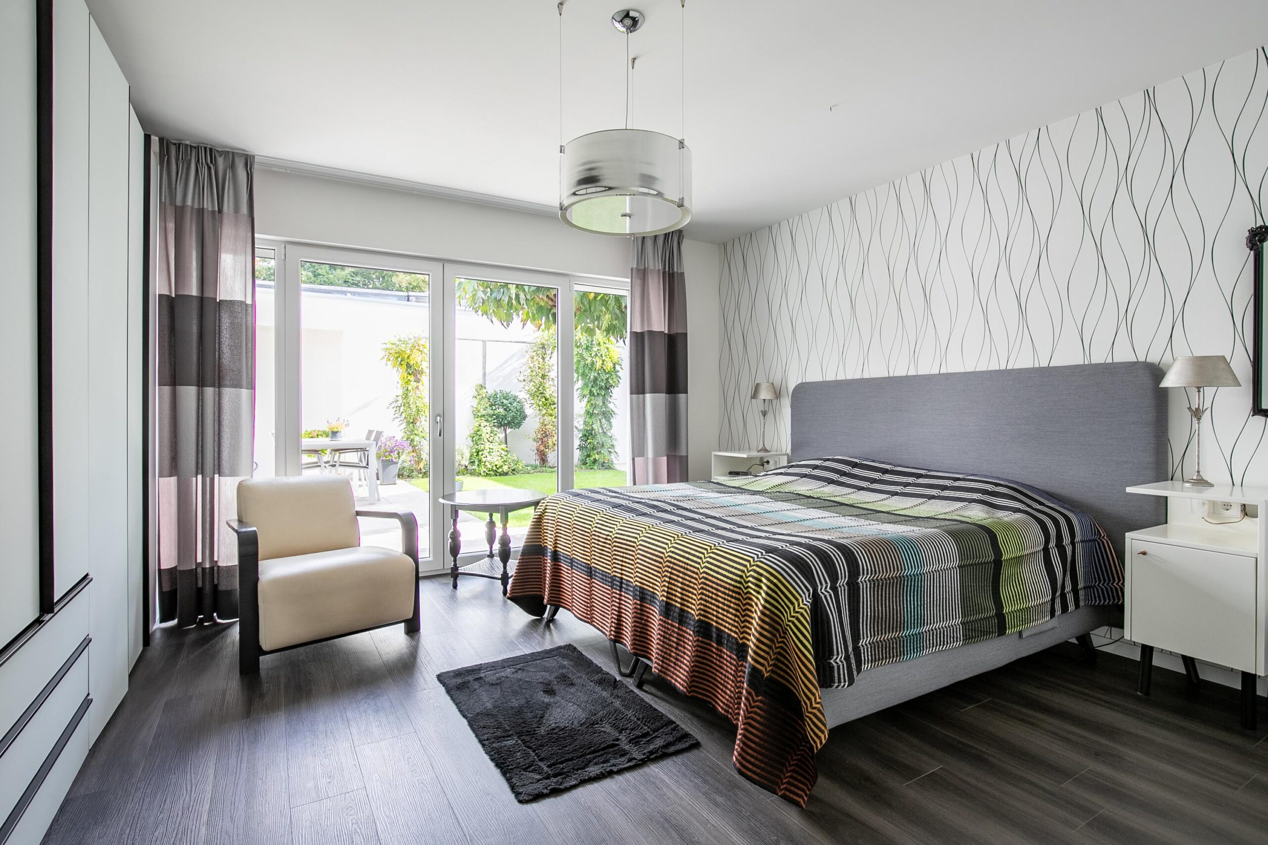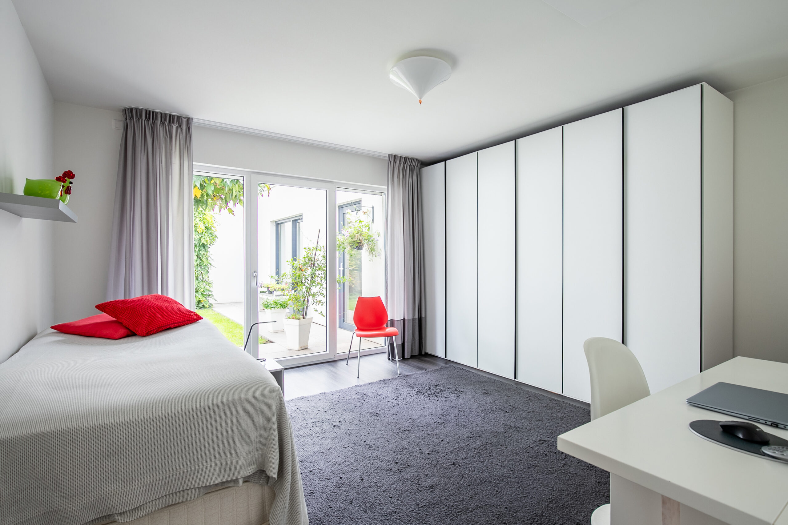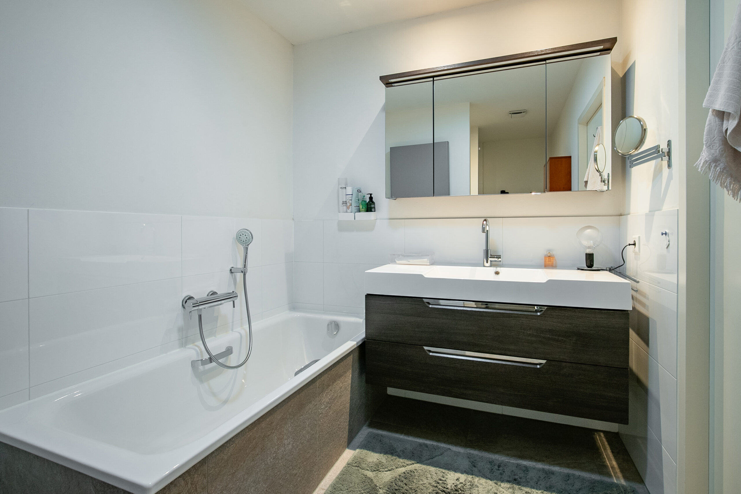 Vanuit de woonkamer is de slaapvleugel bereikbaar, met drie slaapkamers, badkamer en berging. Alle slaapkamers hebben toegang tot de patio. Ook vanuit de gang is een deur die toegang heeft tot de patio. Ruime en luxe afgewerkte badkamer voorzien van inloopdouche, ligbad, zwevend toilet en wastafel met badkamermeubel. Technische ruimte met aansluitpunten voor witgoed, opstelplaats voor hybride warmtepomp en omvormer voor de 18 zonnepanelen. Ruime inpandige berging en externe berging toegankelijk vanuit de patio. De patio is ingericht met een royaal terras voorzien van keramische tegels en is toegankelijk vanuit de woonkamer, slaapkamers en gang.