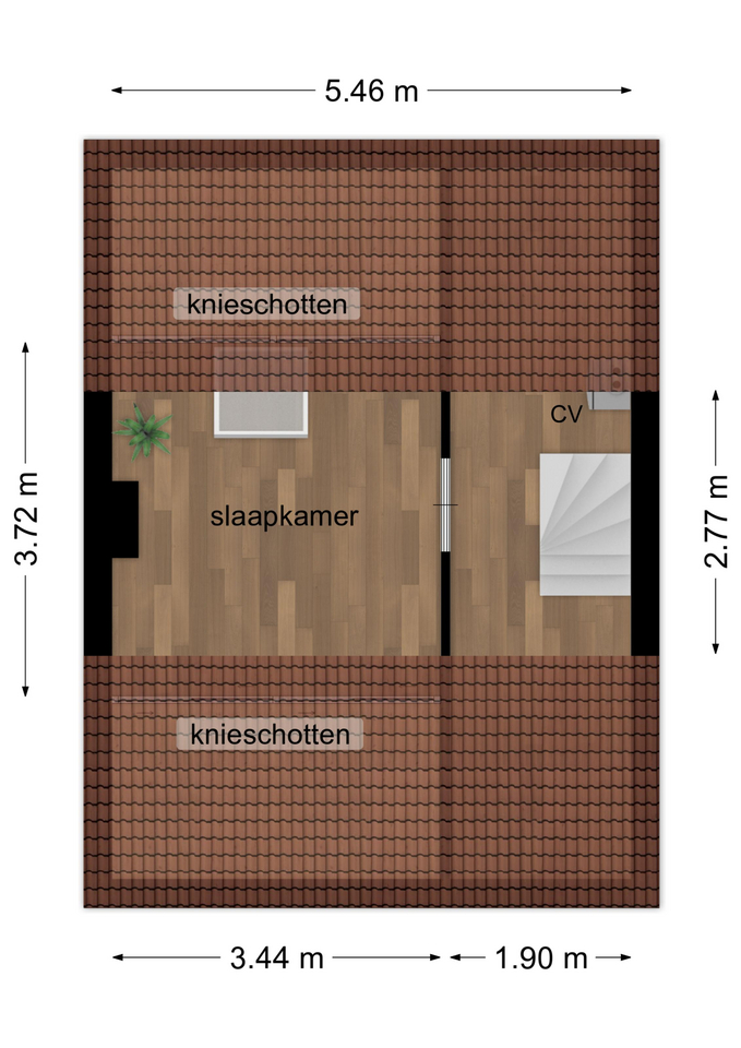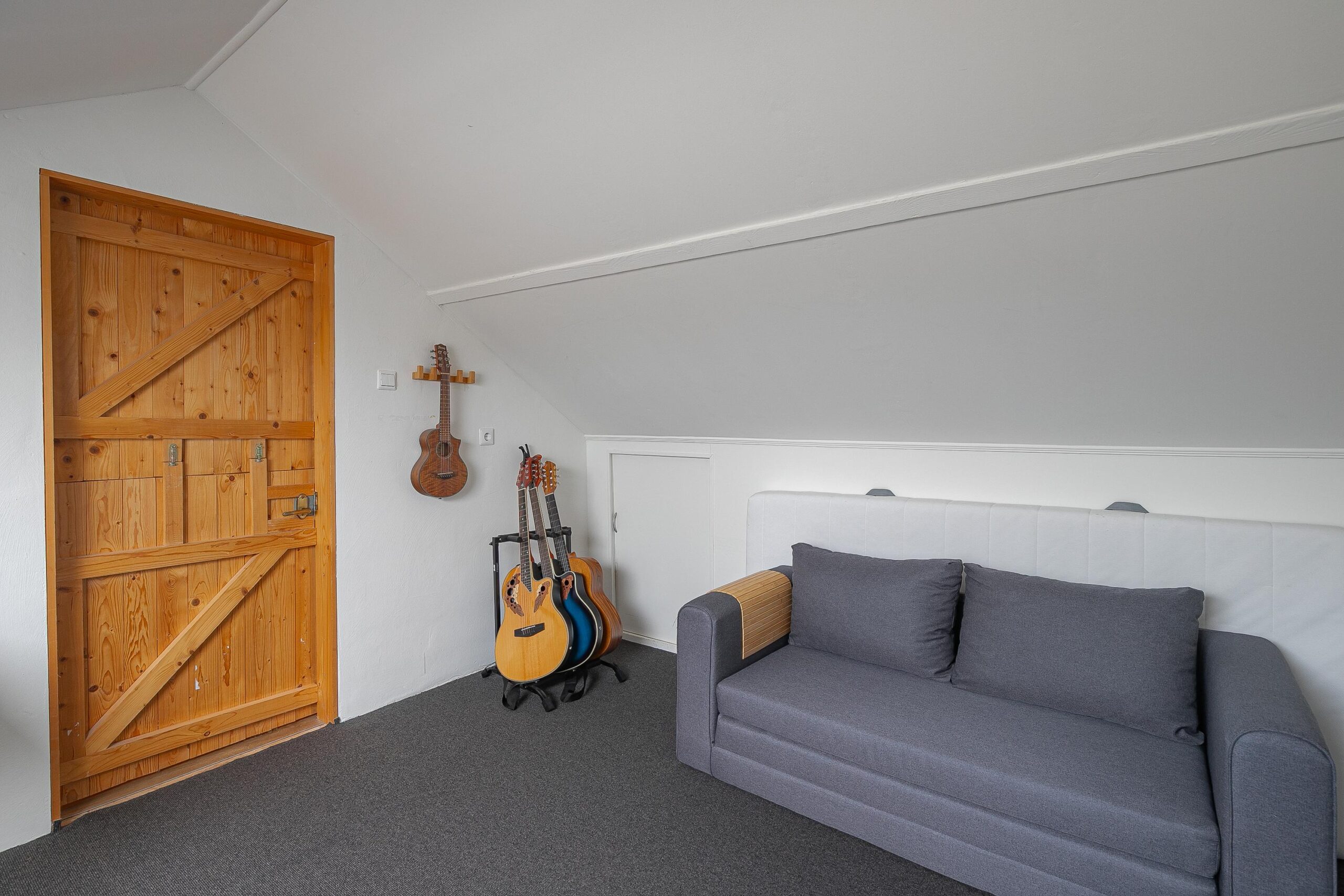Middels een vaste trap bereikbare zolderverdieping met een vierde slaapkamer (ca. 9.5 m²), bergruimte (knieschotten) en de opstelplaats van de CV-ketel (Remeha Avanta, bouwjaar 2020, eigendom)