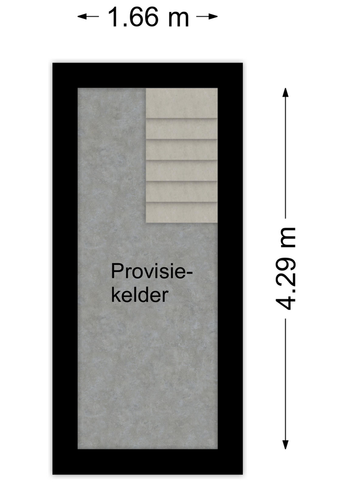 Vanuit de keuken bereikbare provisiekelder (ca. 7 m²) heeft een stahoogte van ca. 2 m.