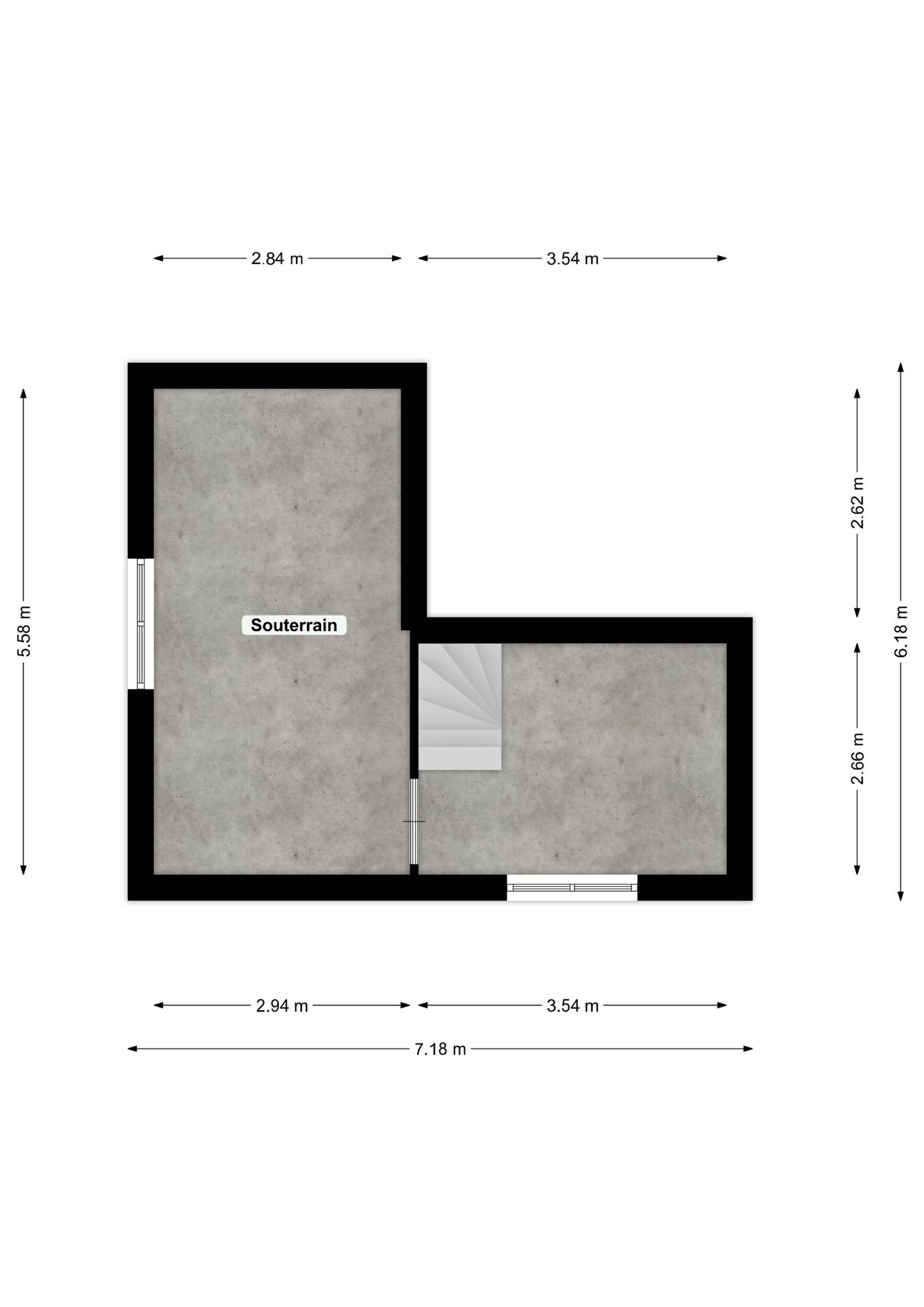 Souterrain, welke opgedeeld is in twee kelderruimtes. Ideaal als hobbyruimte, wijnkelder en opslagplek. Vanuit een van de kelderruimtes is de kruipruimte te bereiken. Daarnaast bevindt zich de omvormer t.b.v. 13 zonnepanelen (eigendom, Dmegc 400 WP per paneel, 2023) zich in de kelder.