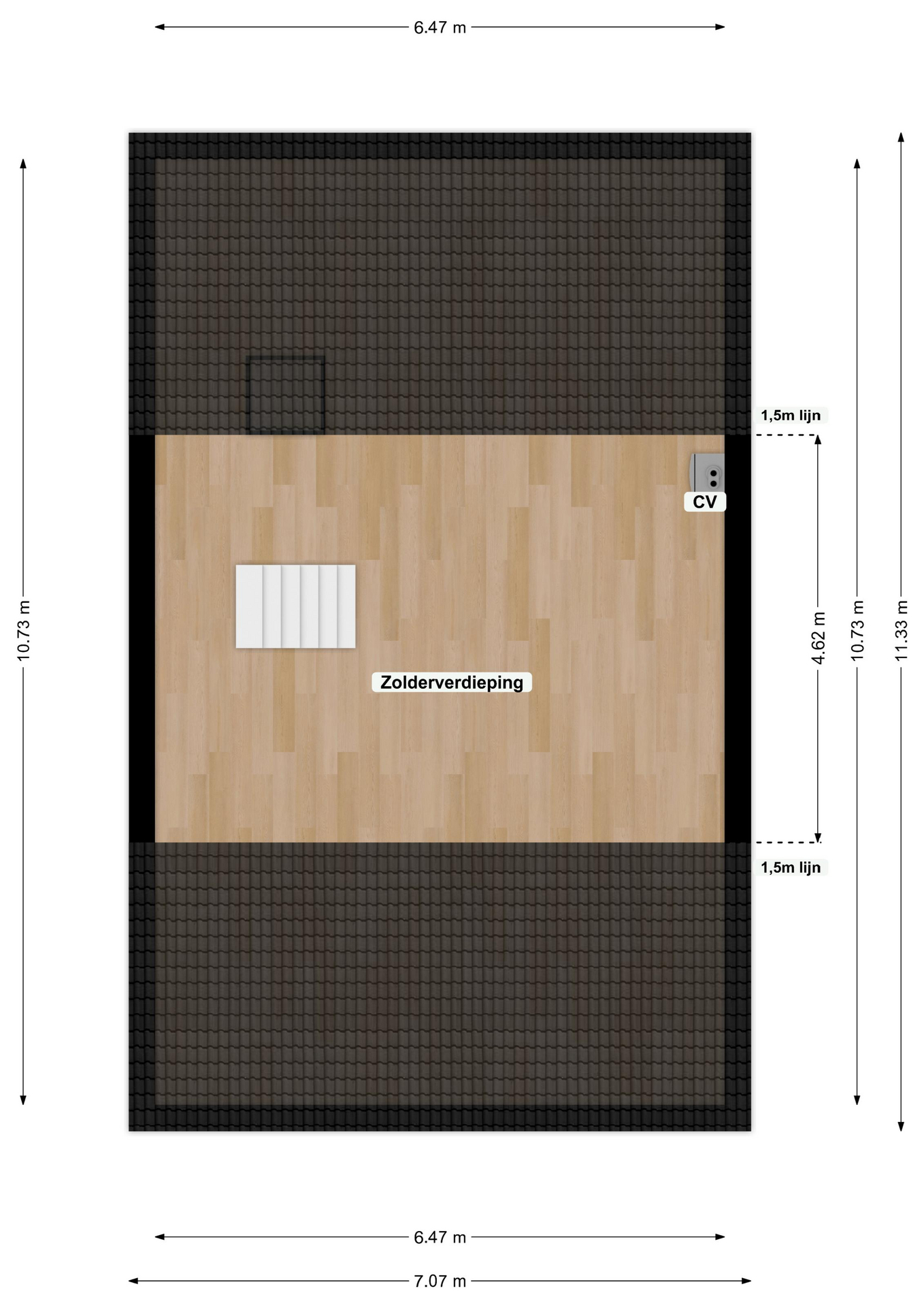Via vaste trap te bereiken, royale, geïsoleerde zolderverdieping, voorzien van twee dakramen en alwaar de combi cv/hr-ketel (Remeha, 2018, eigendom) zich bevindt.