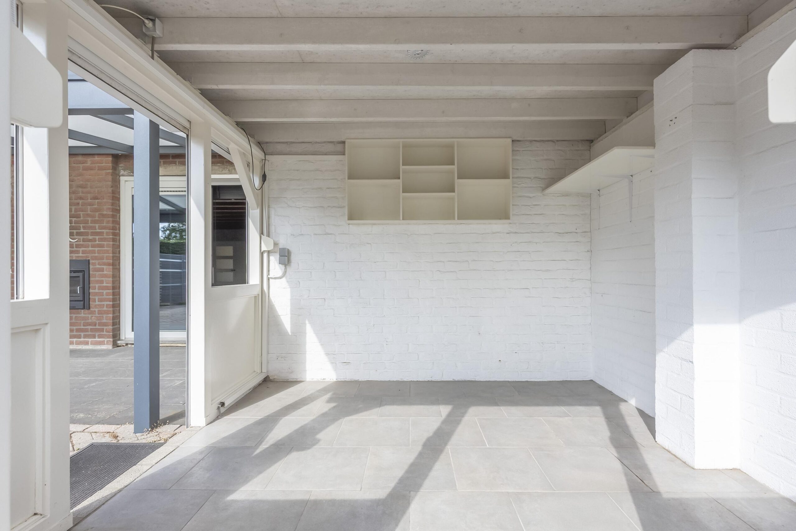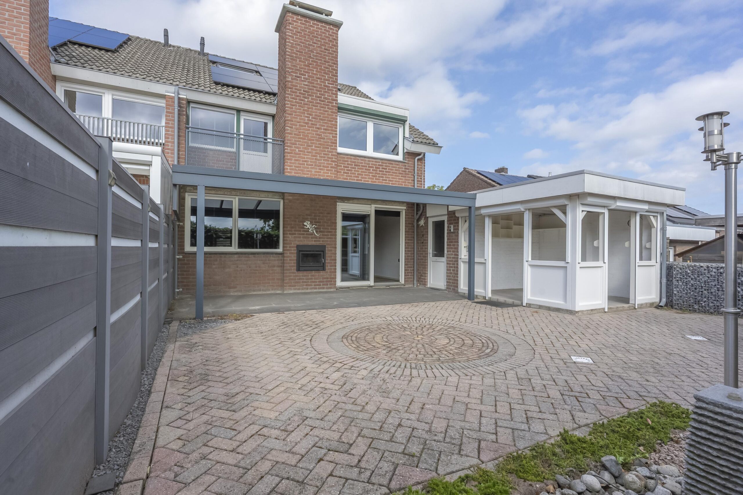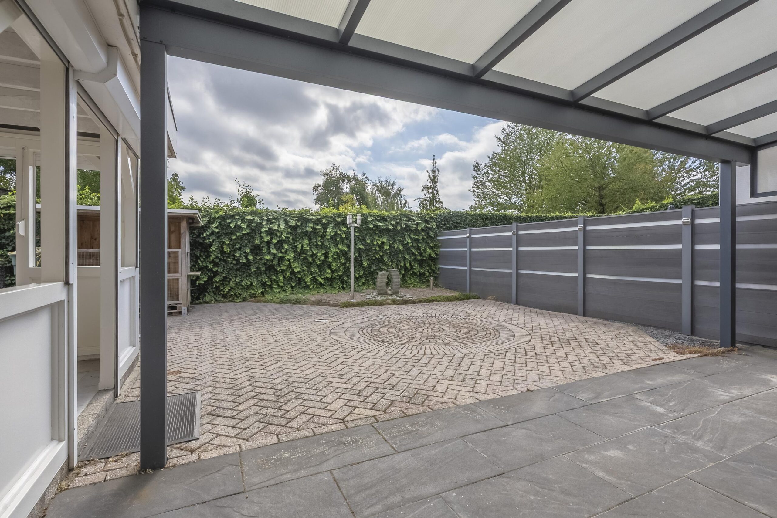 Vanuit de garage en middels schuifpui in woonkamer te bereiken, geheel omsloten, onderhoudsarme en tevens zonnige tuin. De tuin beschikt over een terras met aluminium terrasoverkapping en tweede open haard, afsluitbaar overdekt terras en diverse zitmogelijkheden.
