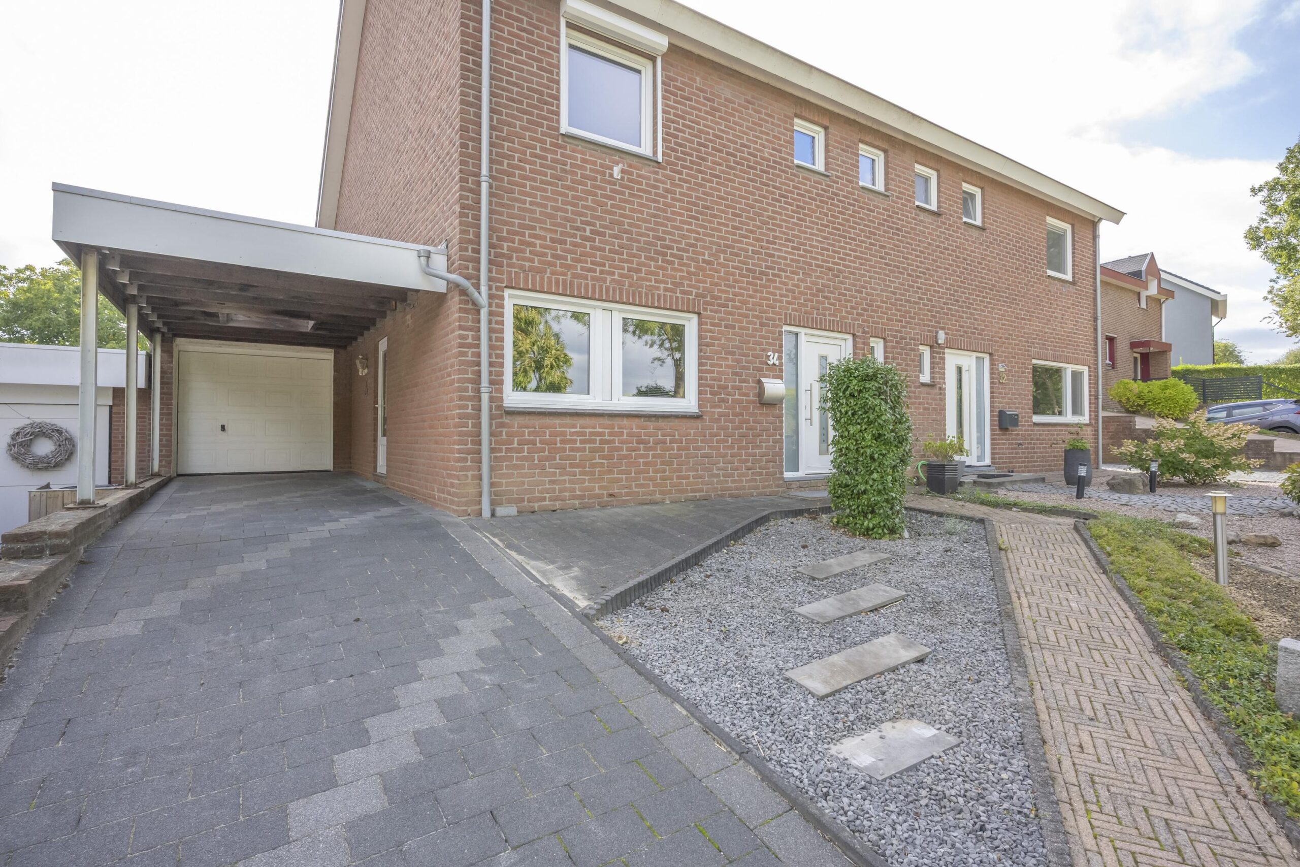 Rustig, docht centraal, tegenover groen landschap gelegen, deels gemoderniseerde halfvrijstaande woning, met oprit, carport, garage, dubbele openhaard, onderhoudsarme tuin,drie slaapkamers, royale badkamer, balkon en vaste trap naar zolder. Aan de Raadhuisstraat 34 te Merkelbeek/Beekdaelen.