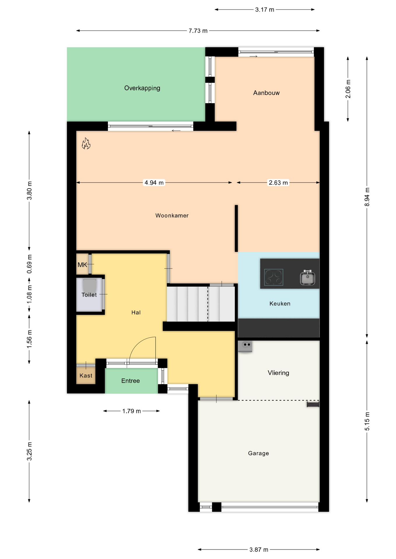 - Oppervlakte gebouwgebonden ca. 13 m2