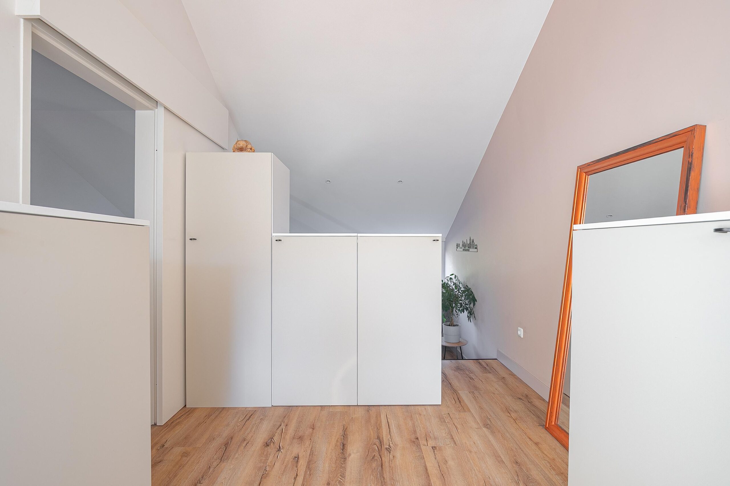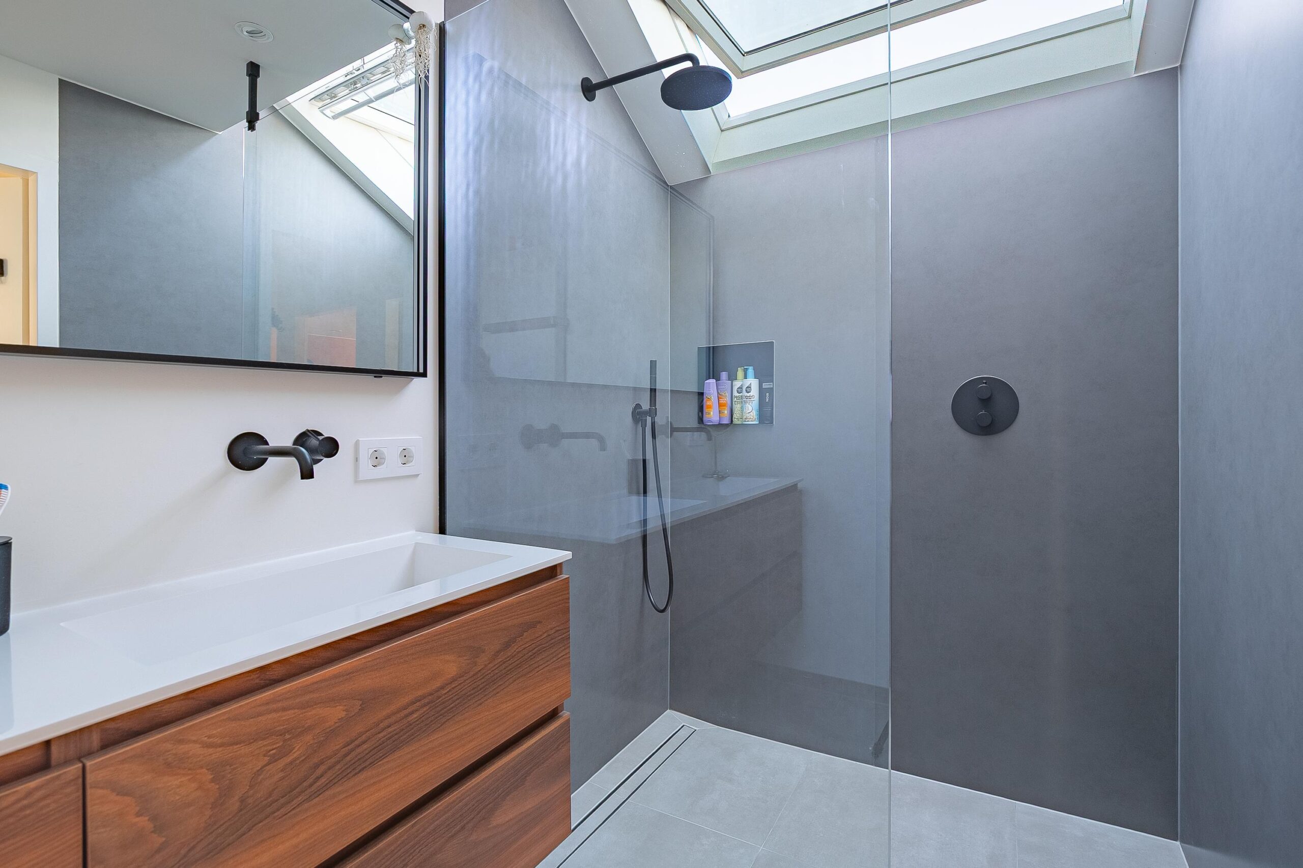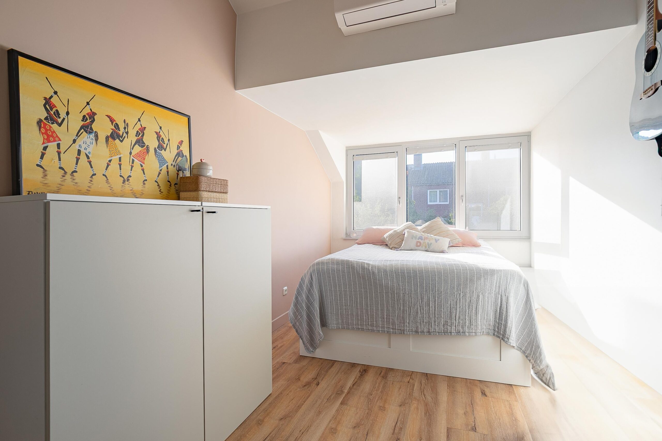 Overloop met sfeervolle vide en toegang tot drie slaapkamers, badkamer en separaat toilet. De grote slaapkamer (ca. 22m²) beschikt over een airco en een klein niveauverschil, waardoor de kamer optimaal in te delen is. De twee overige slaapkamers (ca. 8 en 10m²) zijn voorzien van een dakkapel en airco’s. De moderne badkamer (2023) is ca. 4m² groot en voorzien van een dubbel wastafelmeubel en een fijne inloopdouche.