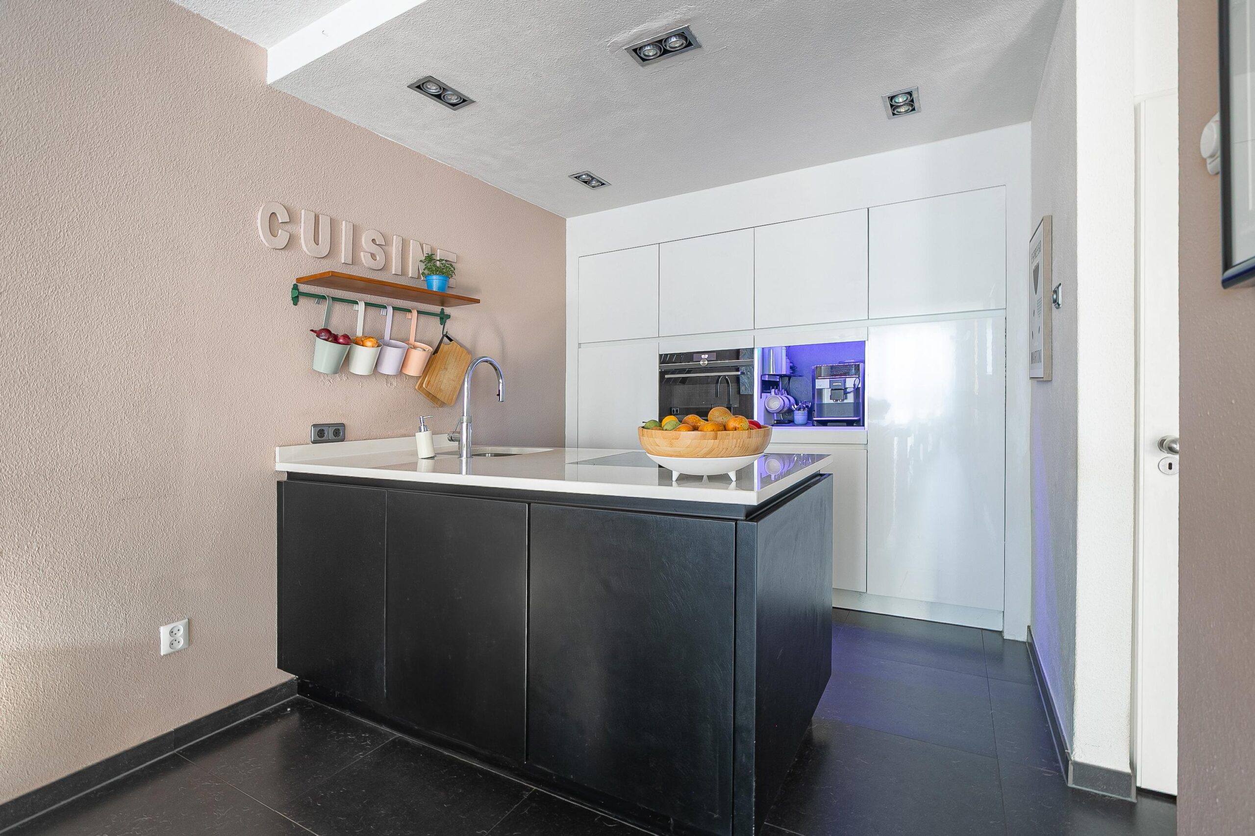 Entree/hal met toegang tot de garage, trapopgang, opbergkast, toilet, meterkast en woonkamer. De inpandige garage (ca. 18m²) is voorzien van een elektrische sectionaalpoort, elektrapunten, verwarming en een praktische vliering waar de Cv-ketel en de omvormer van de zonnepanelen zijn gesitueerd. De lichtovergoten woonkamer (ca. 39m²) is voorzien van een sfeervolle bio-ethanolhaard, airco en twee schuifpuien (waarvan één in de aanbouw is gesitueerd). De open keuken (ca. 7m²) met kastenwand en spoel- en kookeiland is voorzien van een inductiekookplaat met vier zones, vaatwasser, koelkast, stoomoven en een Quooker kraan. Onder de trap bevindt zich nog een praktische bergkast. De begane grond is grotendeels voorzien van vloerverwarming.