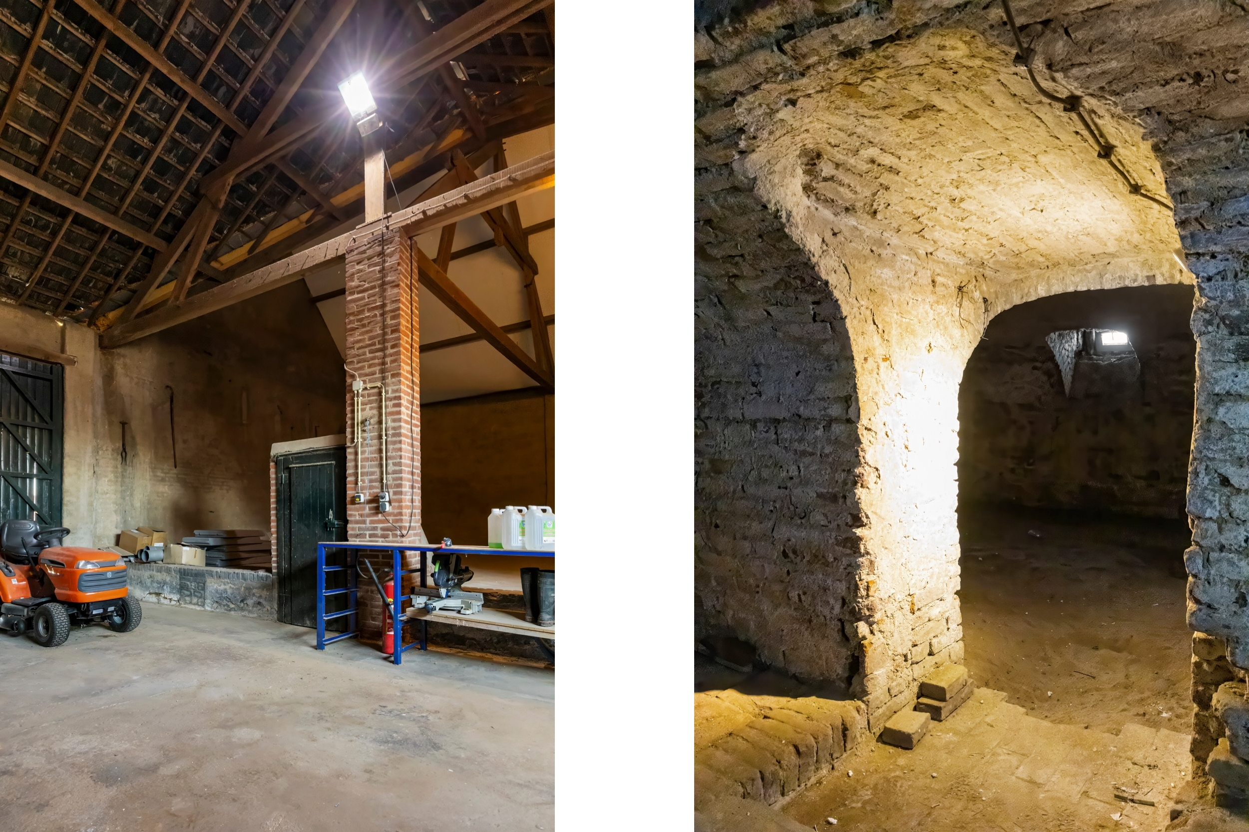 De garage met dubbele poort is al gerealiseerd. Daarnaast bevindt zich in één van de schuren een gewelfde kelder, wat een mooi en authentiek element is binnen het geheel. De boerderij ligt op een ruim perceel van circa 4.950 m², wat zorgt voor veel vrijheid en mogelijkheden rondom de woning.