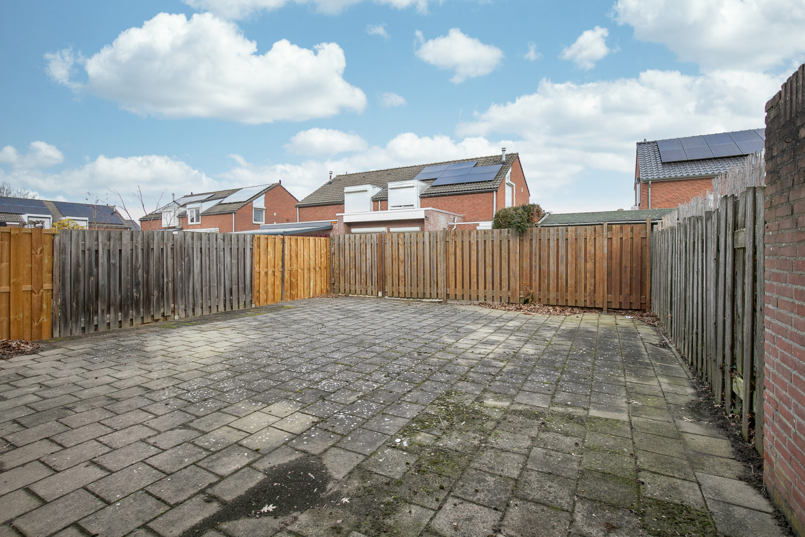 De tuin (ongeveer 9 meter diep) is geheel omsloten en is gelegen op het noordoosten, deze tuin biedt daarom de hele dag zon- en schaduwplekken. De tuin is onderhoudsvriendelijk aangelegd.