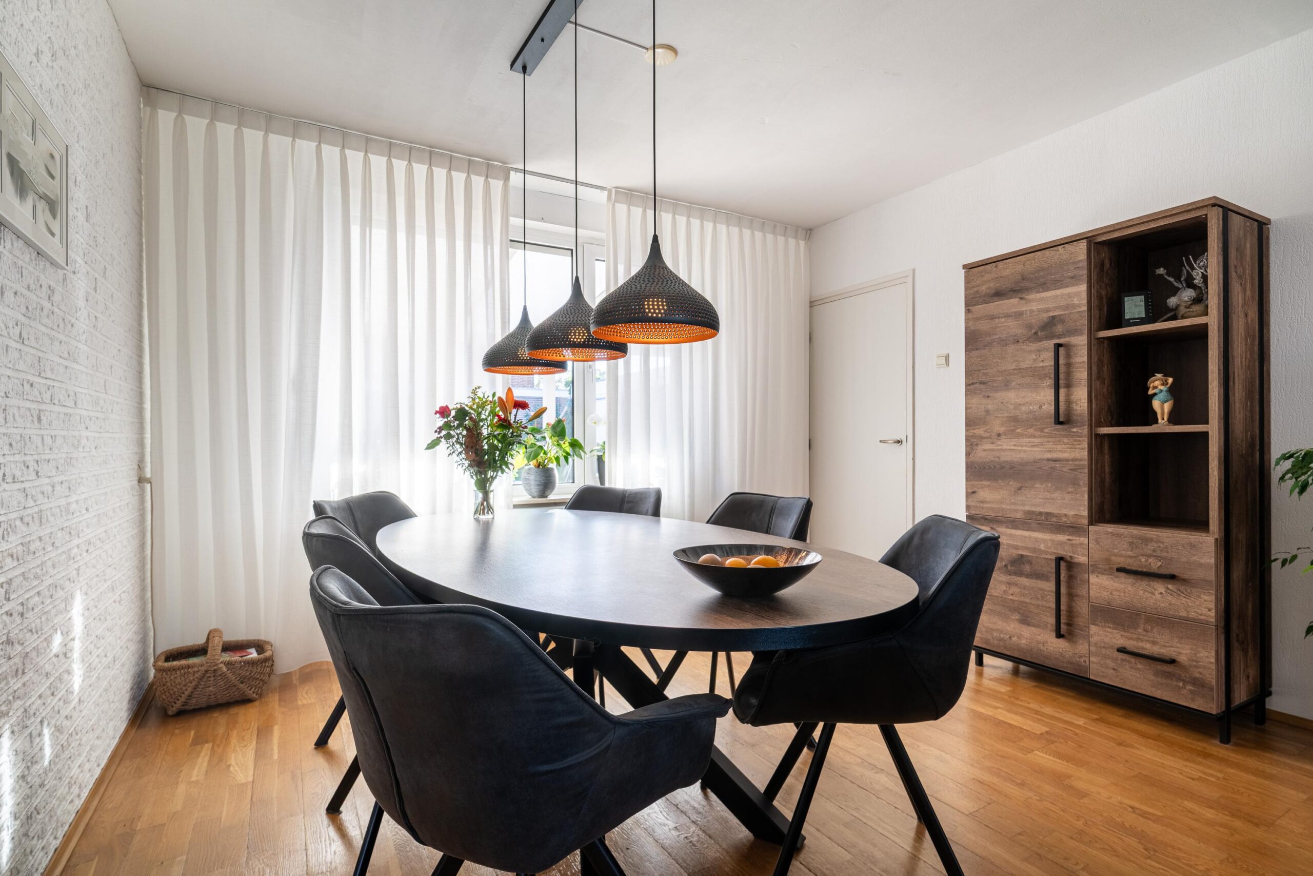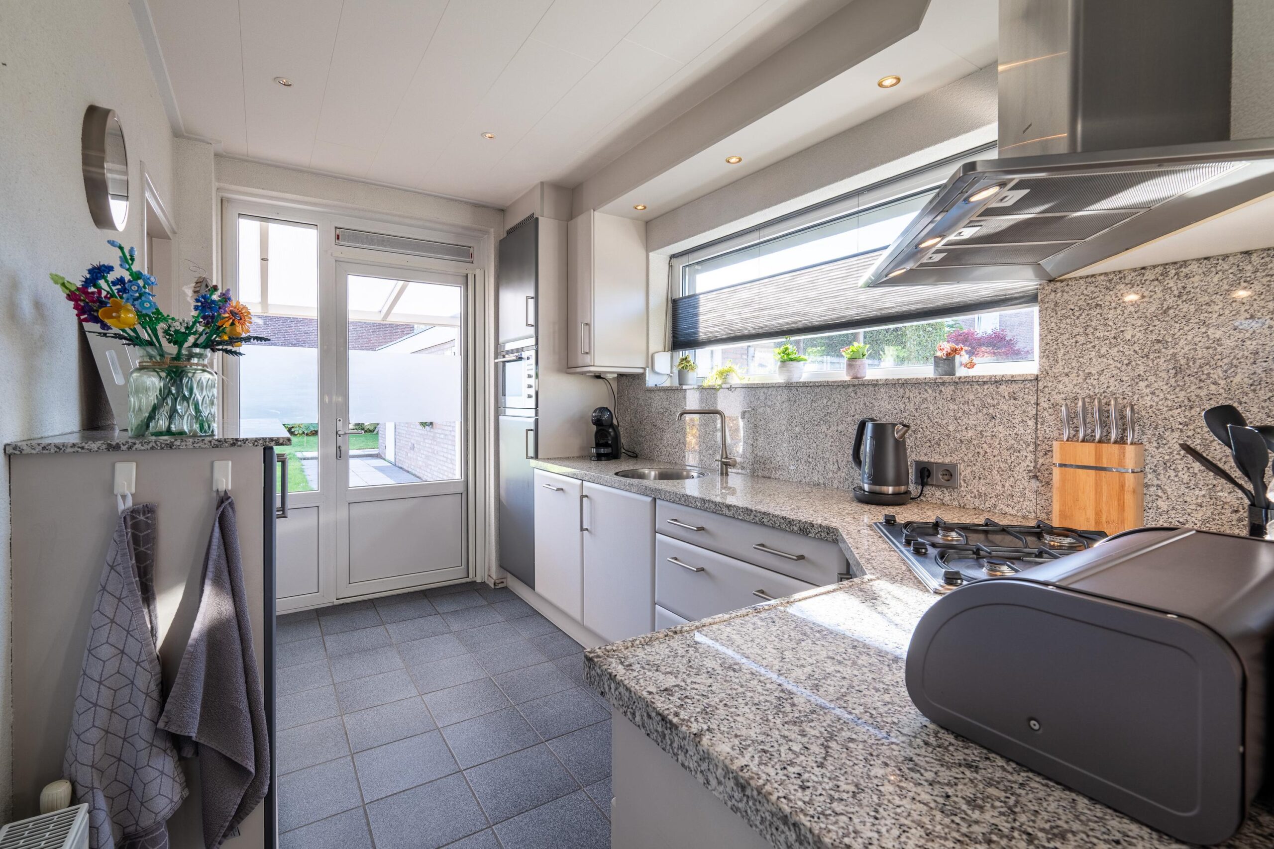Naast de woning bevindt zich een zeer ruime garage met elektrische sectionaalpoort en loopdeur naar de tuin. Aansluitend ligt de carport met extra hoge sluitbaan (ca. 2,75 m), ideaal voor het stallen van een caravan.