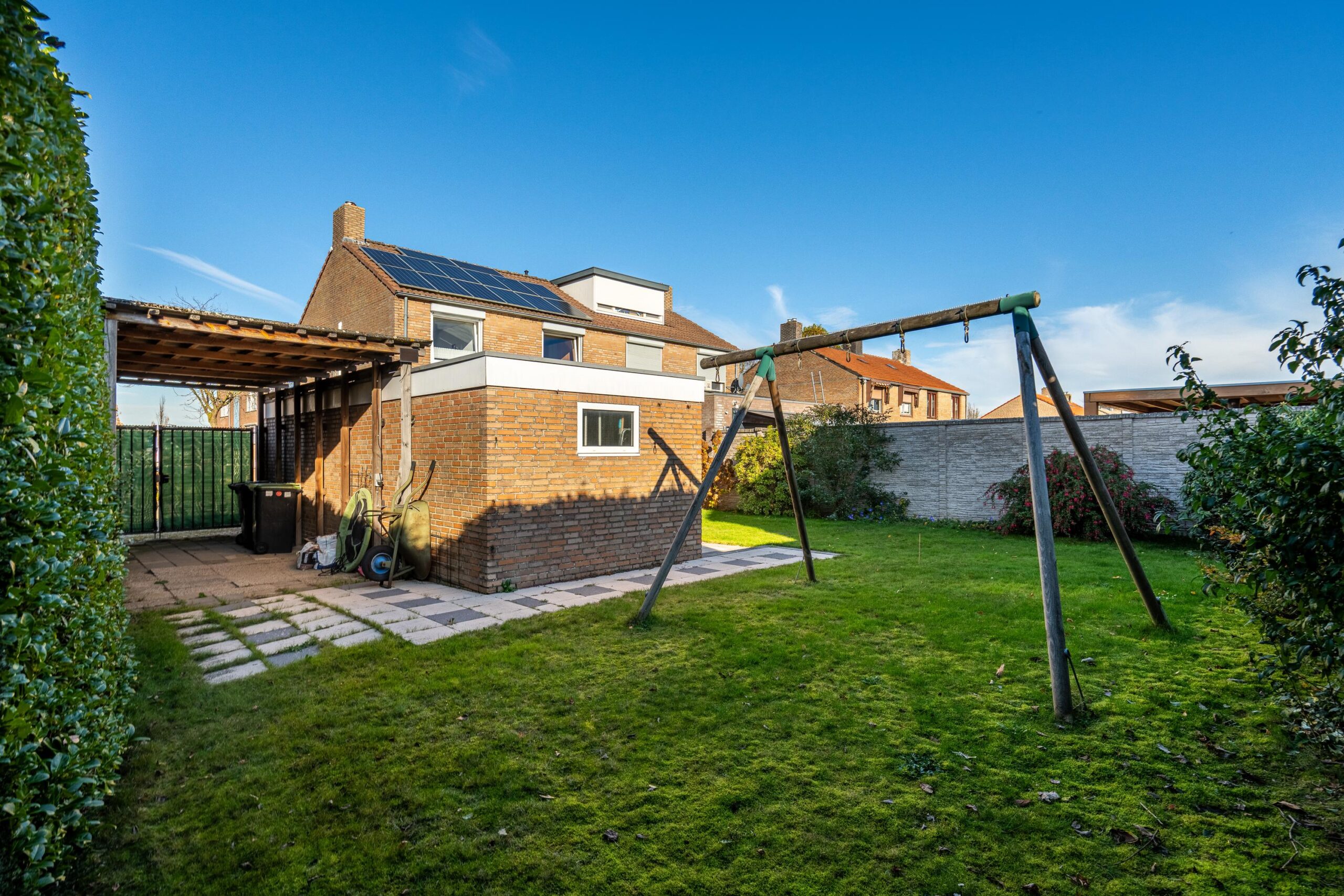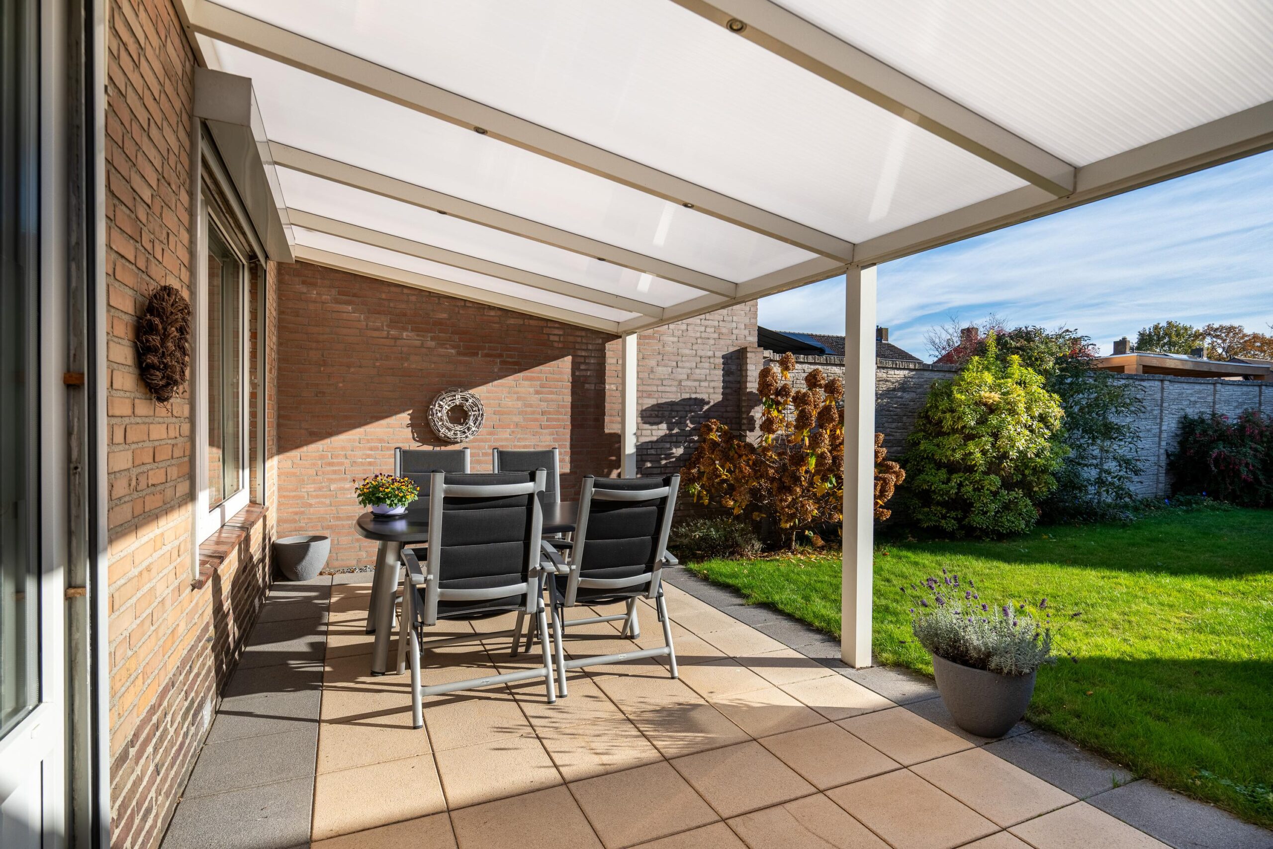 Via de keuken, oprit of garage is de geheel omsloten en zonnig aangelegde tuin bereikbaar. De tuin is circa 16 meter diep, biedt optimale privacy en beschikt over een aluminium terrasoverkapping met ingebouwde verlichting.