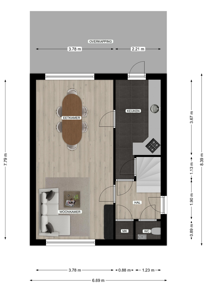 – Woning geheel voorzien kunststof kozijn dubbel glas;