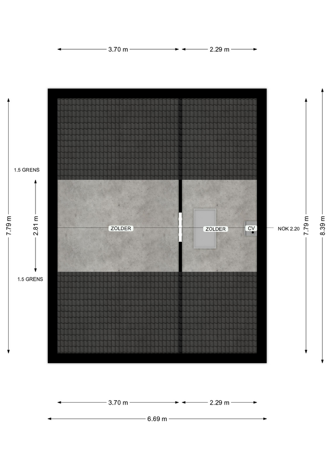 De bergzolder is bereikbaar via een vlizotrap en herbergt de combi-cv-installatie (Intergas, huur via Volta) en de omvormer van de 14 zonnepanelen. De zolder biedt bovendien de mogelijkheid om een extra slaapkamer te realiseren.