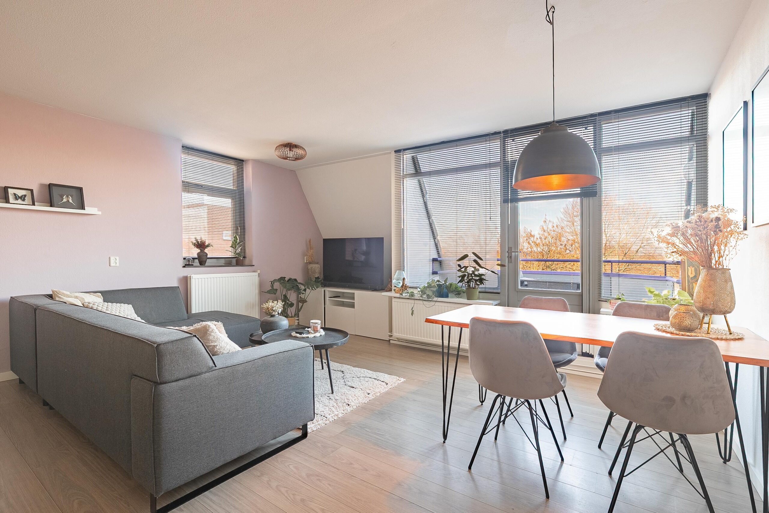 Instapklaar hoekappartement op de vierde verdieping met twee slaapkamers en een ruim balkon, gelegen in de wijk De Heeg op korte afstand van het winkelcentrum.