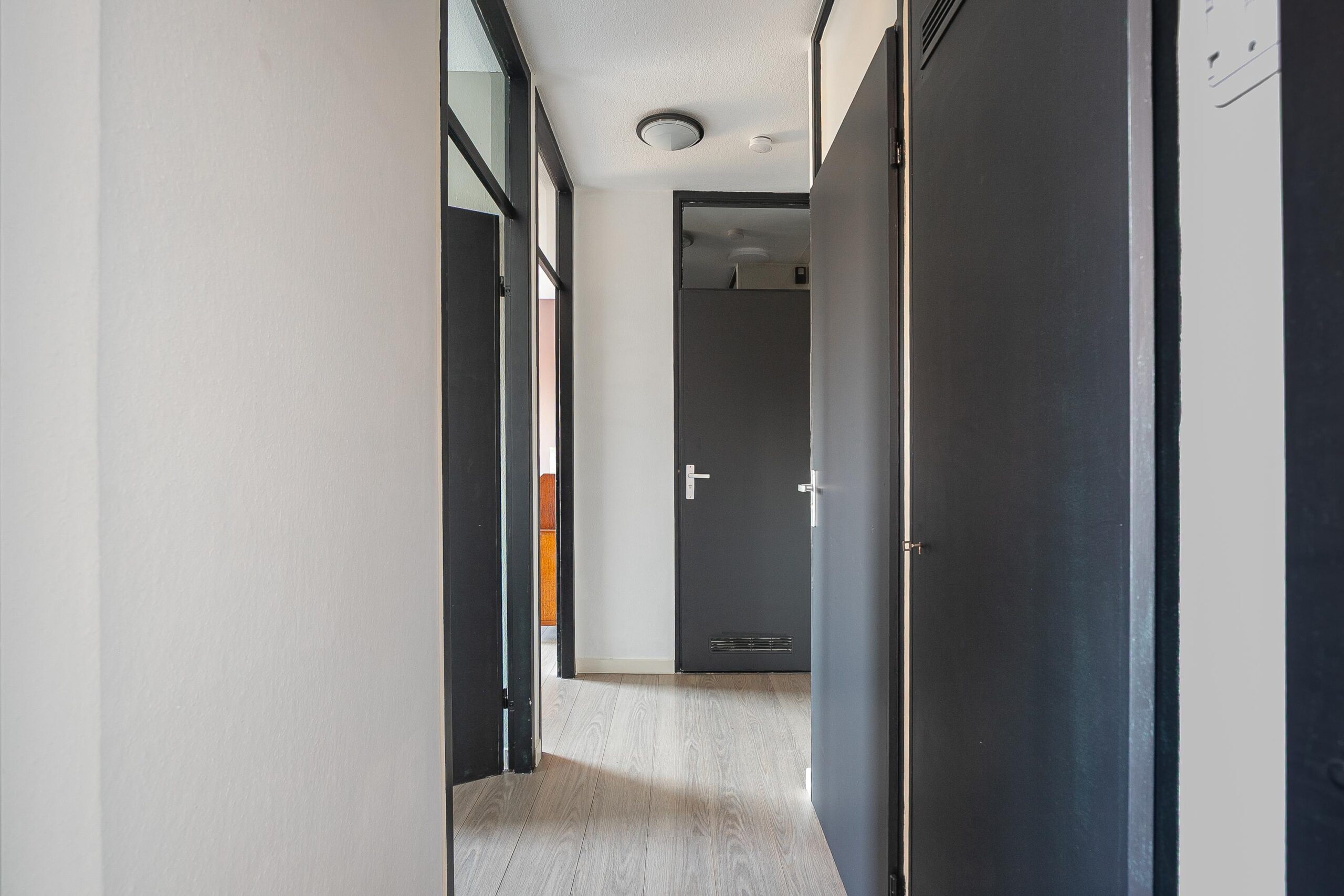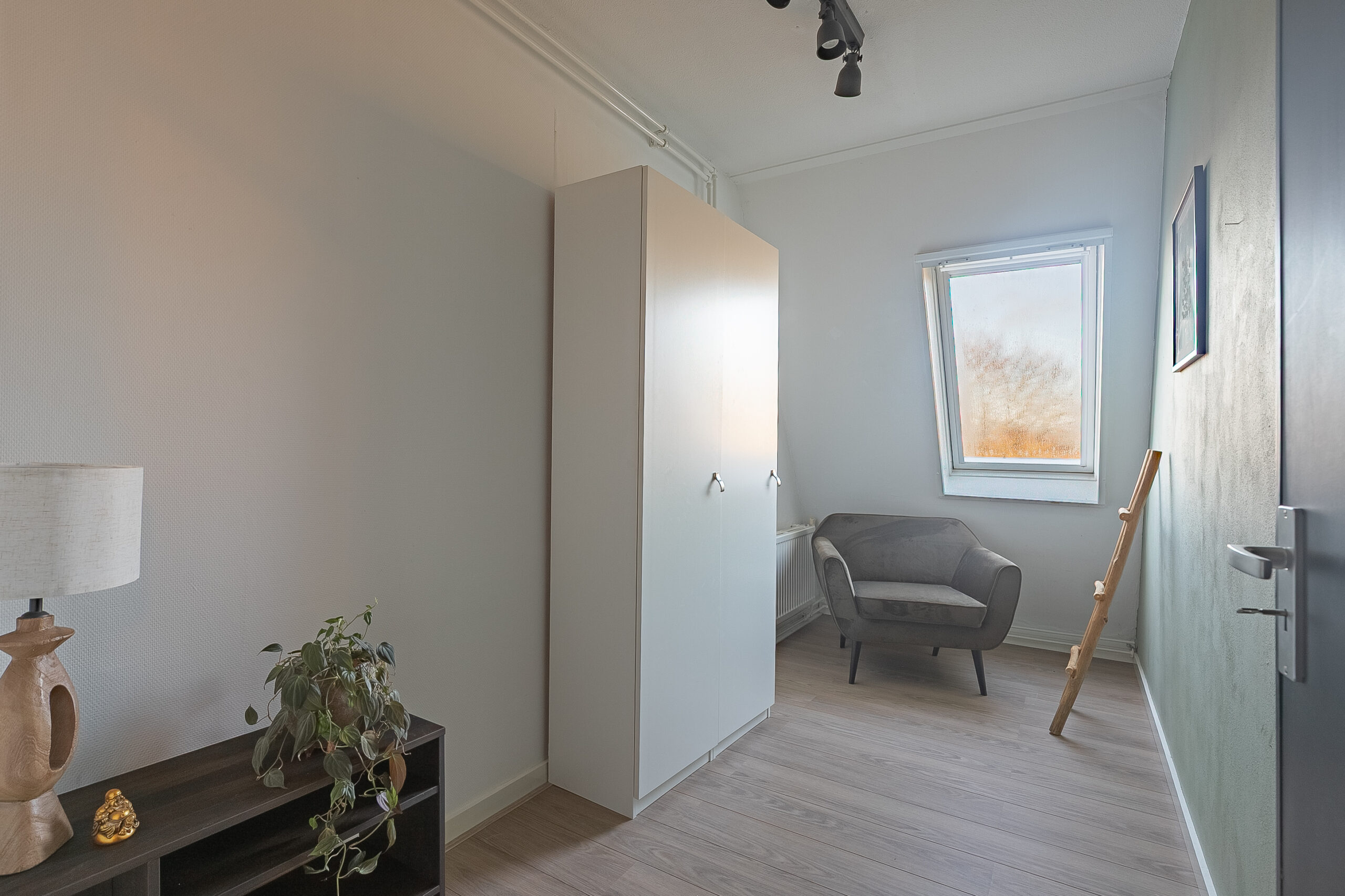 Via de entree is er toegang tot de hal met een berging voorzien van witgoedaansluitingen. Vanuit de hal zijn de in 2025 vernieuwde badkamer (ca. 3 m²) met inloopdouche en wastafelmeubel bereikbaar, evenals twee slaapkamers van ca. 13 m² en 7 m². Beide slaapkamers zijn voorzien van een groot dakraam.