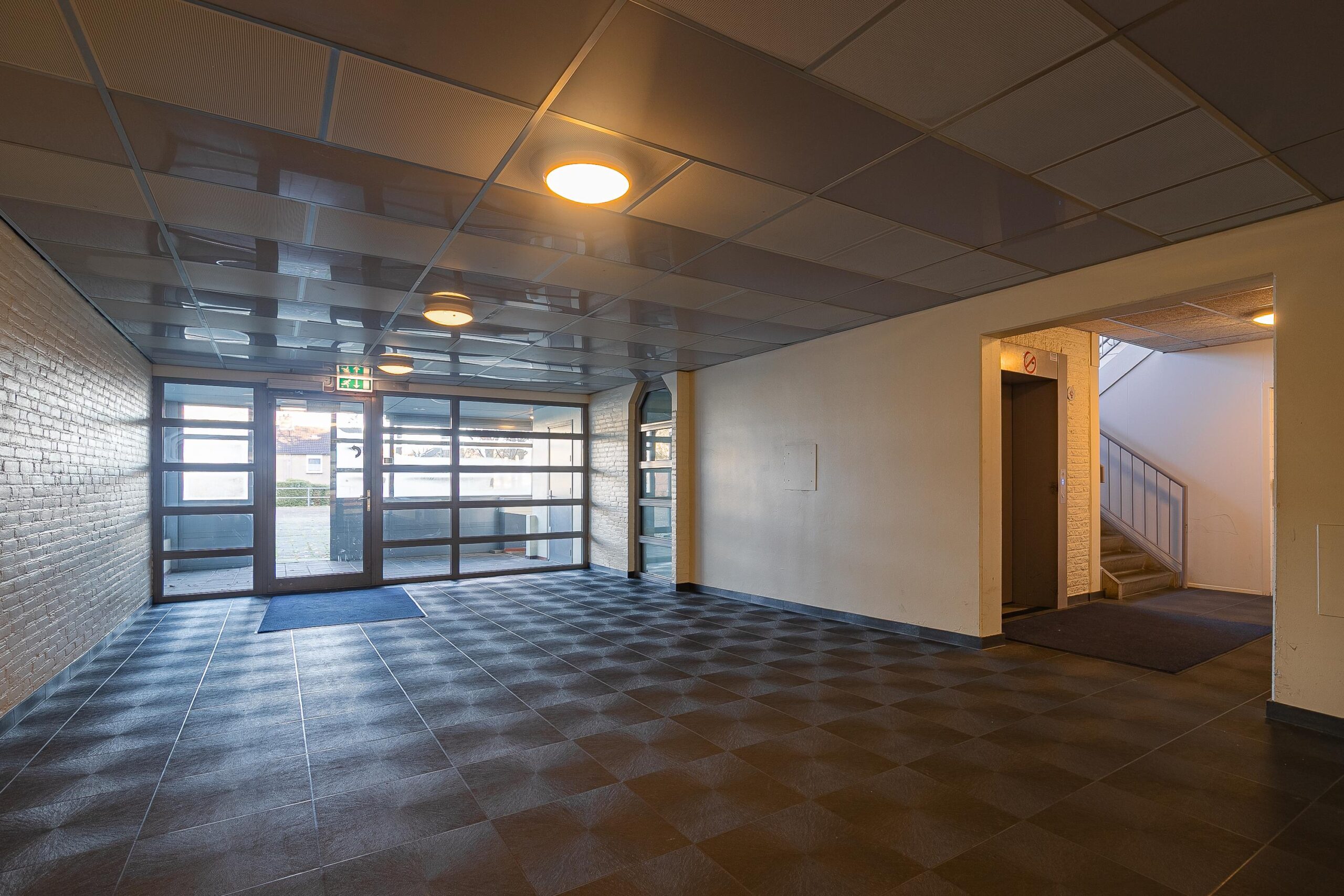Centrale entree met brievenbussen, bellentableau, intercom en toegang tot het trappenhuis, de lift en de berging.