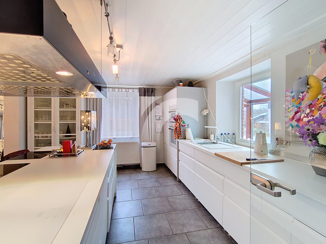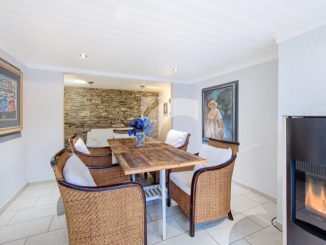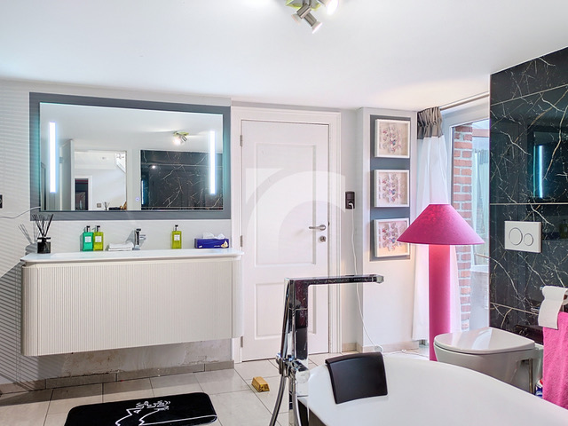 De lichtrijke woonruimtes zijn zorgvuldig ontworpen en maximaliseren het natuurlijke daglicht. Via de binnenkoer bereikt u de grote dubbele garage en talrijke bergruimtes, die in alle praktische behoeften voorzien. Een apart gebouw in natuursteen leent zich uitstekend voor professioneel gebruik of voor ontvangsten en feesten. De overdekte terrassen bieden een prachtig uitzicht op een waterpartij en creëren een stijlvolle en ontspannen sfeer.