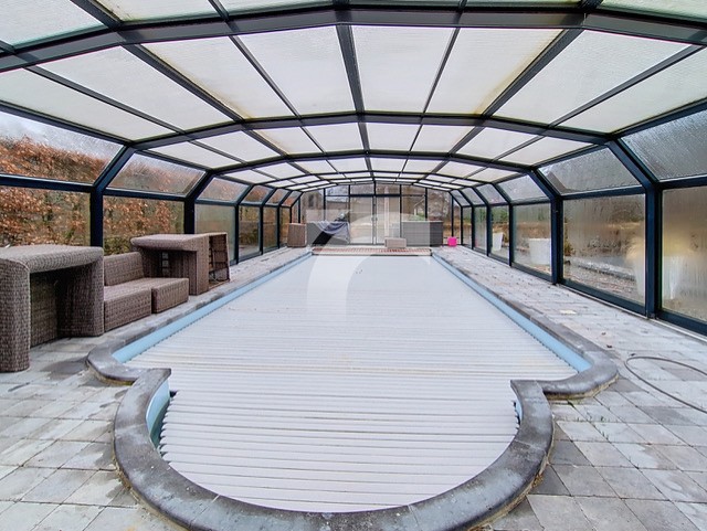 Op korte afstand bevindt zich het verwarmde tuinhuis direct aan de oever van de vijver. Daarnaast vindt u een volledig uitgeruste wellnessruimte met zwembad, sauna en fitness – ideaal om te genieten van ontspannende momenten met familie en vrienden in een uitzonderlijke omgeving. Het geheel wordt vervolledigd door een grote geïrrigeerde serre, een bootje voor de vijver, hoogwaardige technische installaties, diverse meubelstukken en kachels – alles klaar om van dit landgoed uw nieuwe thuis te maken.