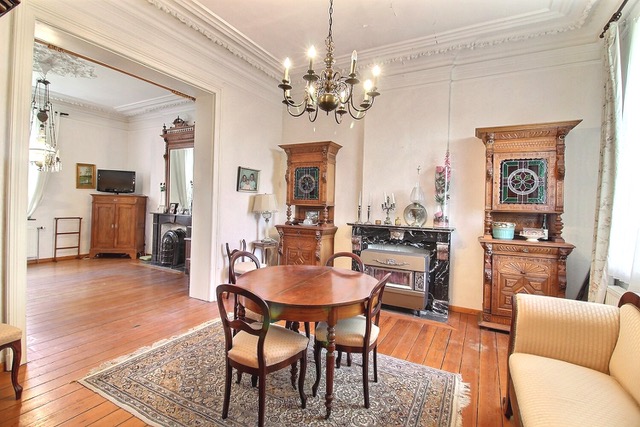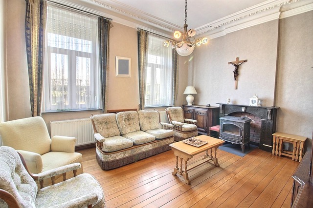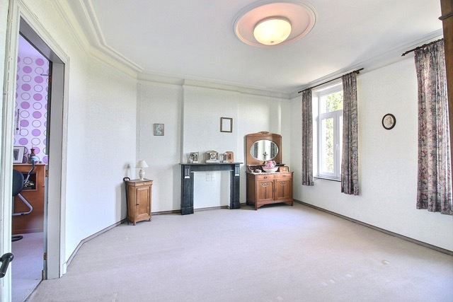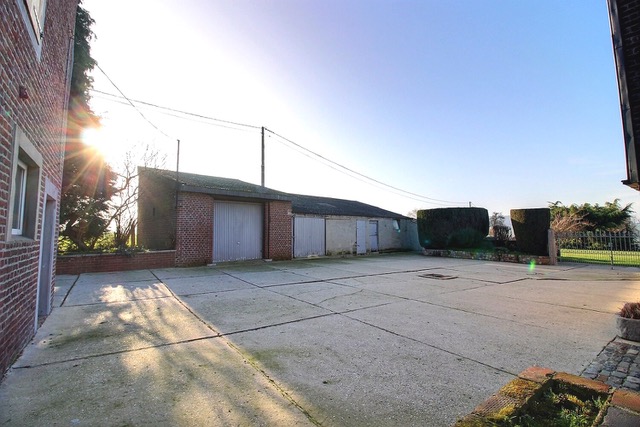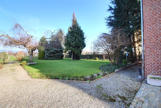 Een privé zijtoegang leidt naar de achtertuin, die toegang geeft tot de stal, het hoofdgebouw alsmede de enkele garage en de bijgebouwen (–> vloeroppervlak van ± 55 m2). Het interieur biedt u mooie grote kamers die u zullen imponeren met hun hoge stucplafonds.