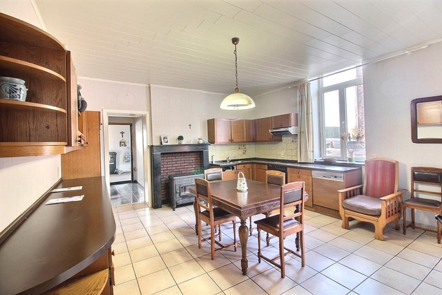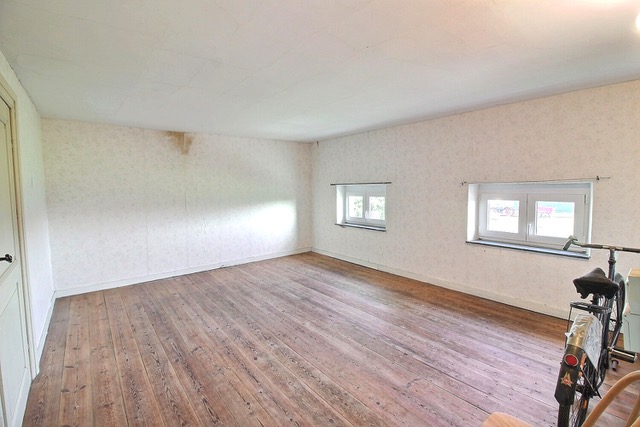 Op de begane grond bevinden zich een mooie inkomhal, een grote lichte woonkamer, een salon, een grote keuken en een badkamer. 8 grote kamers van vergelijkbare grootte en een grote zolder completeren de verdiepingen. Naast het woongedeelte en grenzend aan het hoofdvolume is er een grote stal met hooizolder op 2 tot 3 mogelijke niveaus van ± 54 m2/etage. Imposant volume dat veel potentieel biedt… eventueel zelfs om te bouwen tot meerdere eenheden met vergunningen of voor een zelfstandige die opbergruimte nodig heeft.
