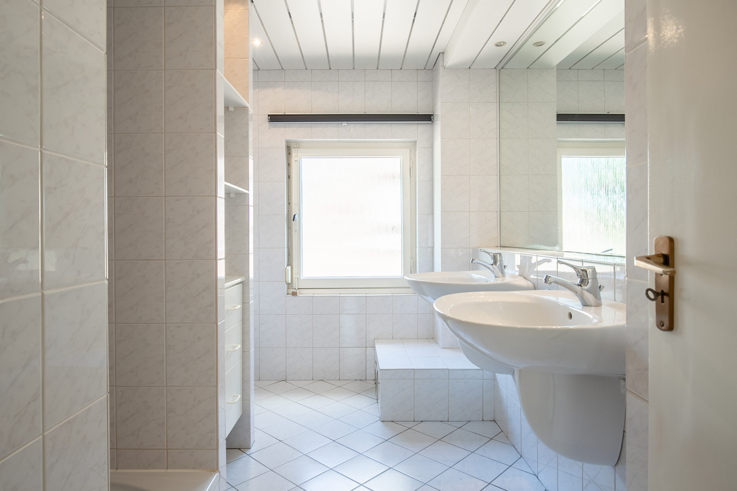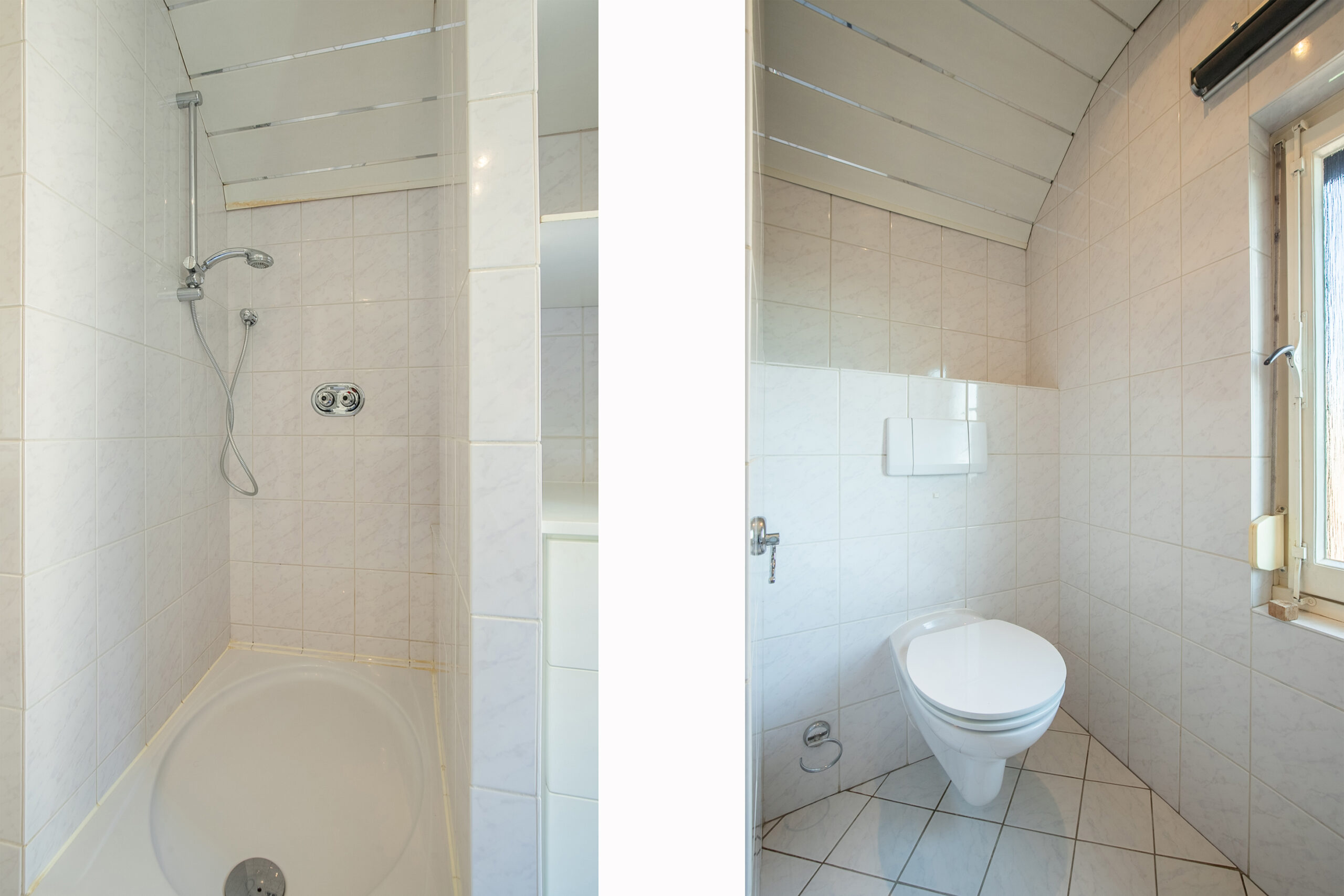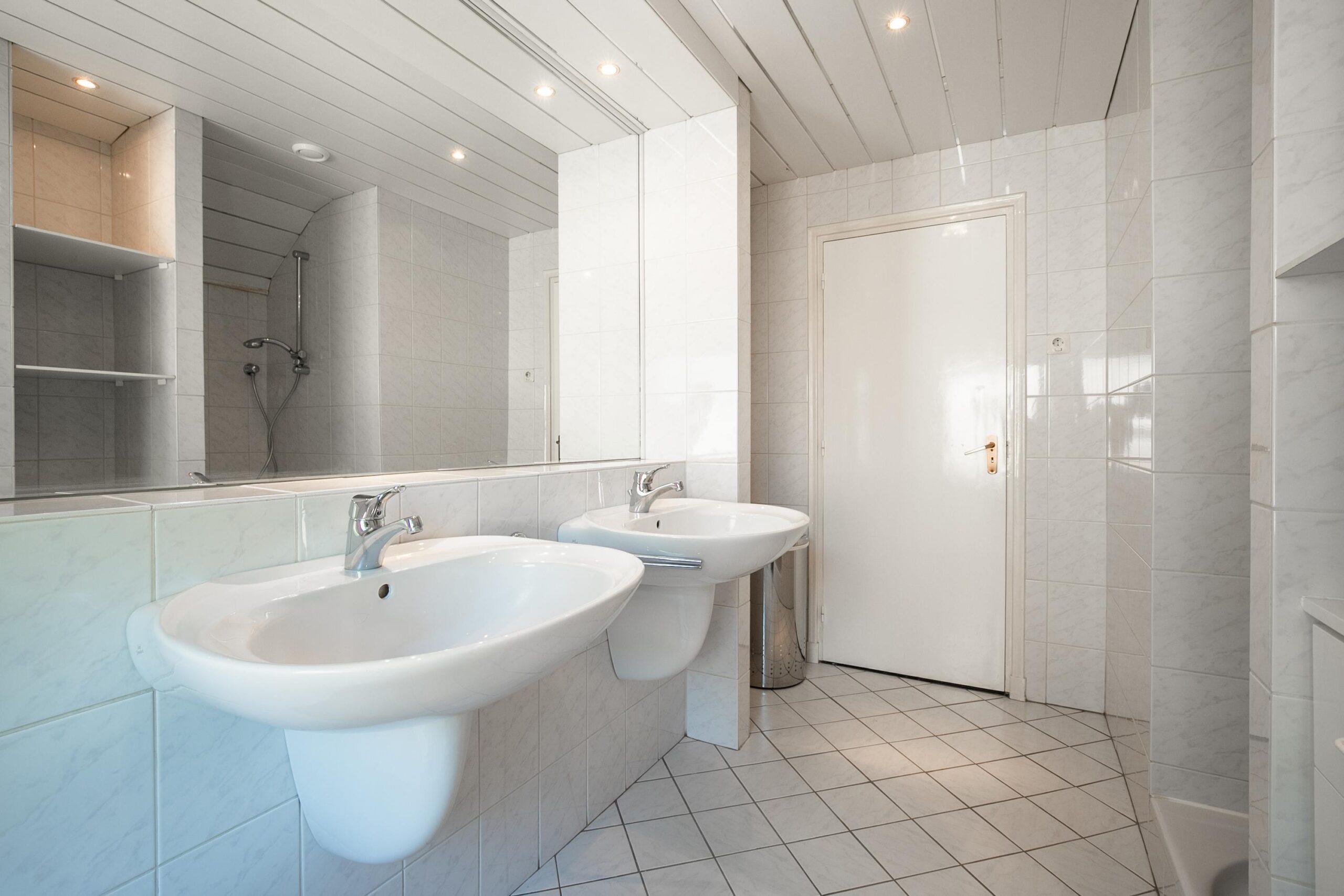 - Badkamervoorzieningen Toilet, douche, dubbele wastafel