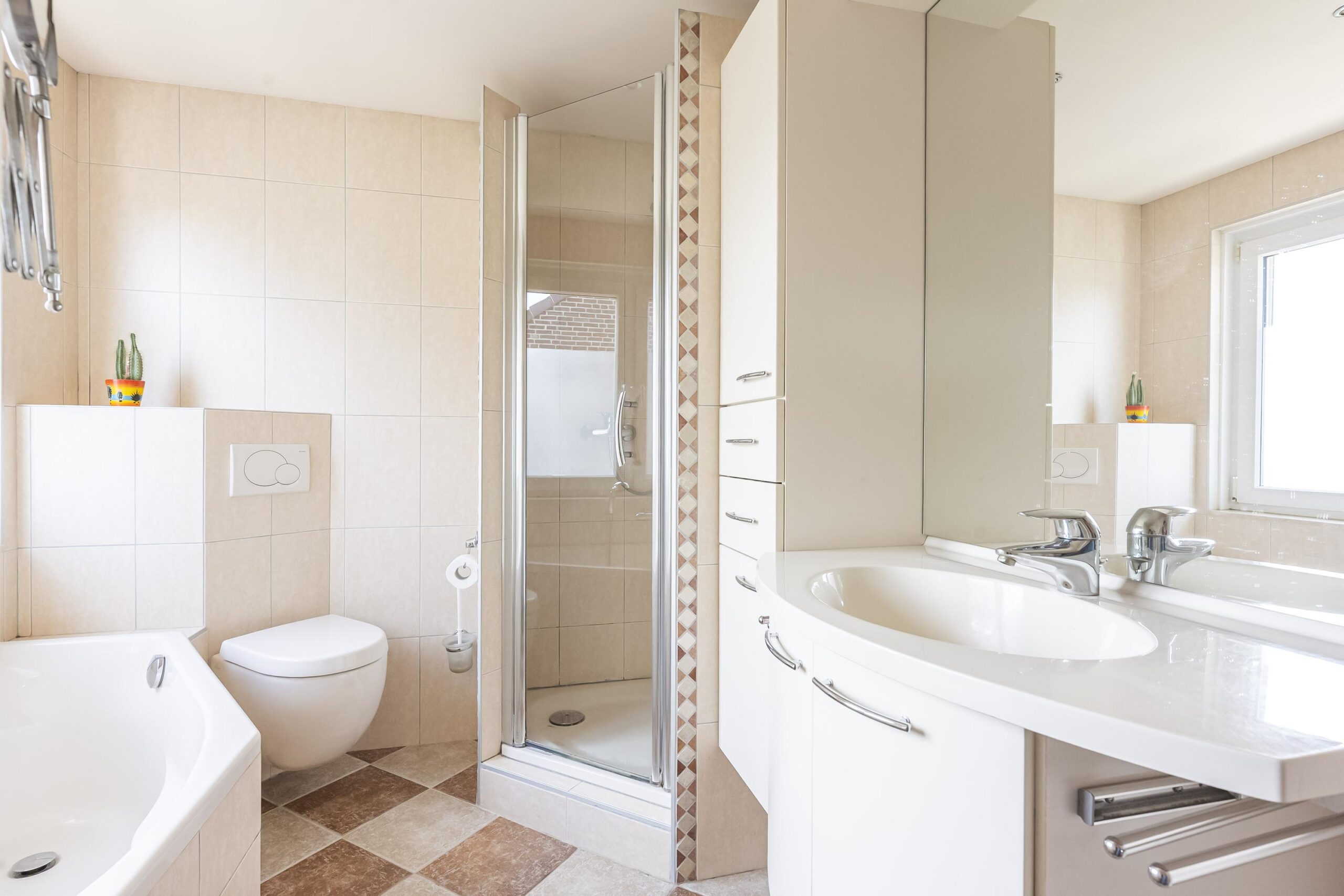 - Badkamervoorzieningen Ligbad, toilet, douche, wastafel, wastafelmeubel