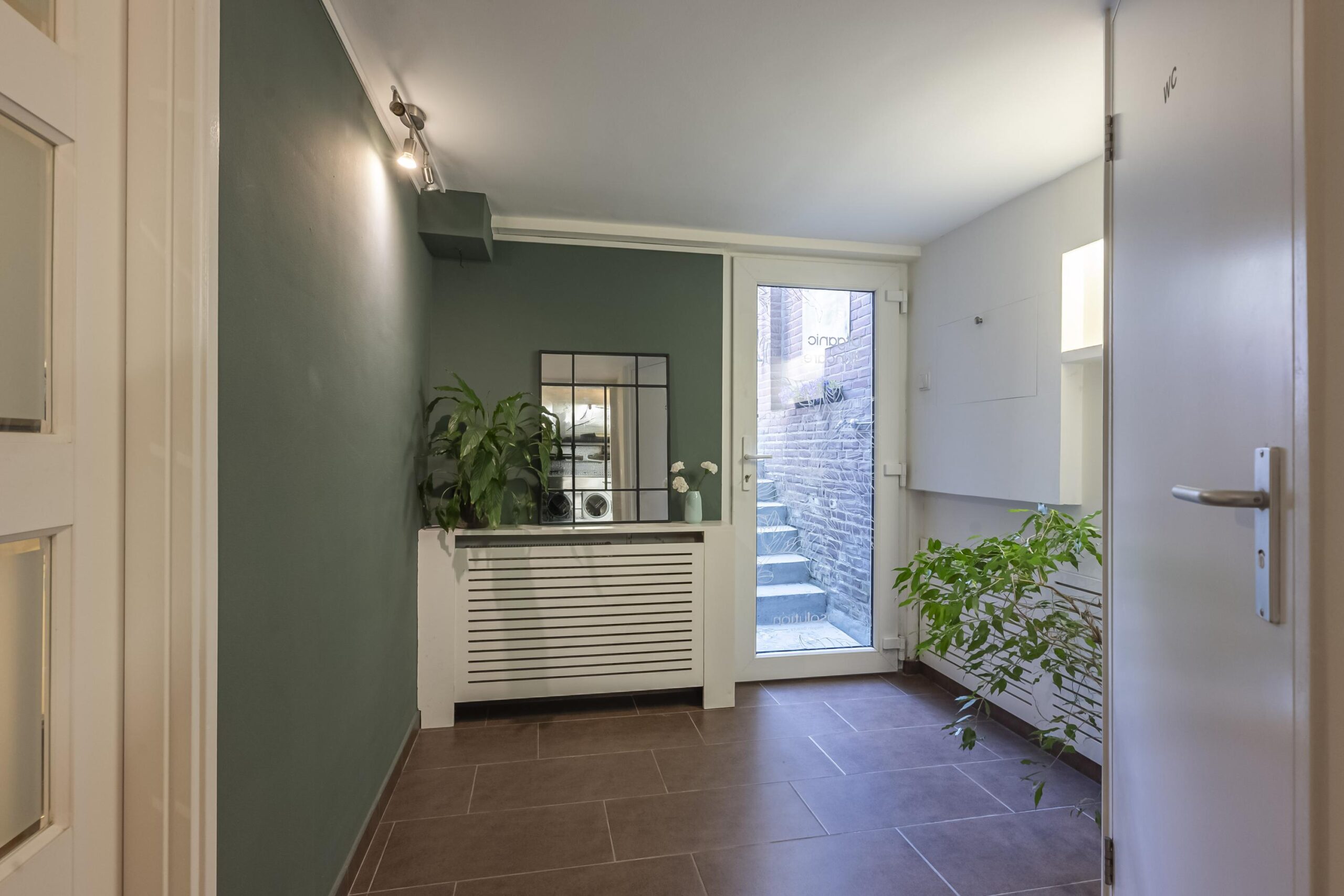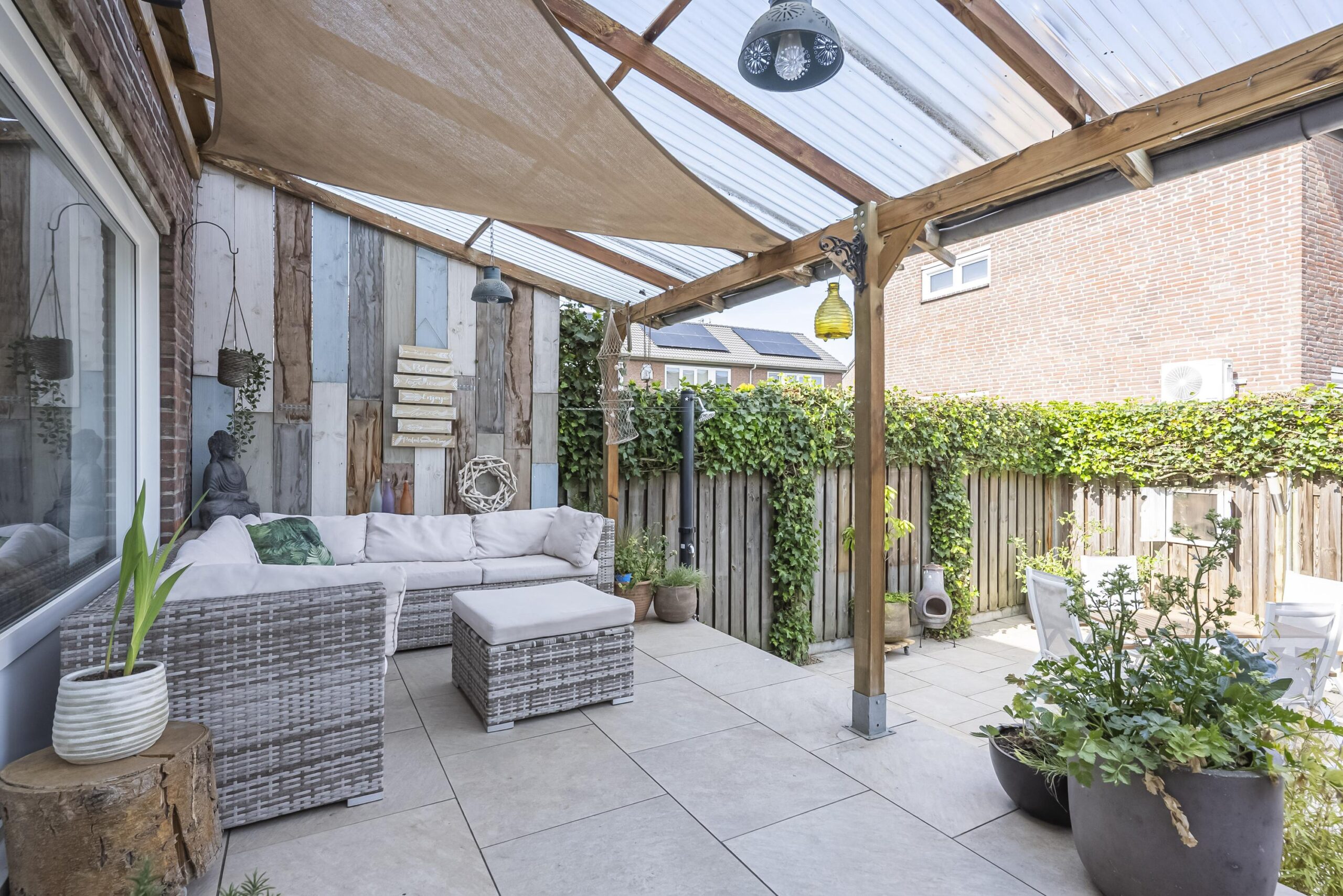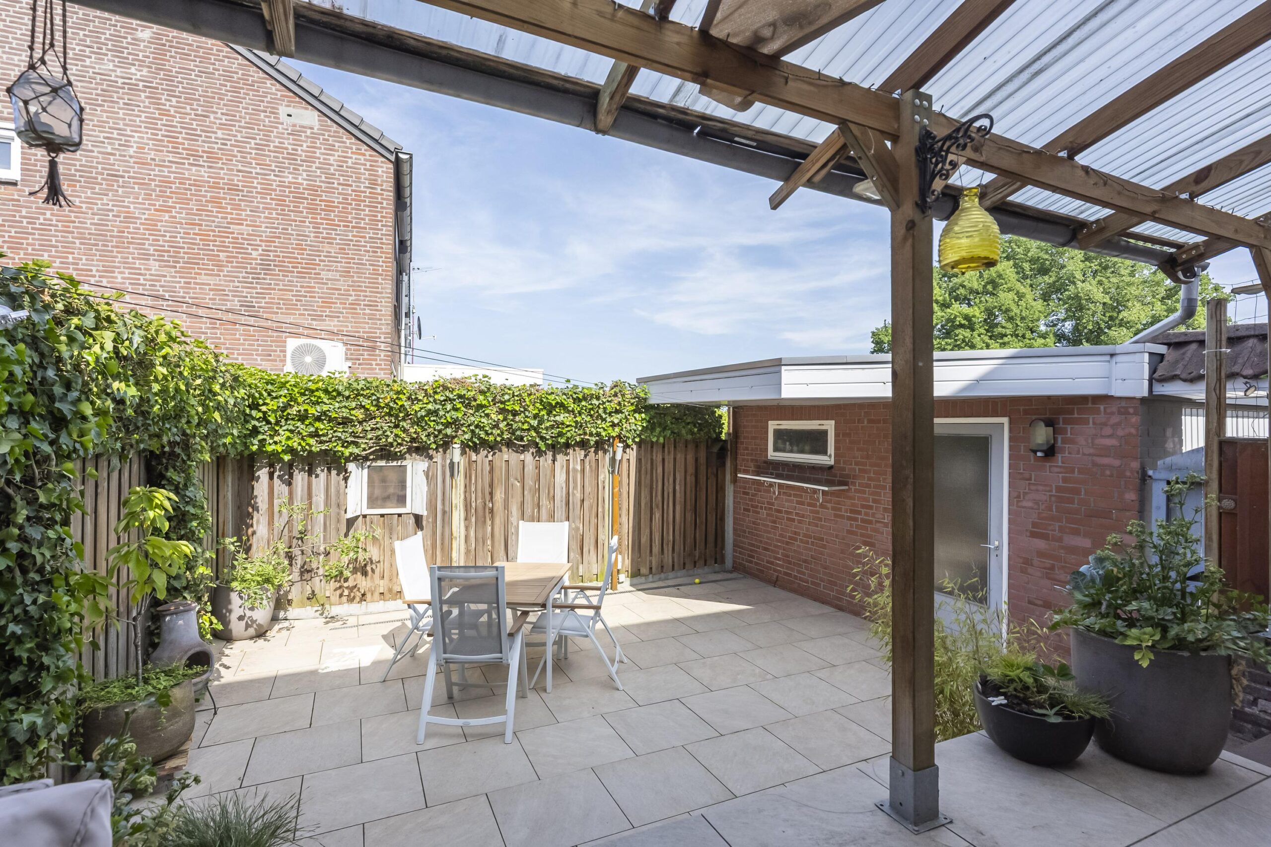 De geheel omsloten betegelde stadstuin is bereikbaar via de oprit, garage en het souterrain, en biedt een prettig niveauverschil, goede zonligging en een terrasoverkapping. De naast het woonhuis gelegen garage is voorzien van een kantelpoort en directe toegang tot de tuin.