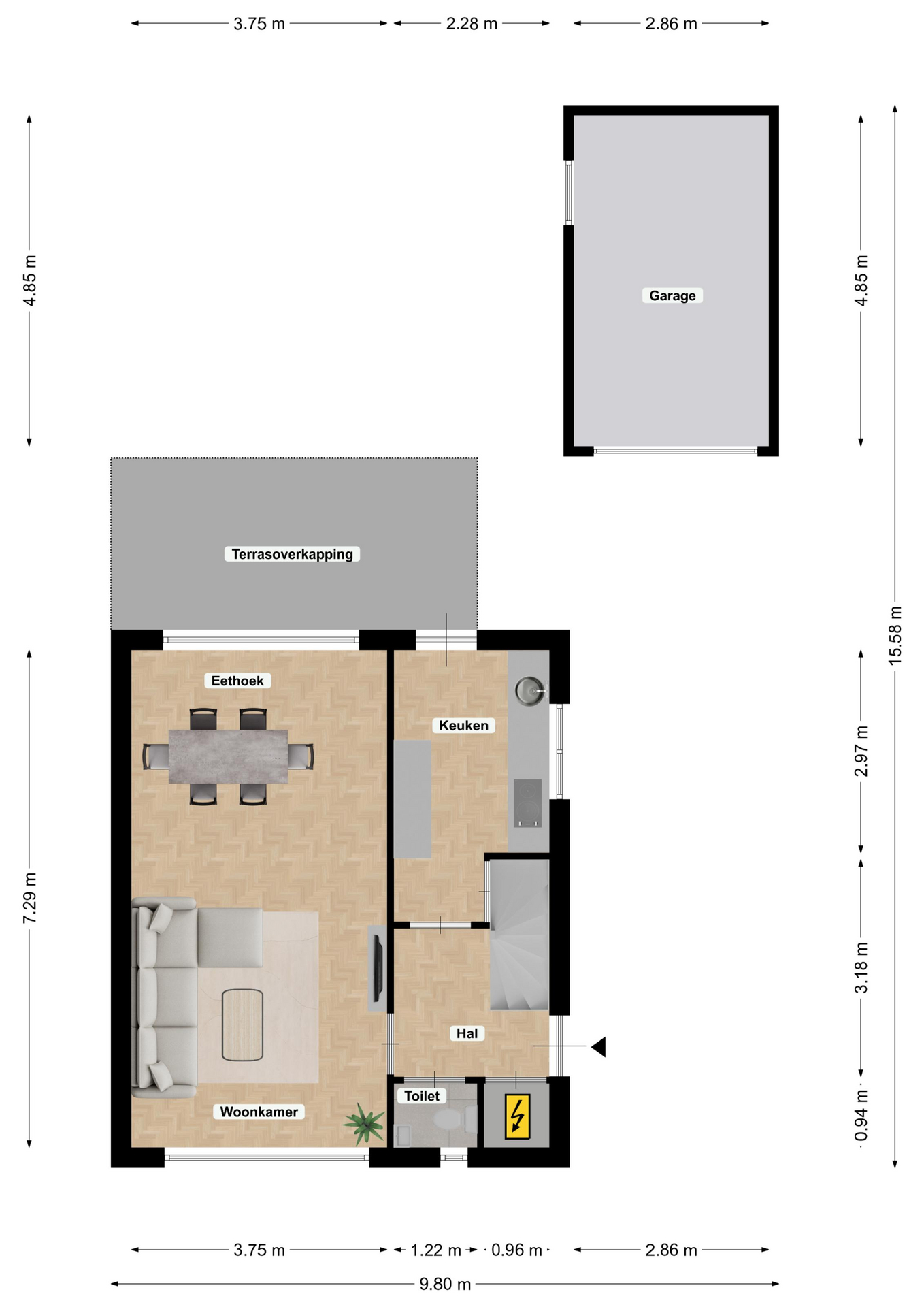 - Oppervlakte gebouwgebonden ca. 18 m2