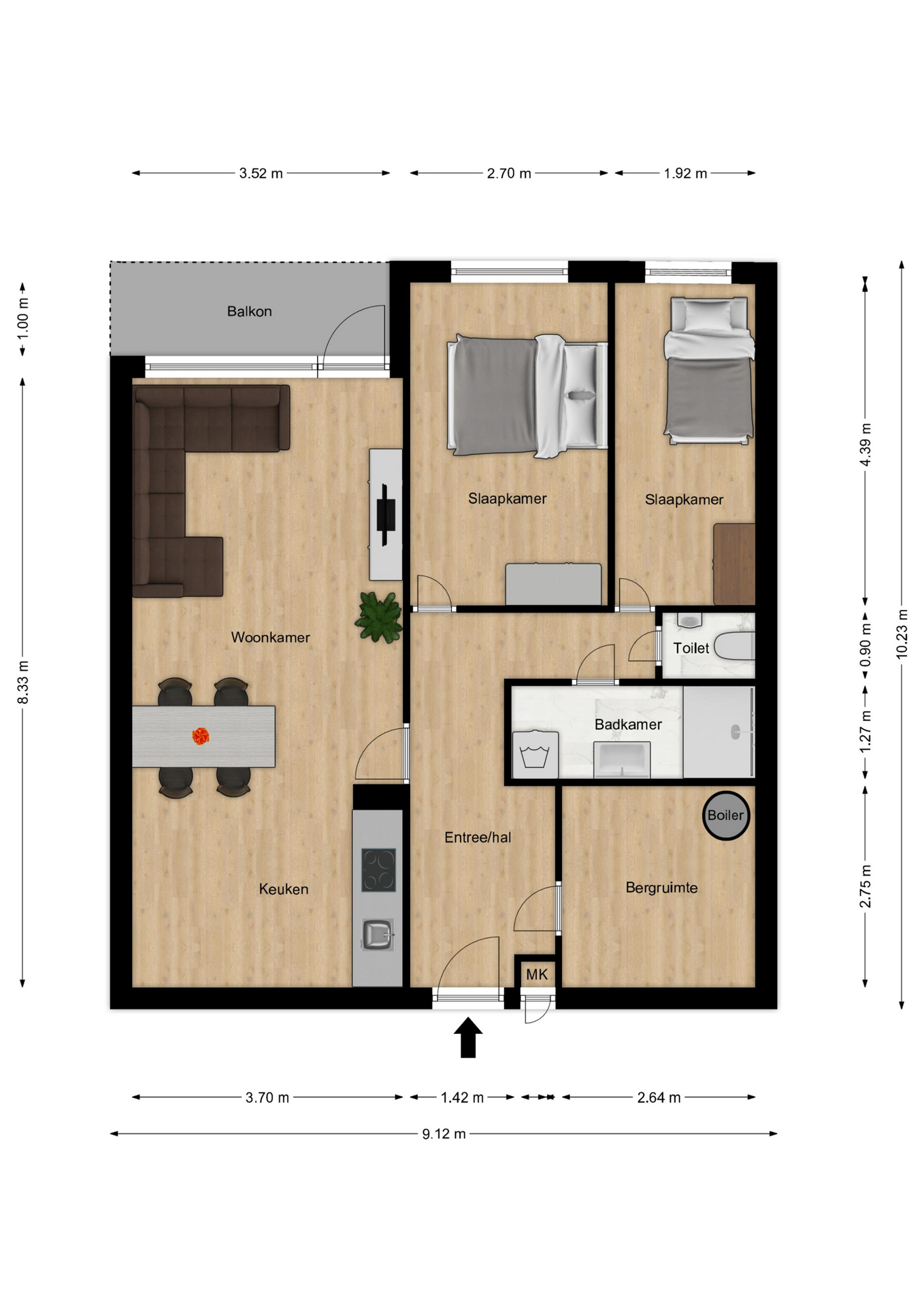 – Modern appartement met twee slaapkamers;