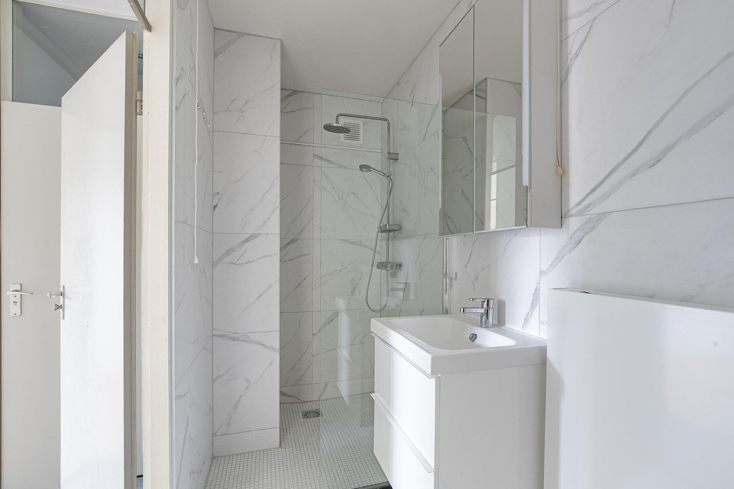 - Badkamervoorzieningen Douche, wastafel, wasmachineaansluiting