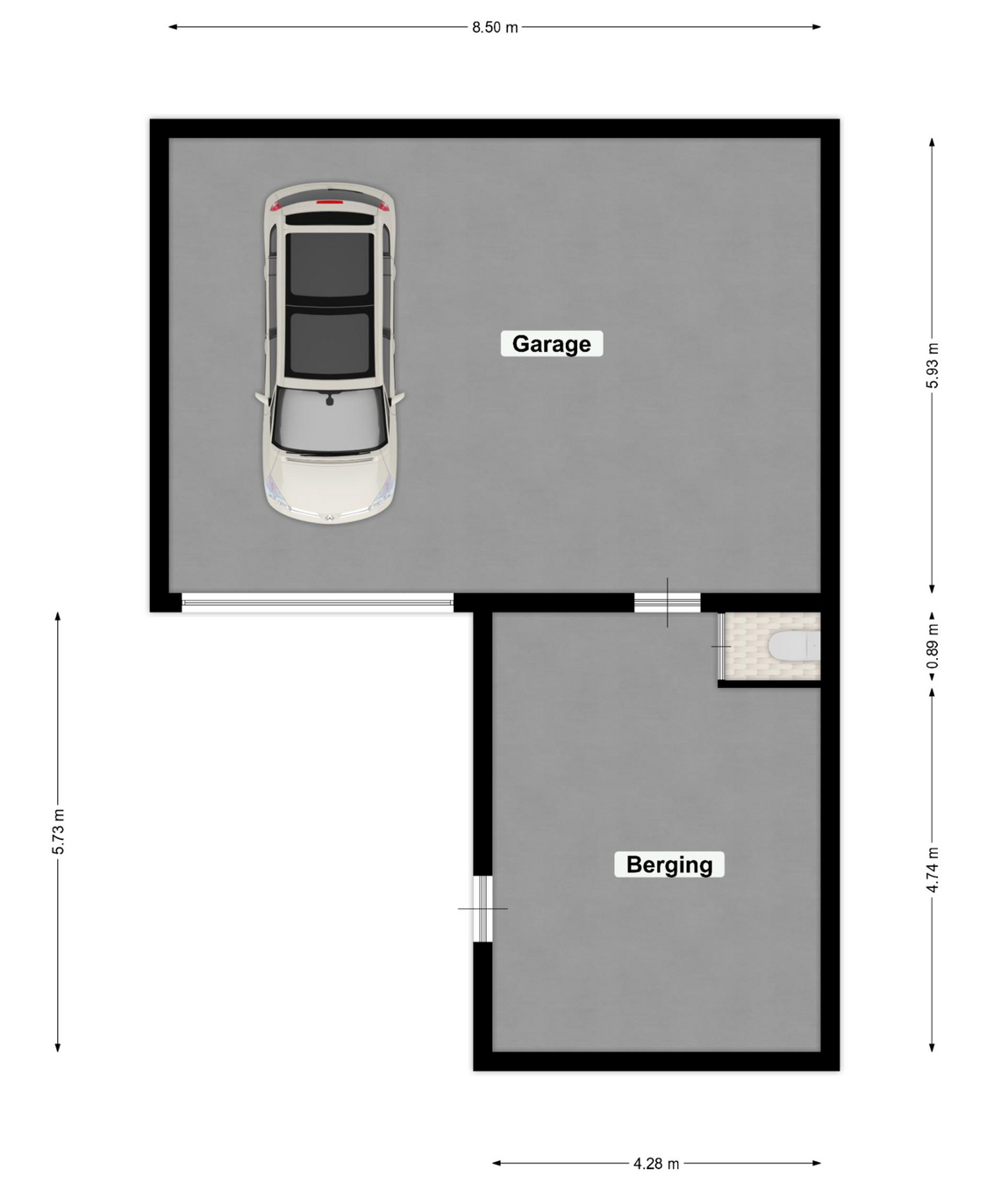 – Garage met smeerput, toiletruimte en sectionaalpoort