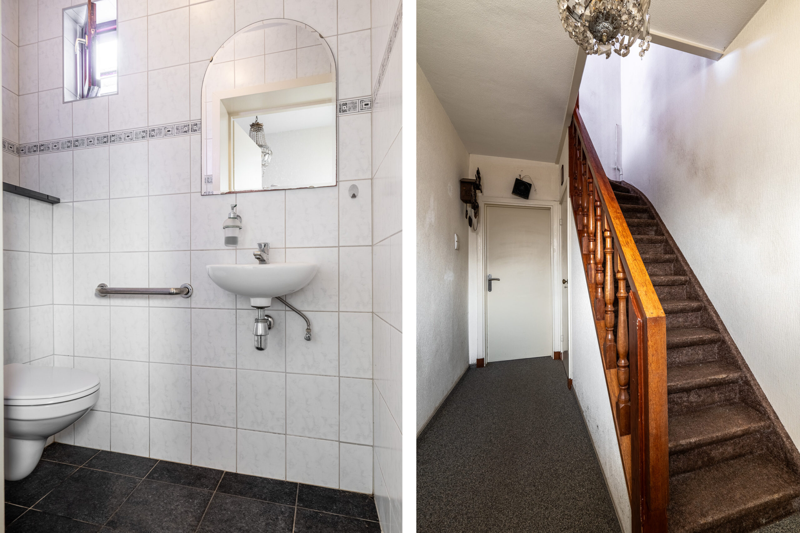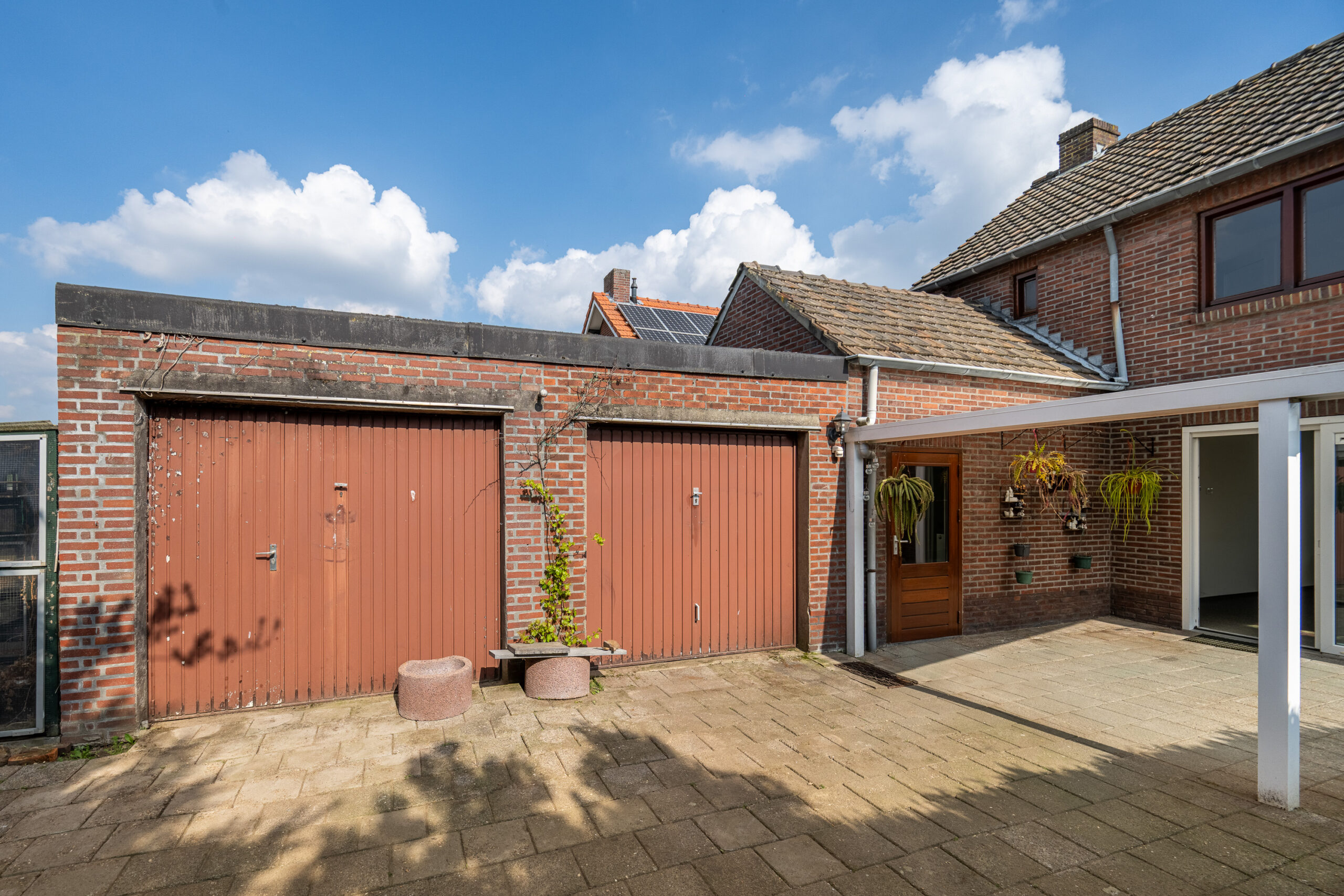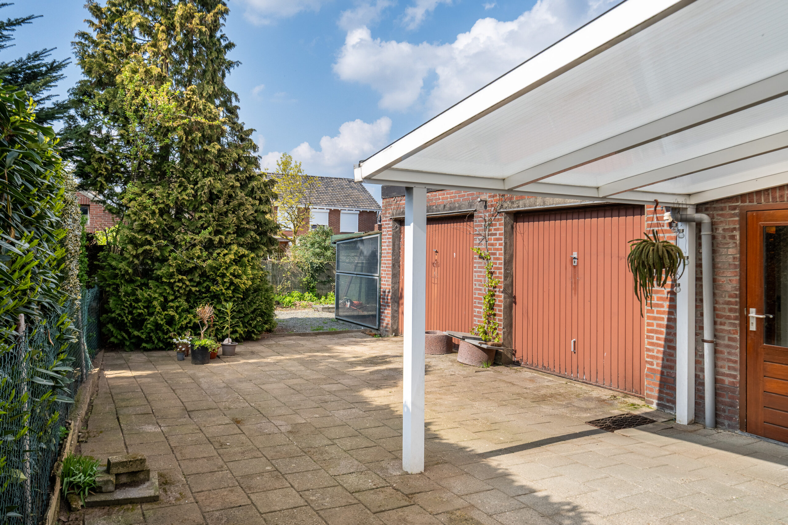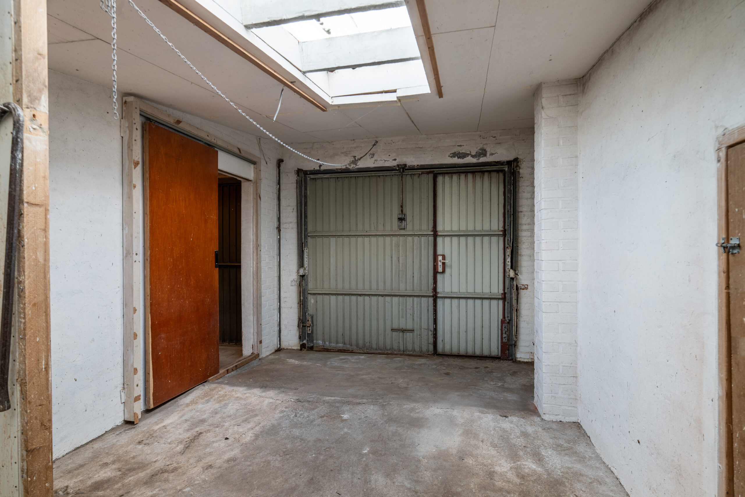 Bij binnenkomst betreedt u de hal met meterkast, een toiletruimte met fonteintje en de trapopgang naar zowel de eerste verdieping als de praktische kelder. Vanuit de hal loopt u door naar de eetkamer, die dankzij twee extra ramen aangenaam licht is en tevens toegang biedt tot een aparte douche. Aansluitend bereikt u de woonkamer, waar een grote raampartij aan de voorzijde zorgt voor een prettige lichtinval en een schuifpui aan de achterzijde direct toegang biedt tot de overkapping en de tuin. De glas-in-loodramen aan de zijkant geven de woning extra sfeer en karakter. Vanuit de eetkamer is tevens de gesloten keuken bereikbaar, welke is uitgerust met een spoelbak, gasfornuis, koelkast en oven. Vanuit de keuken heeft u toegang tot de tuin en de twee achtergelegen garages. Beide garages bieden plaats aan één auto. In de eerste garage bevindt zich de cv-ketel en is er de mogelijkheid om een praktische bijkeuken te realiseren.