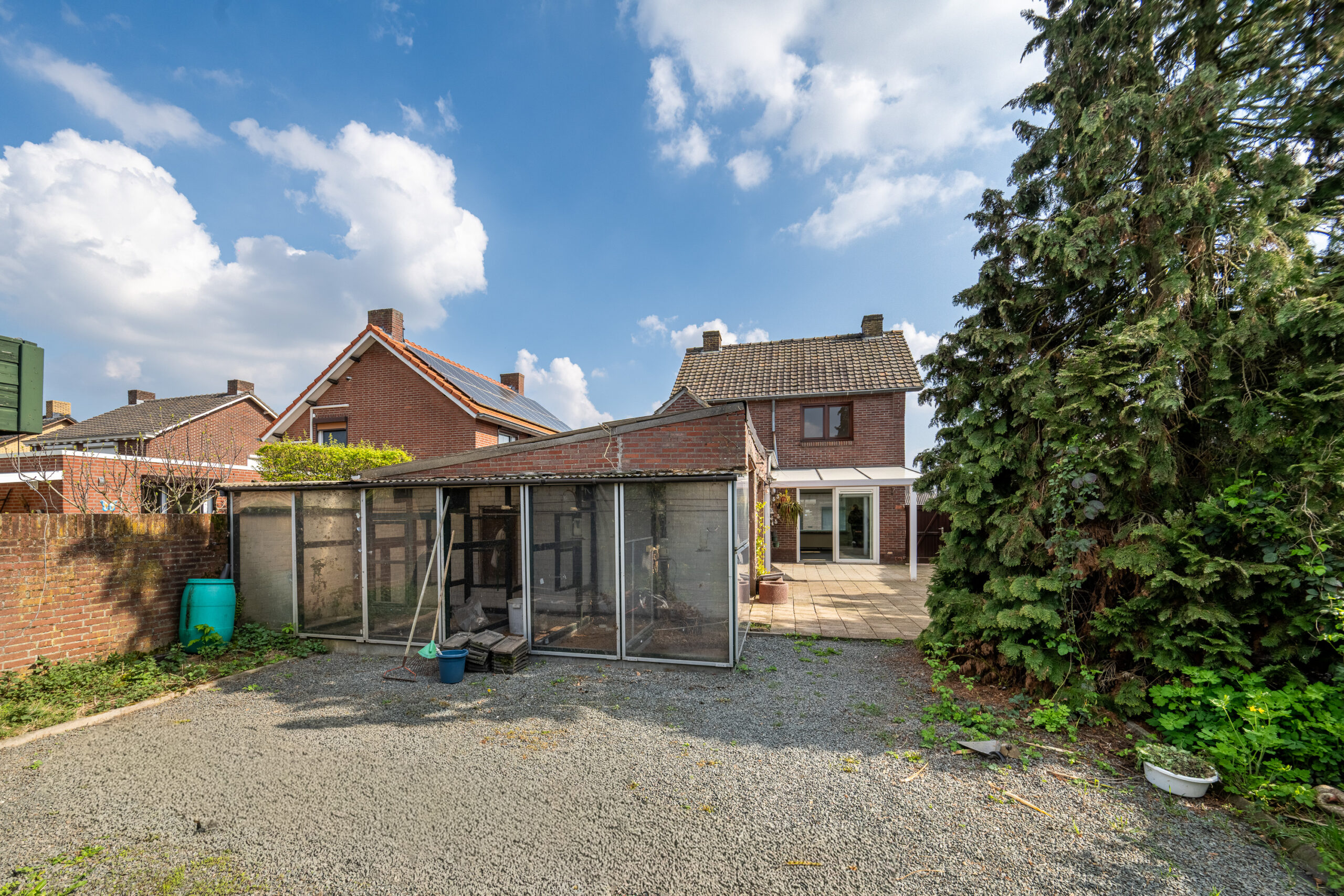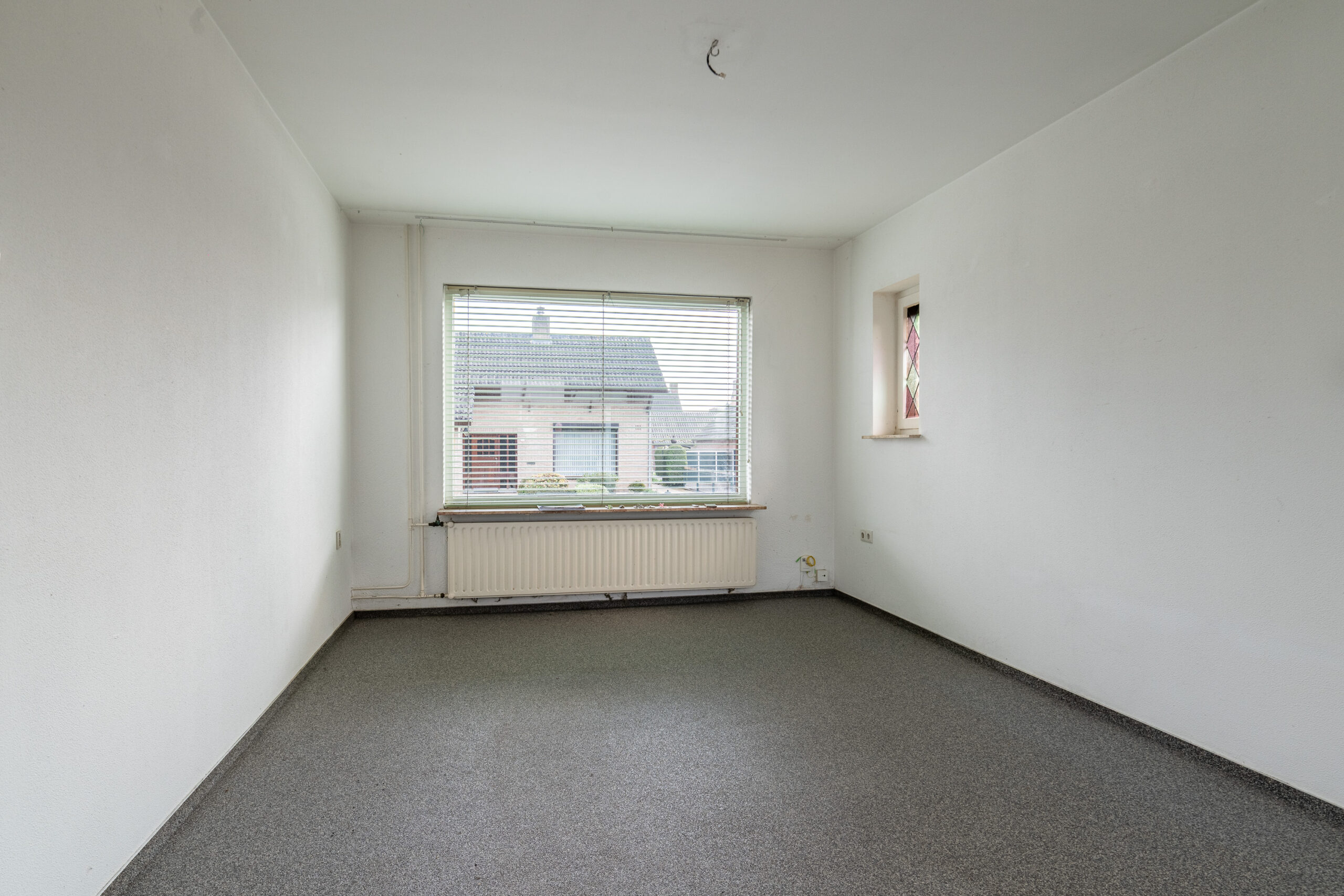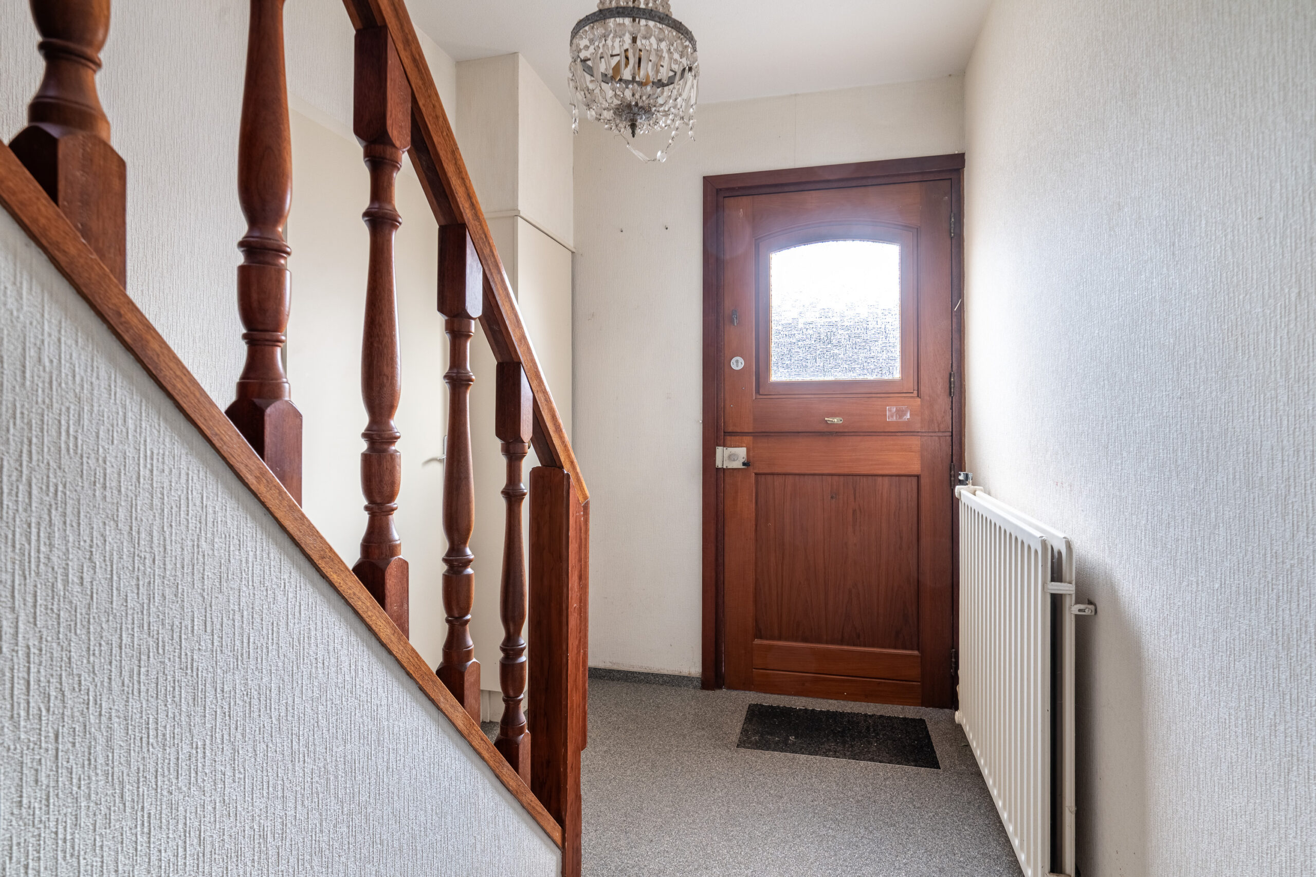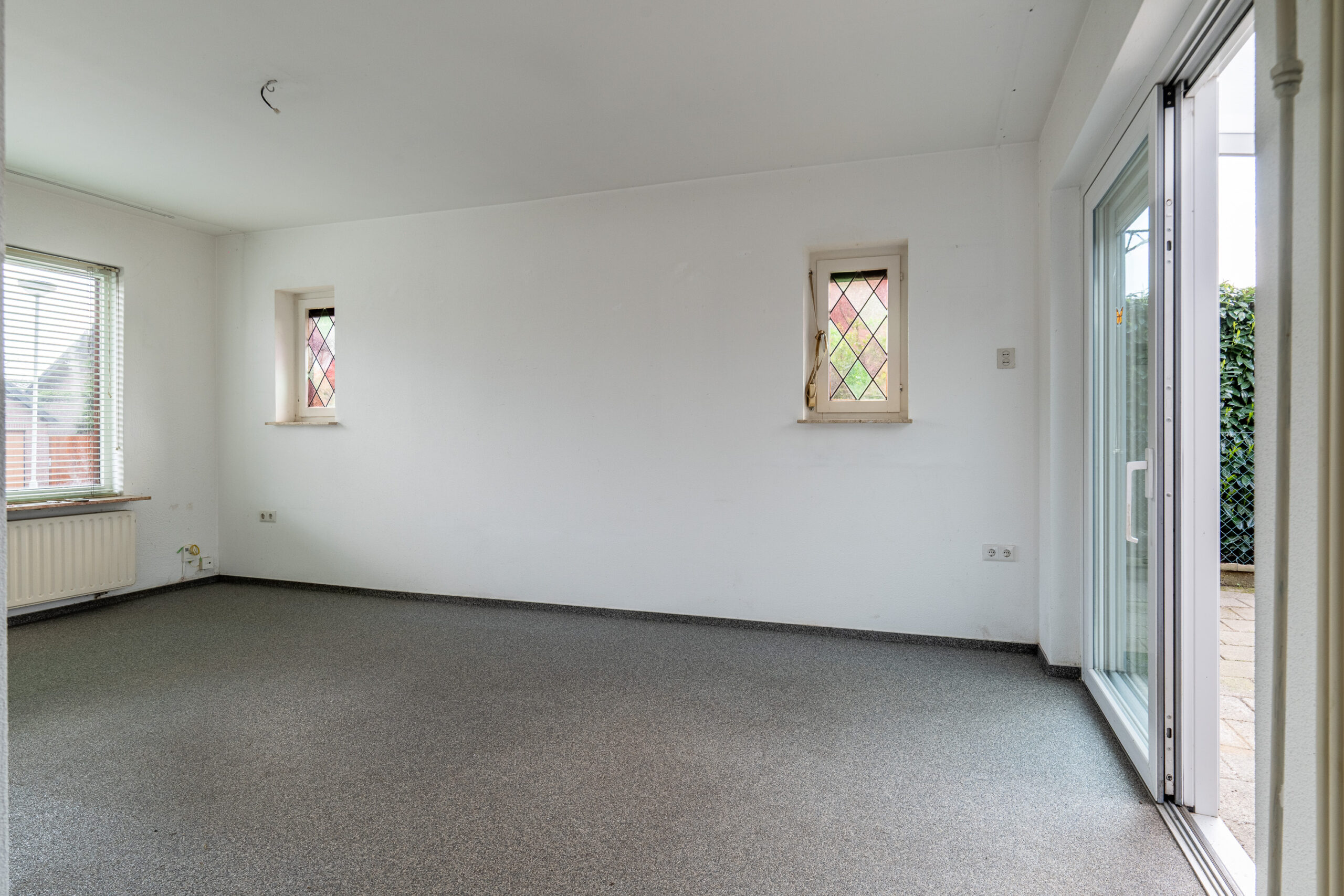 Bij binnenkomst betreedt u de hal met meterkast, een toiletruimte met fonteintje en de trapopgang naar zowel de eerste verdieping als de praktische kelder. Vanuit de hal loopt u door naar de eetkamer, die dankzij twee extra ramen aangenaam licht is en tevens toegang biedt tot een aparte douche. Aansluitend bereikt u de woonkamer, waar een grote raampartij aan de voorzijde zorgt voor een prettige lichtinval en een schuifpui aan de achterzijde direct toegang biedt tot de overkapping en de tuin. De glas-in-loodramen aan de zijkant geven de woning extra sfeer en karakter. Vanuit de eetkamer is tevens de gesloten keuken bereikbaar, welke is uitgerust met een spoelbak, gasfornuis, koelkast en oven. Vanuit de keuken heeft u toegang tot de tuin en de twee achtergelegen garages. Beide garages bieden plaats aan één auto. In de eerste garage bevindt zich de cv-ketel en is er de mogelijkheid om een praktische bijkeuken te realiseren.