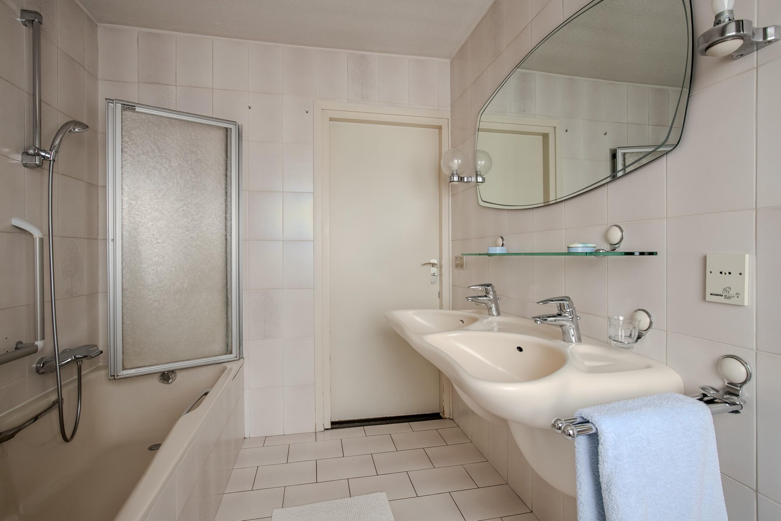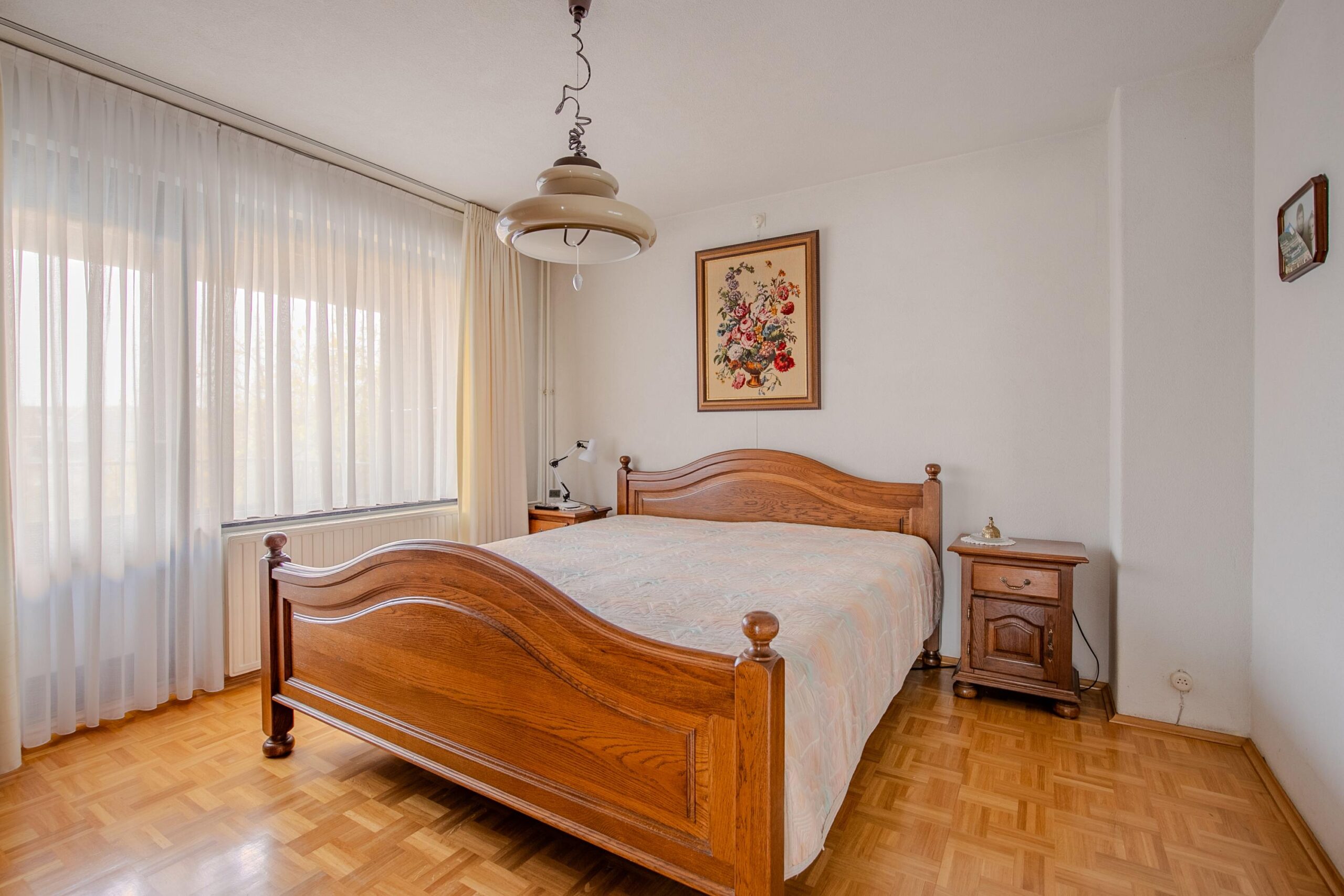 Overloop die toegang biedt tot drie slaapkamers en de badkamer. De slaapkamers zijn ruim bemeten en respectievelijk circa 16 m2, 14 m2 en 10 m2 en voorzien van parketvloeren. De kleinste en de grootste slaapkamer zijn voorzien van praktische muurkasten. De middelgrote kamer is voorzien van een airco-installatie en heeft toegang tot een eigen balkon (circa 14 m2). De betegelde badkamer (circa 6 m2) is voorzien van een ligbad, dubbele wastafel, bidet en zwevend closet.