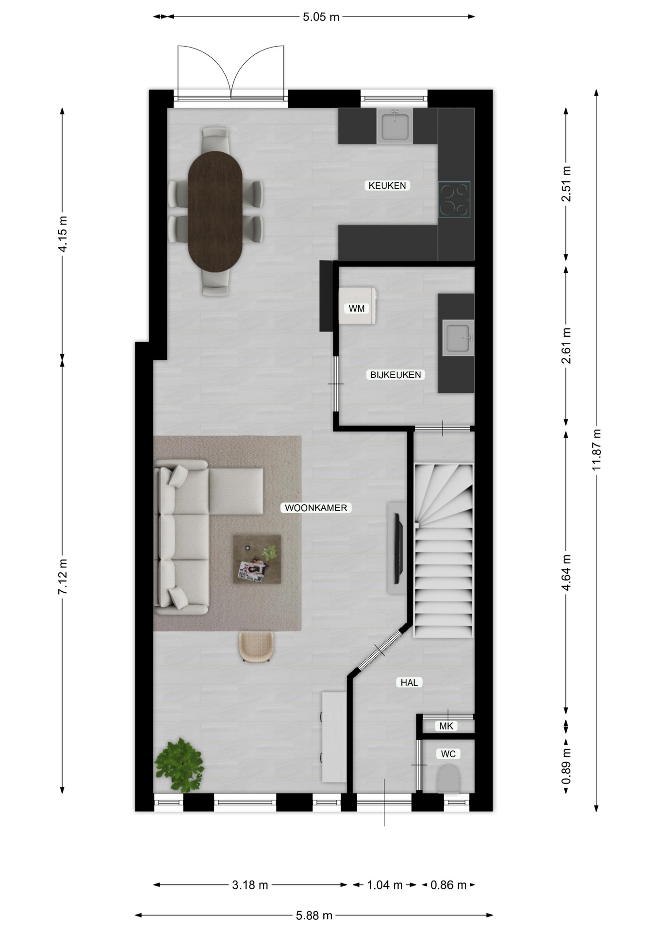- Oppervlakte hoofdtuin ca. 75 m2