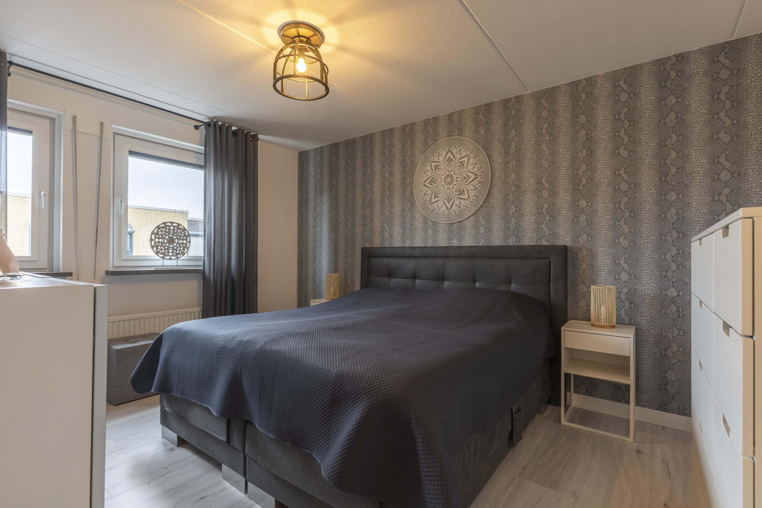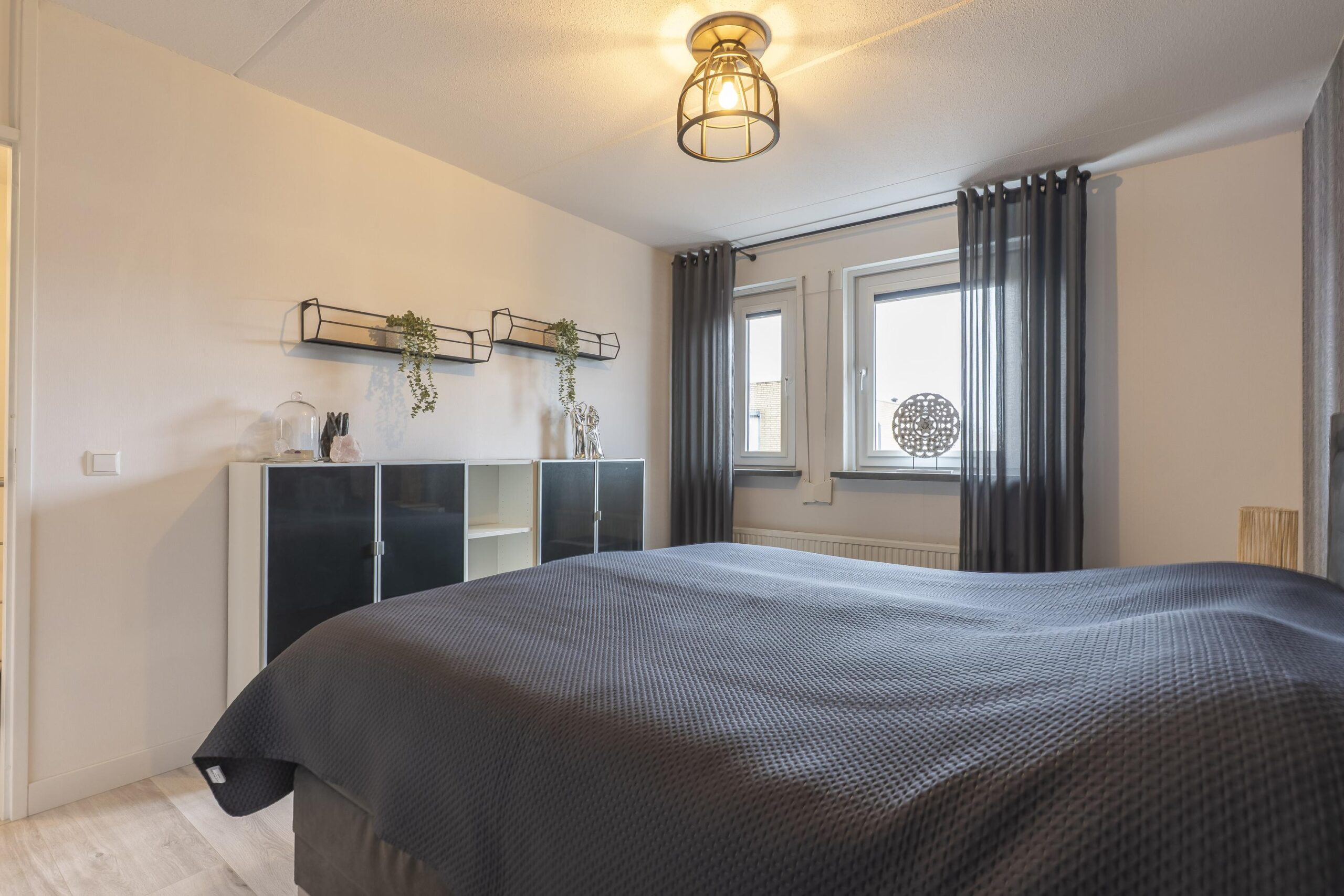 Hier bevinden zich drie netjes afgewerkte slaapkamers, allen voorzien van laminaatvloeren. De slaapkamers zijn respectievelijk: